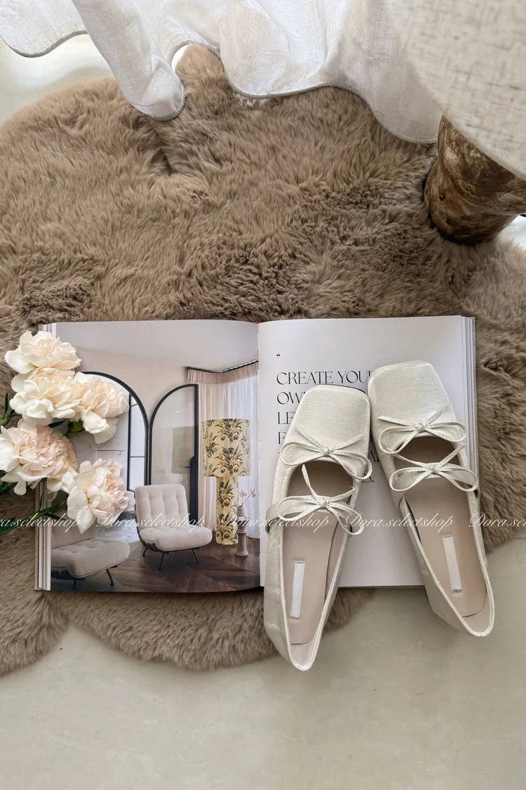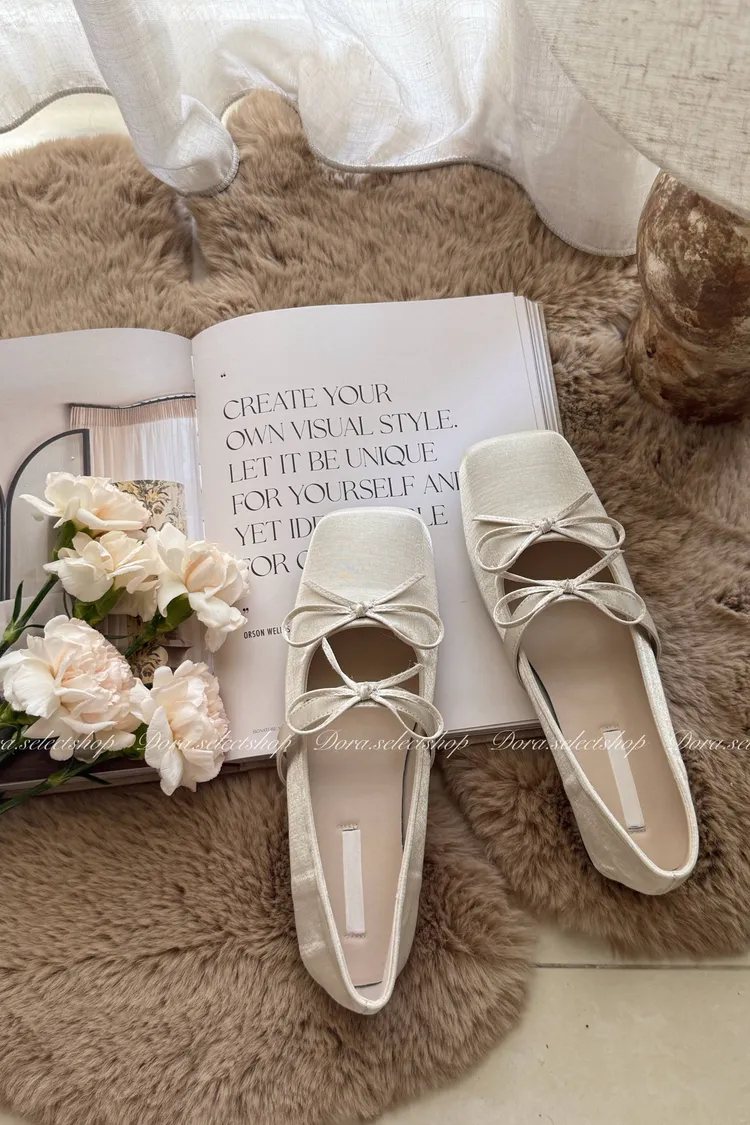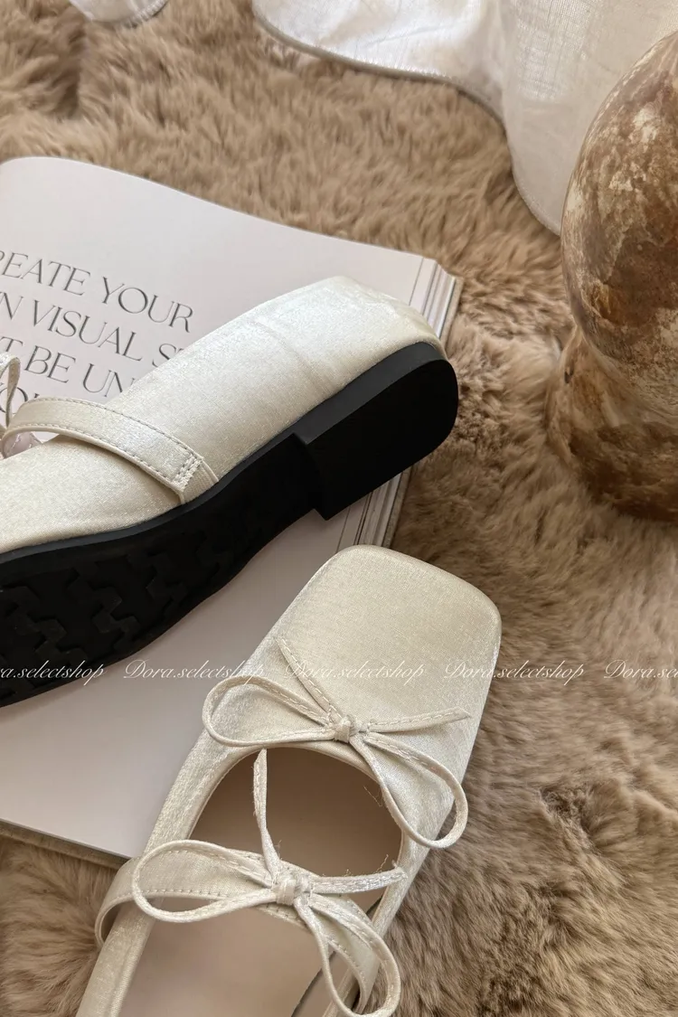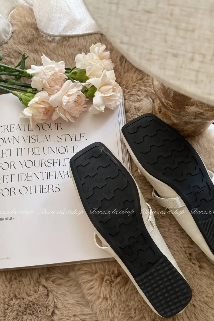 腳尖亮點細緻緞面方頭芭蕾舞鞋---米
