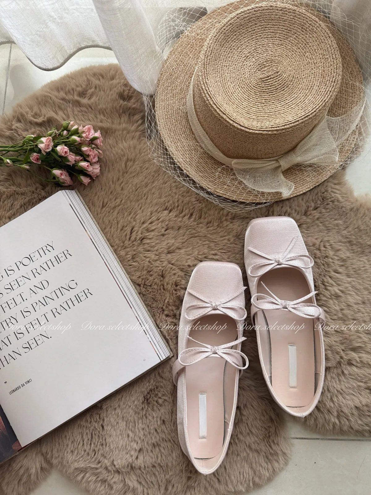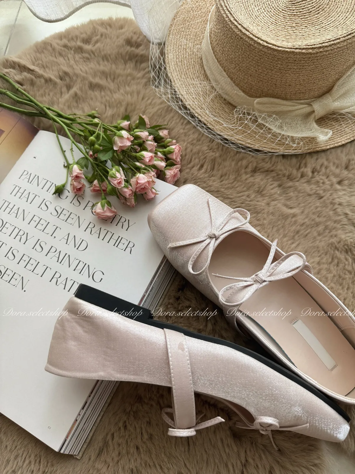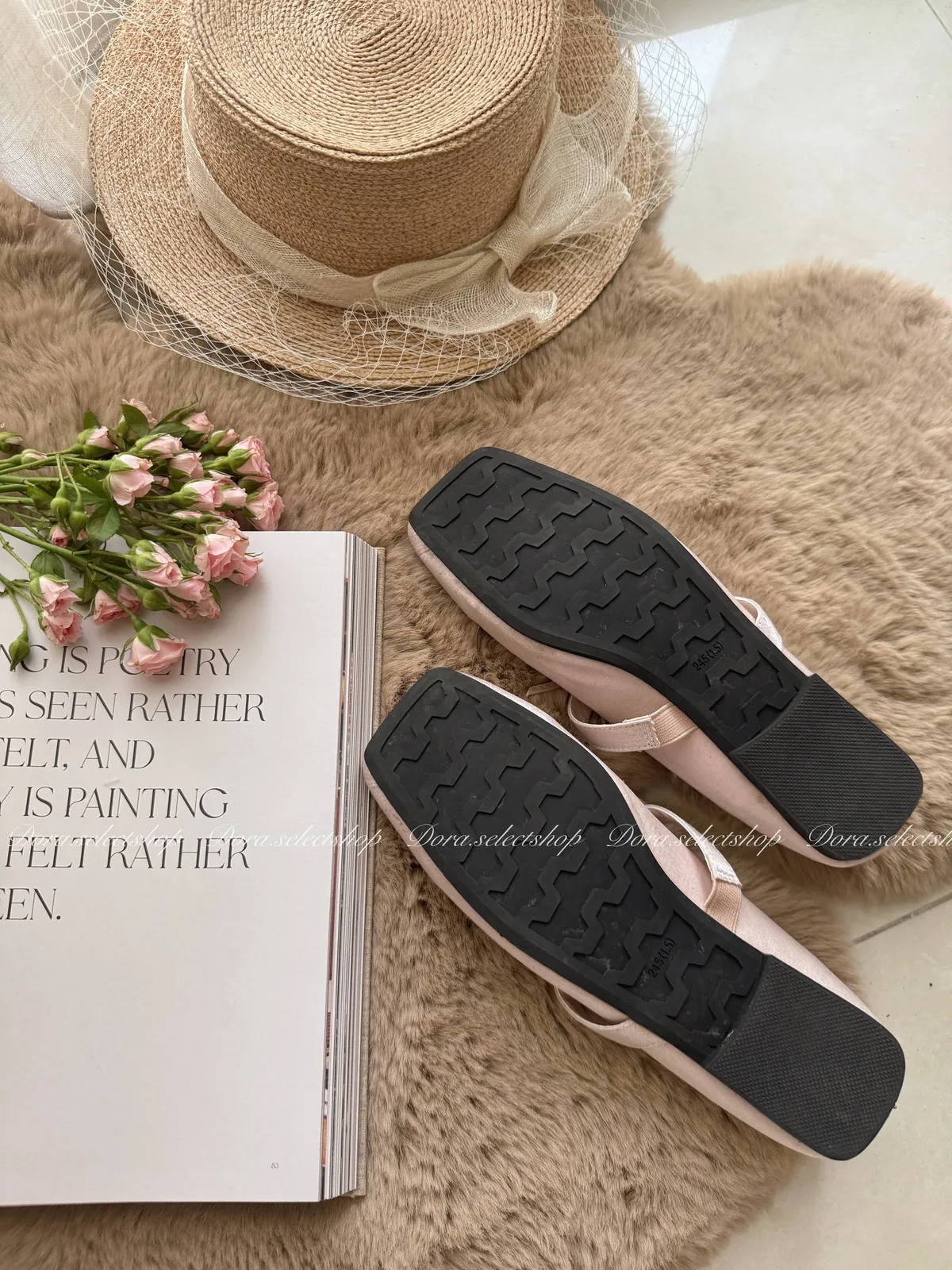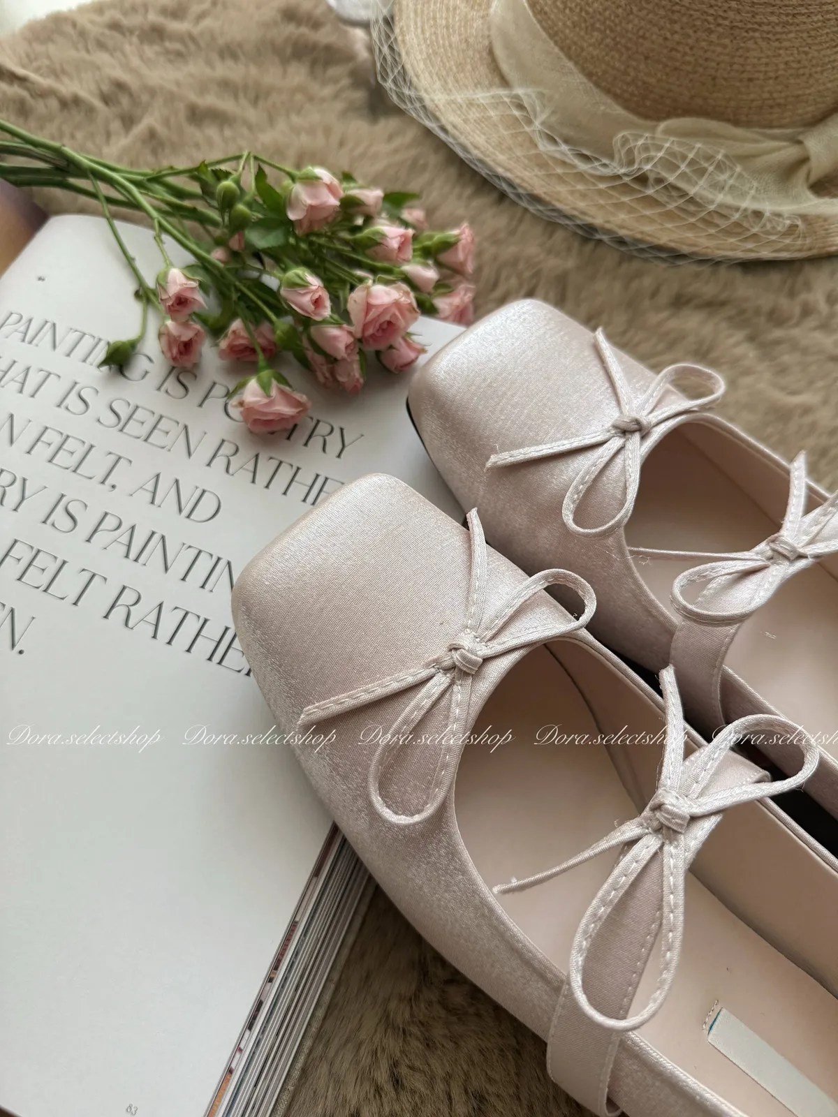 腳尖亮點細緻緞面方頭芭蕾舞鞋---淡粉