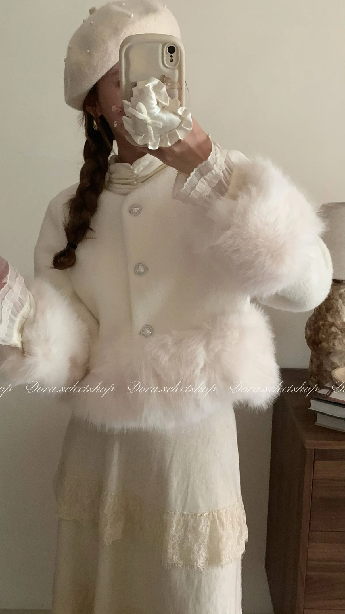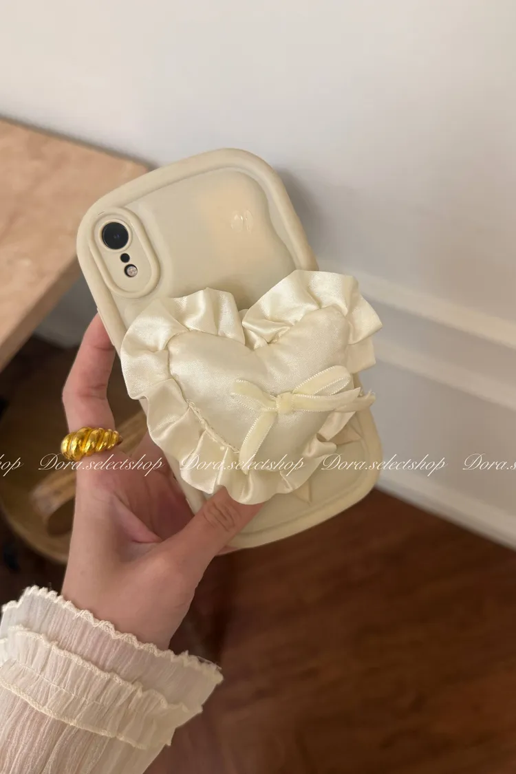緞面愛心抱枕澎澎手機支架---米