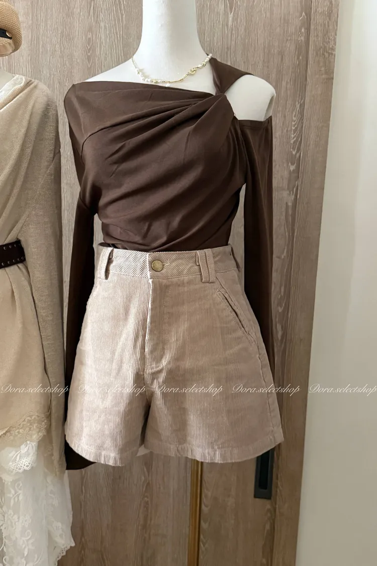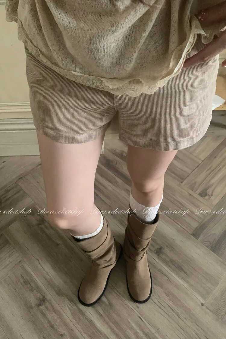 秋冬燈芯絨挺版短褲---米