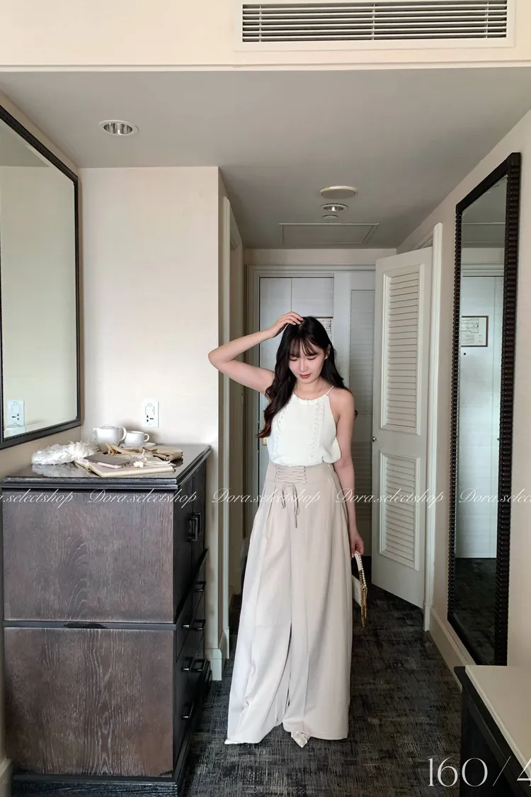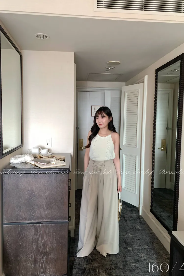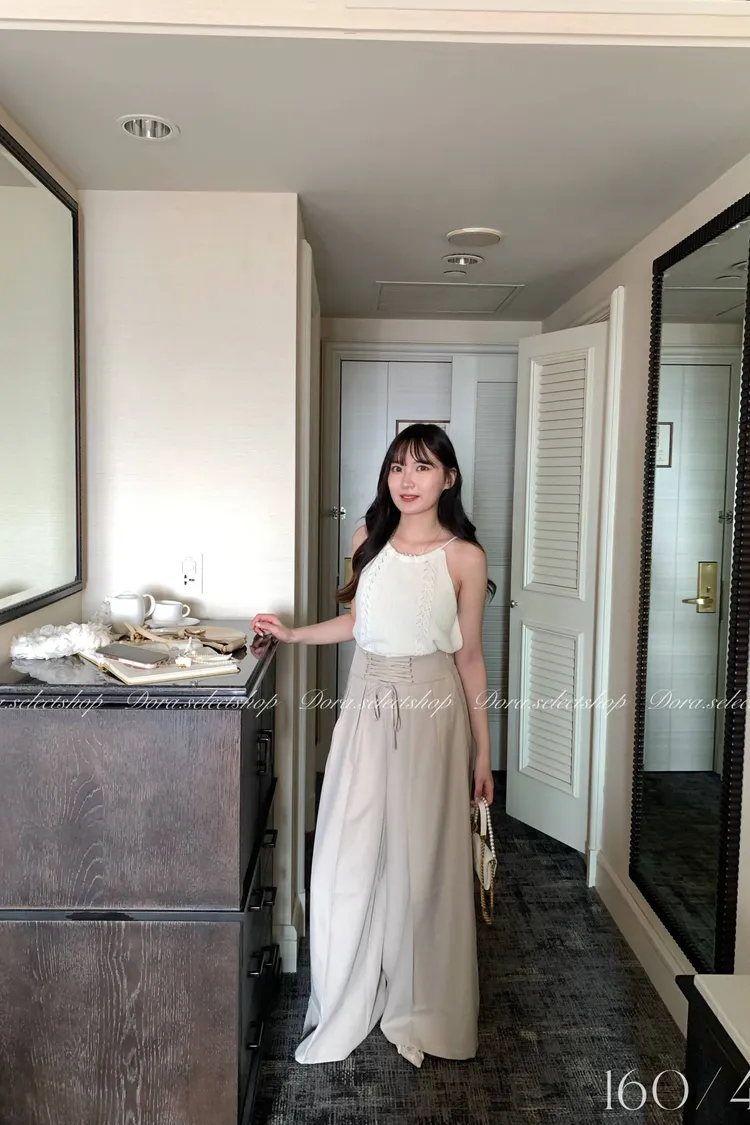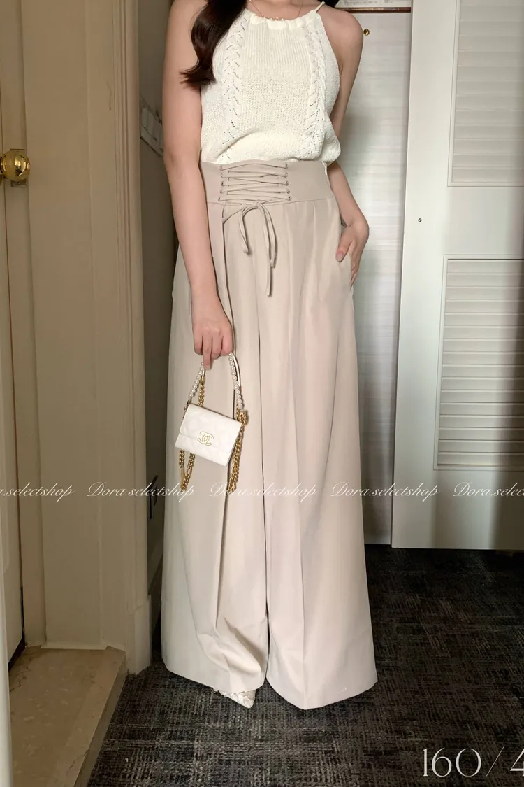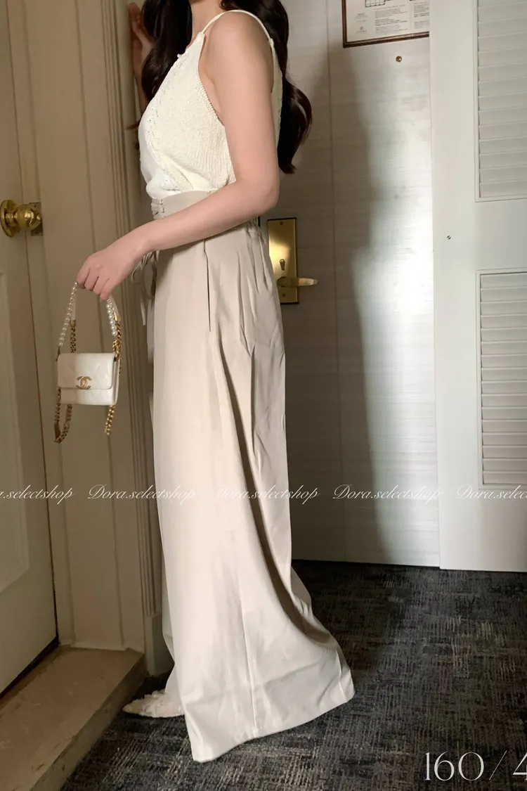 芭蕾綁帶設計褲頭長腿西裝褲---圖片色