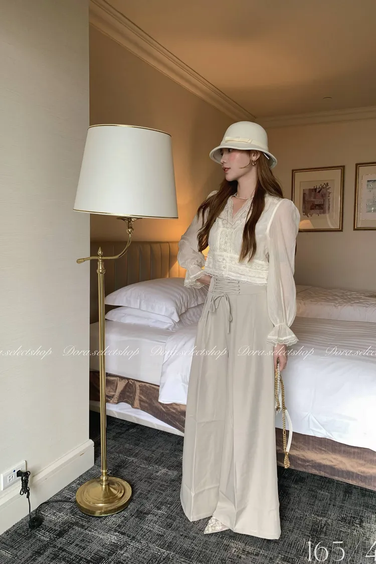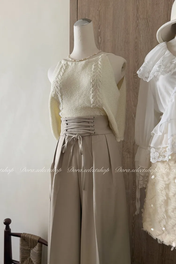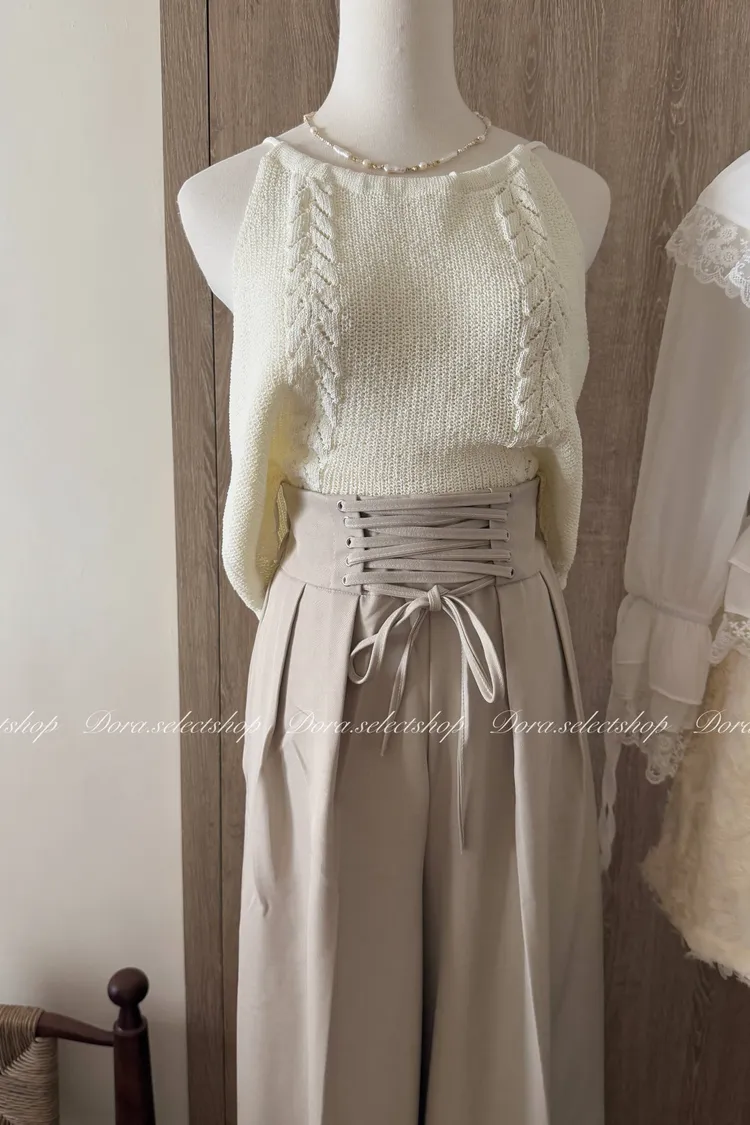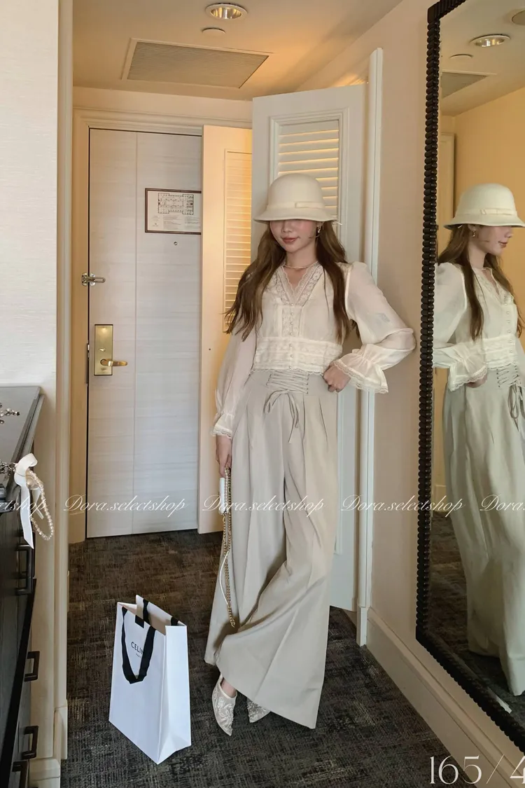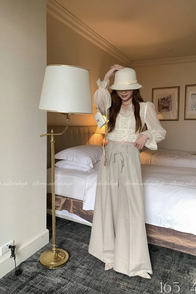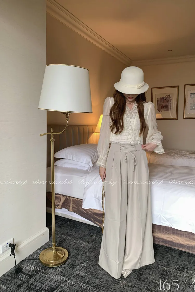 芭蕾綁帶設計褲頭長腿西裝褲---圖片色