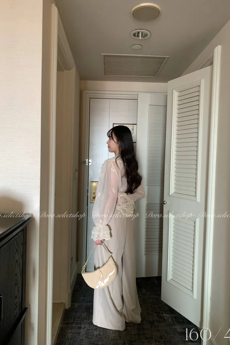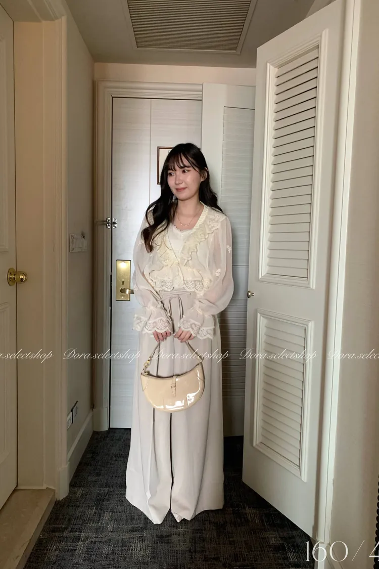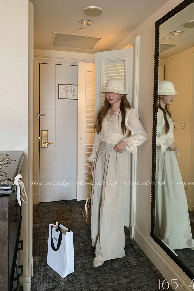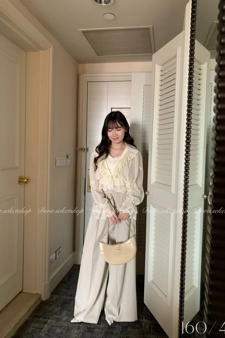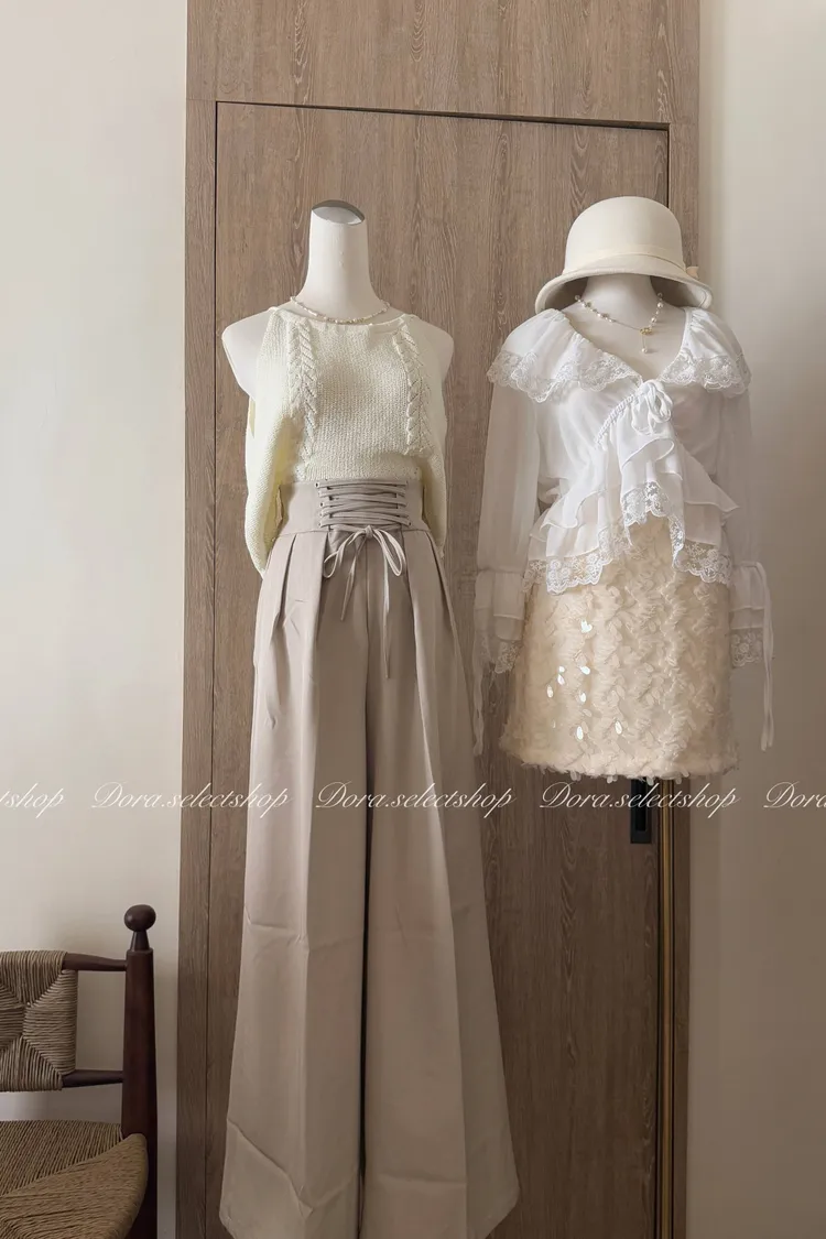 芭蕾綁帶設計褲頭長腿西裝褲---圖片色