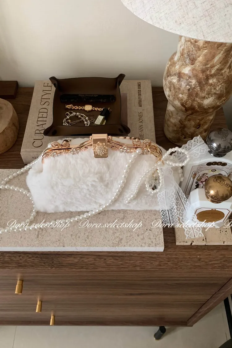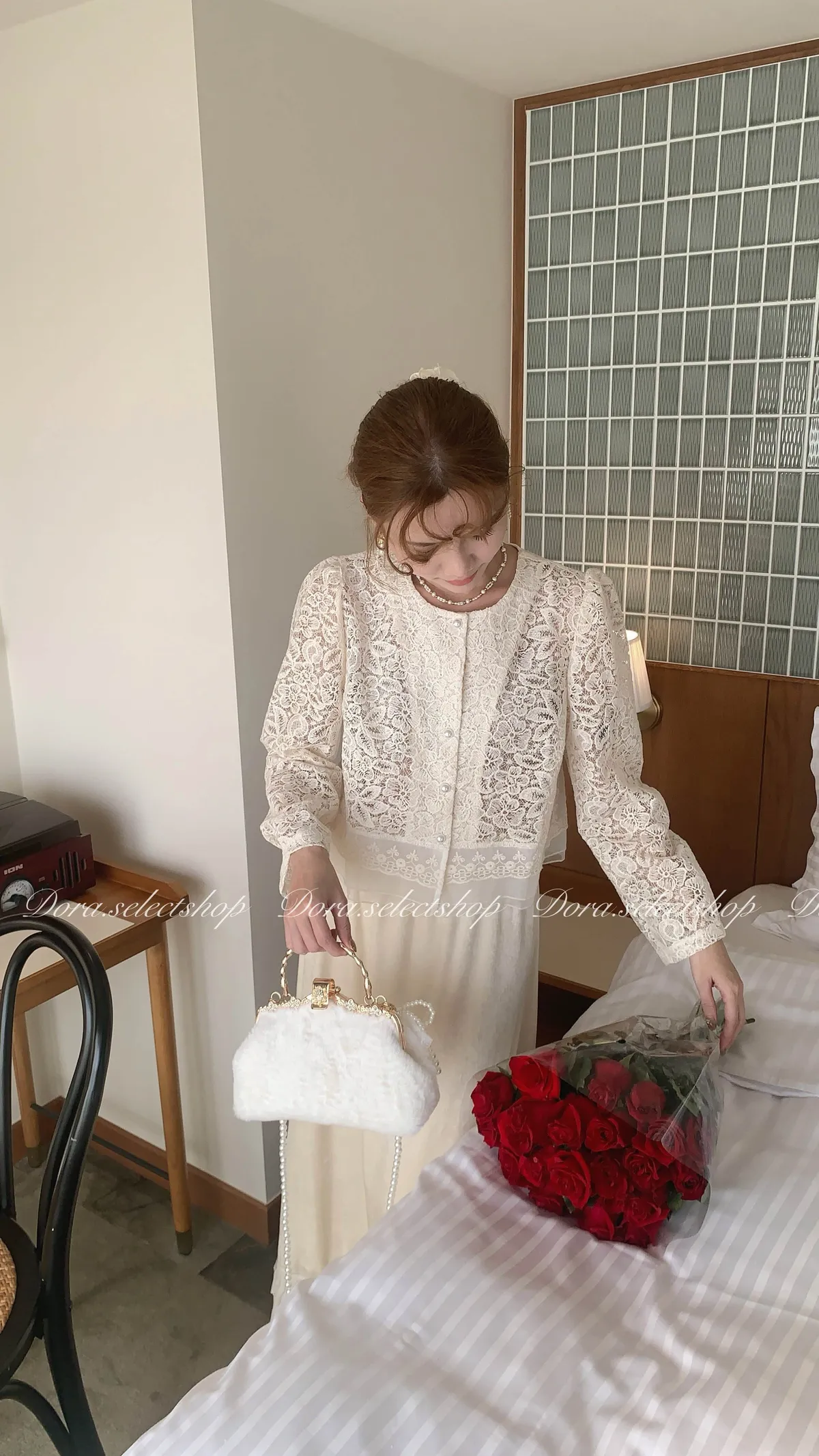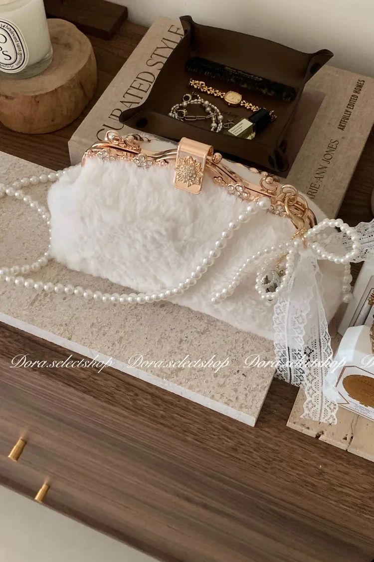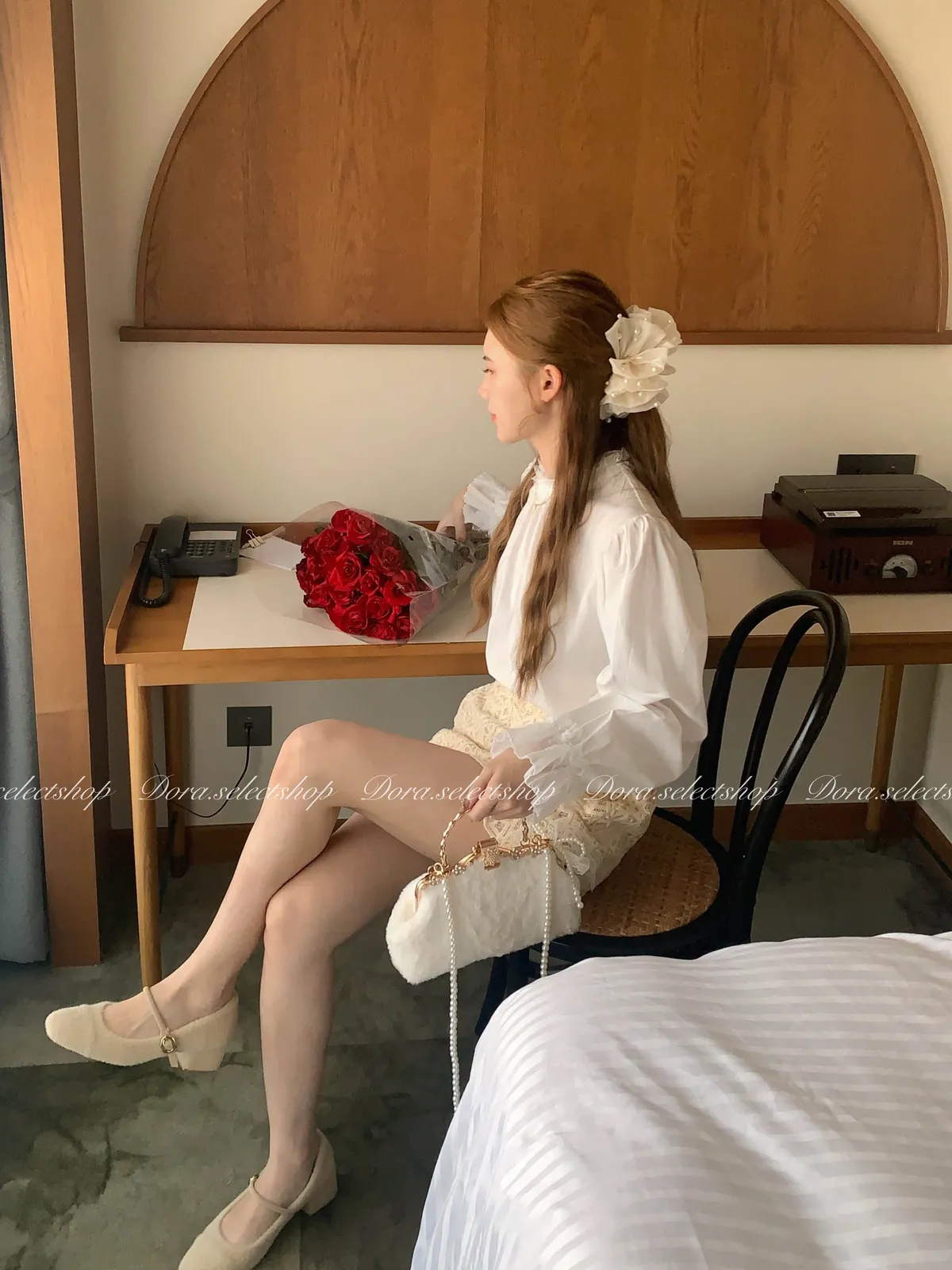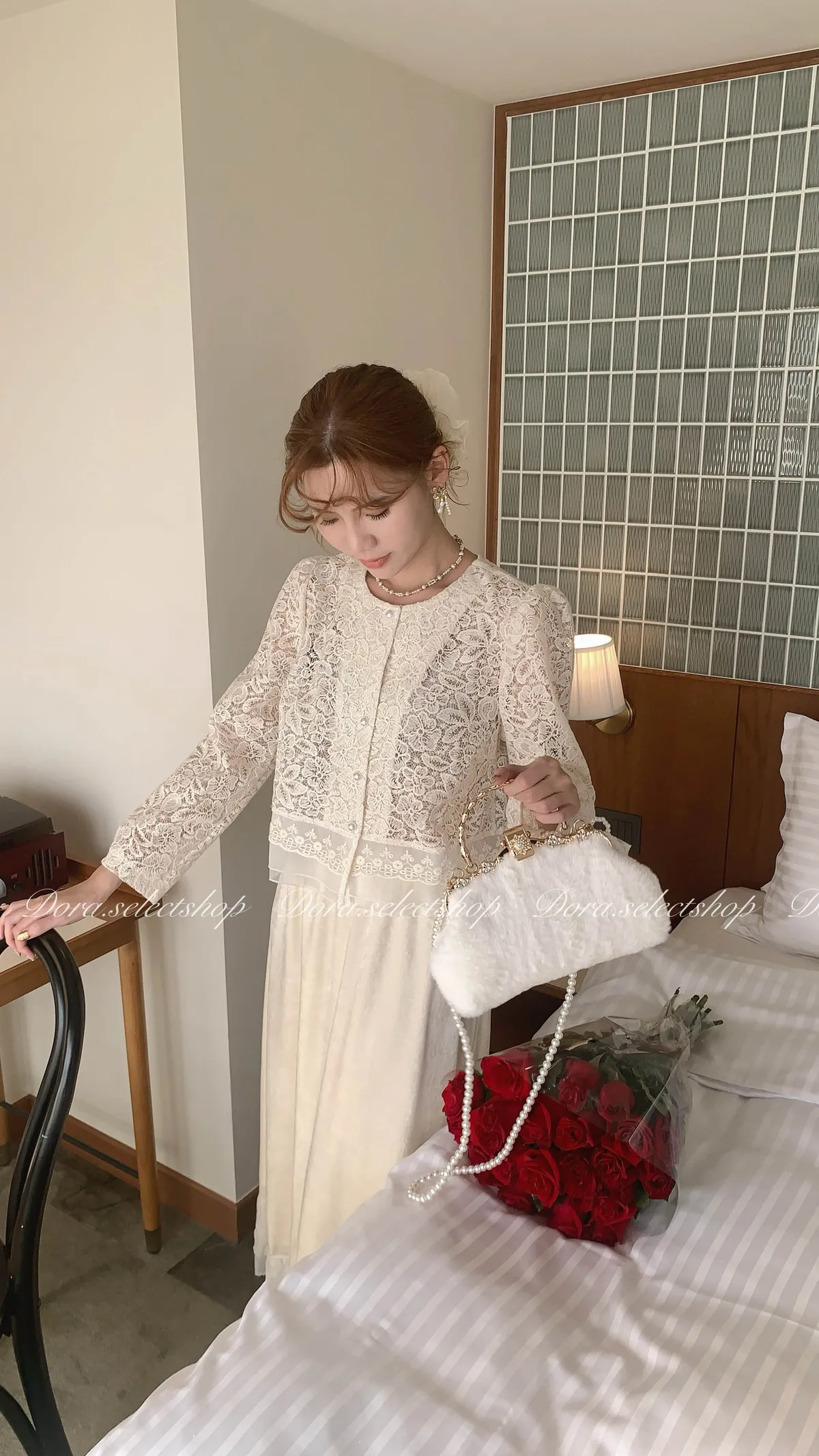 附珍珠長鏈.鏈條長鍊.珍珠蕾絲蝴蝶結掛飾