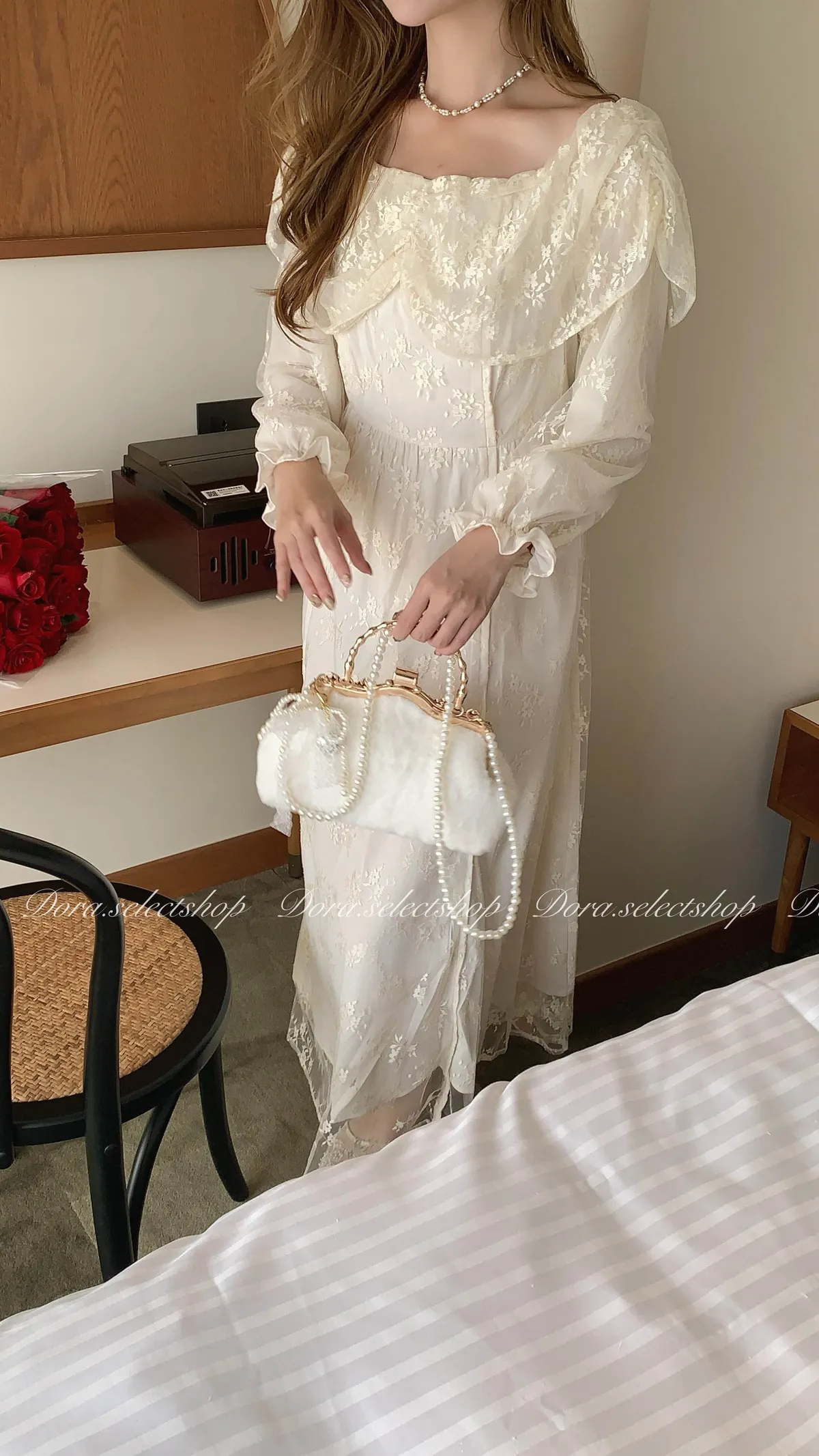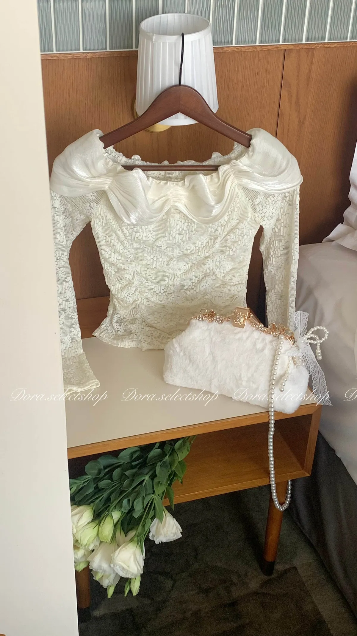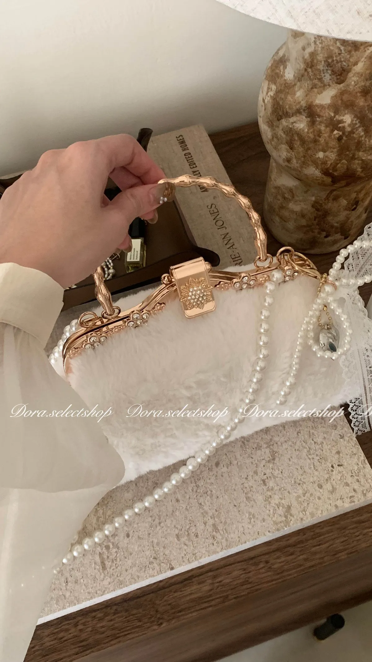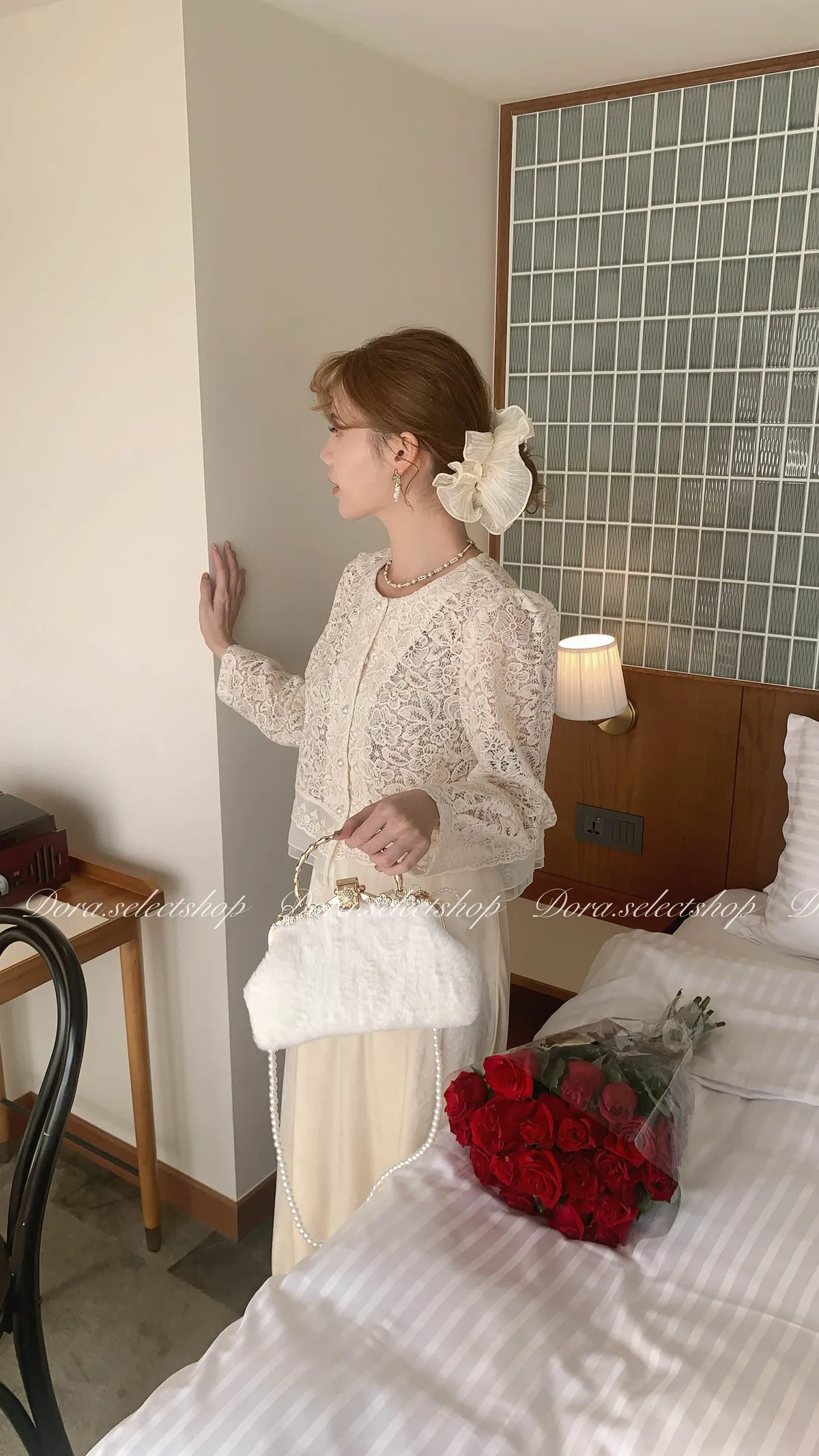 附珍珠長鏈.鏈條長鍊.珍珠蕾絲蝴蝶結掛飾