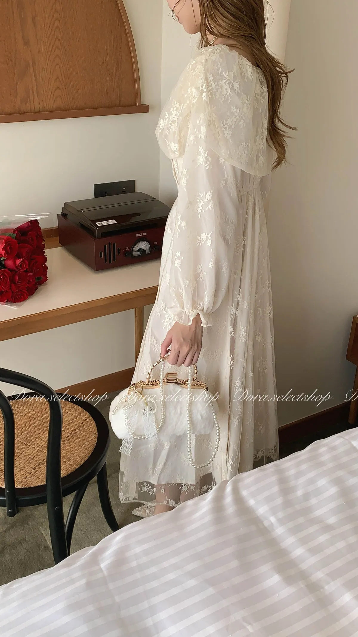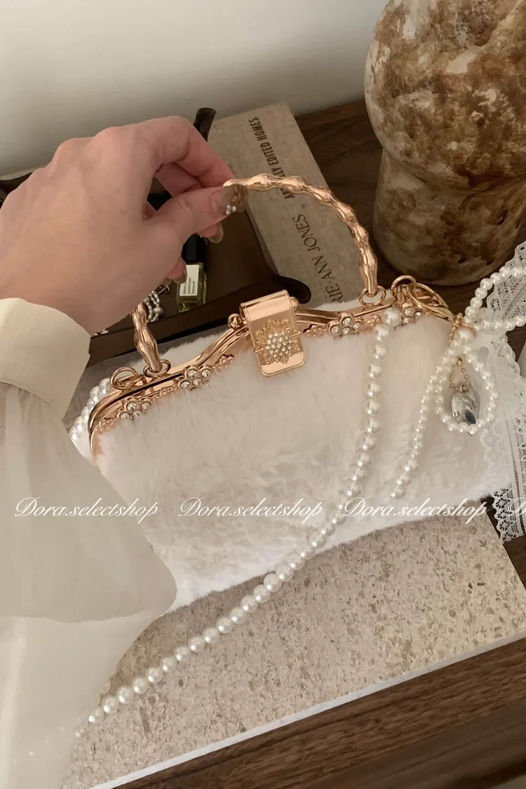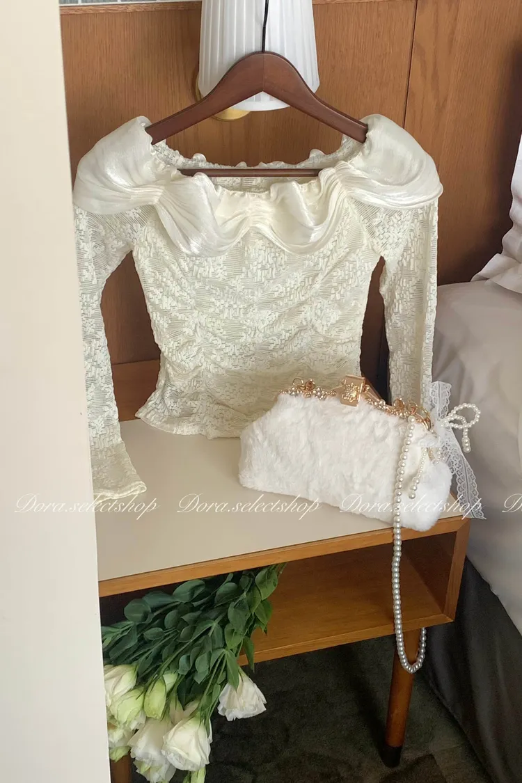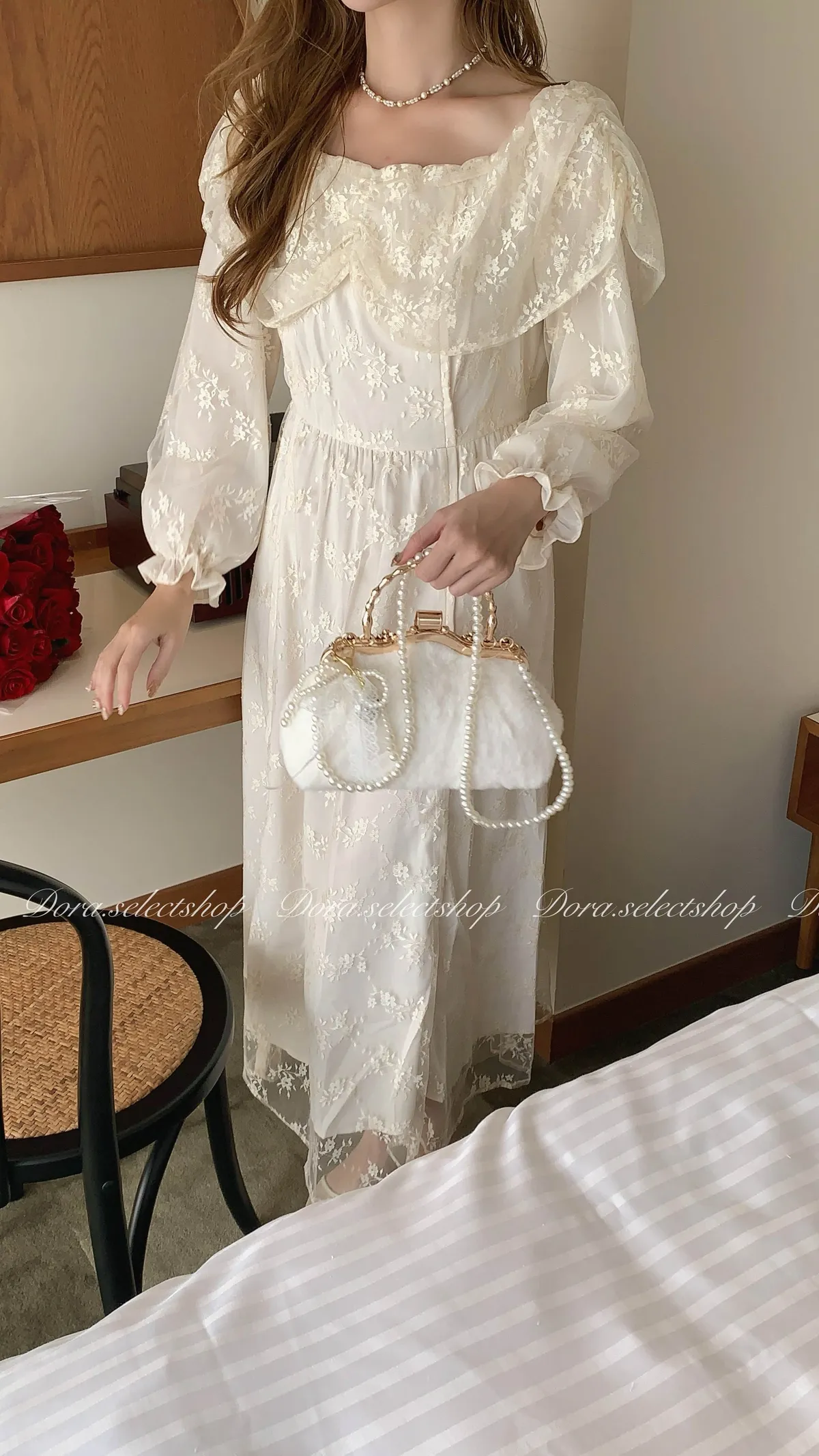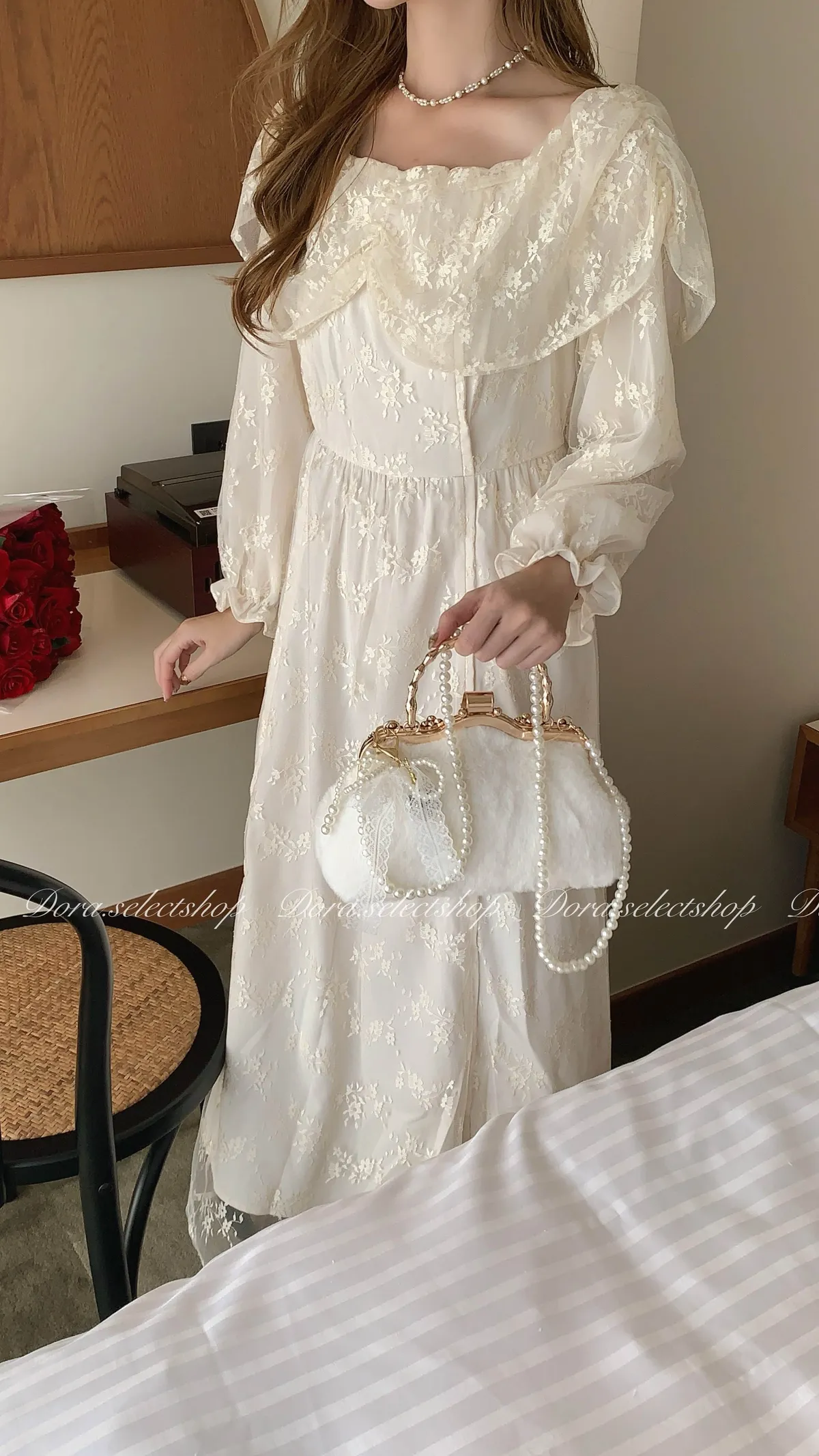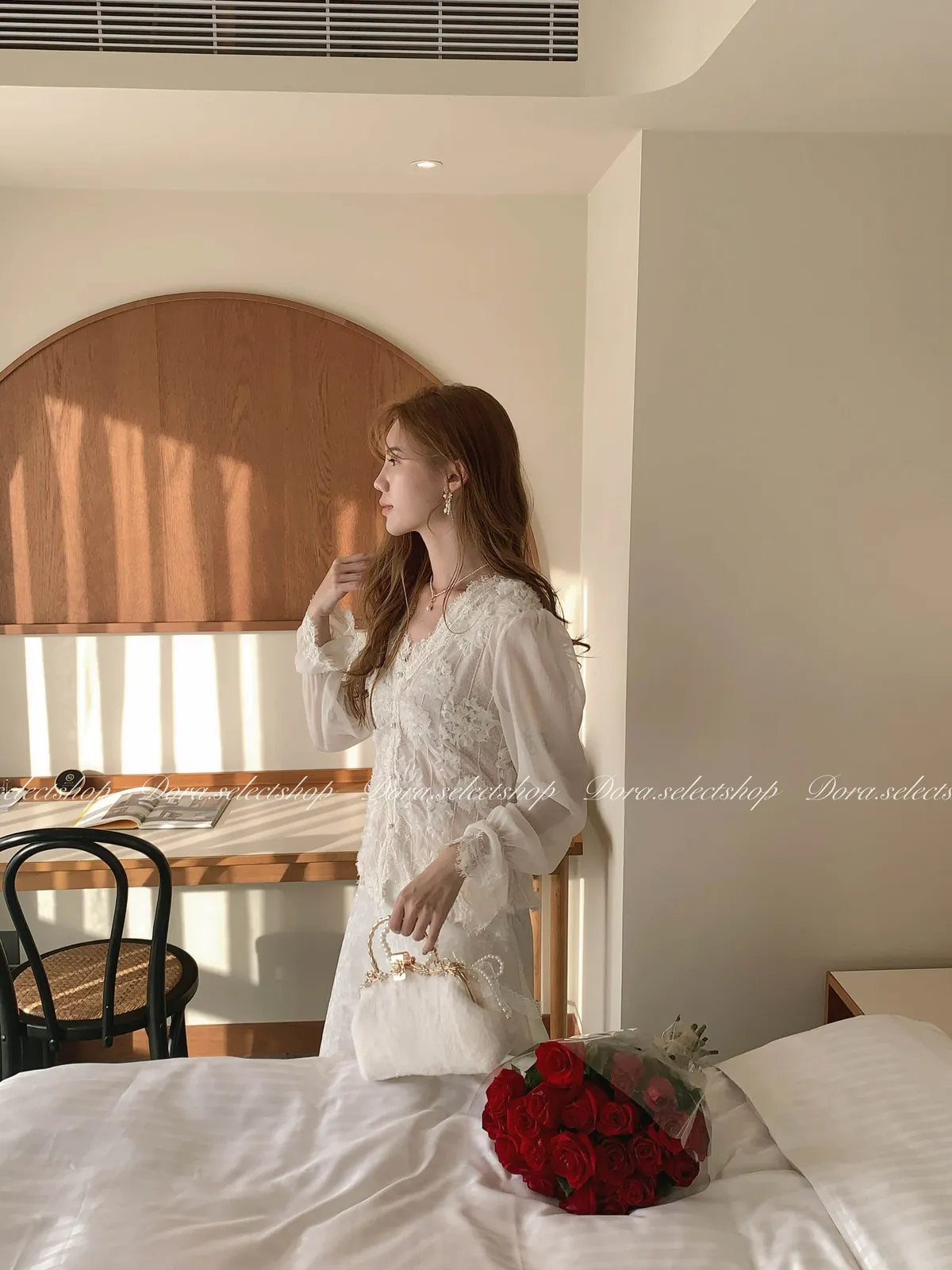 附珍珠長鏈.鏈條長鍊.珍珠蕾絲蝴蝶結掛飾