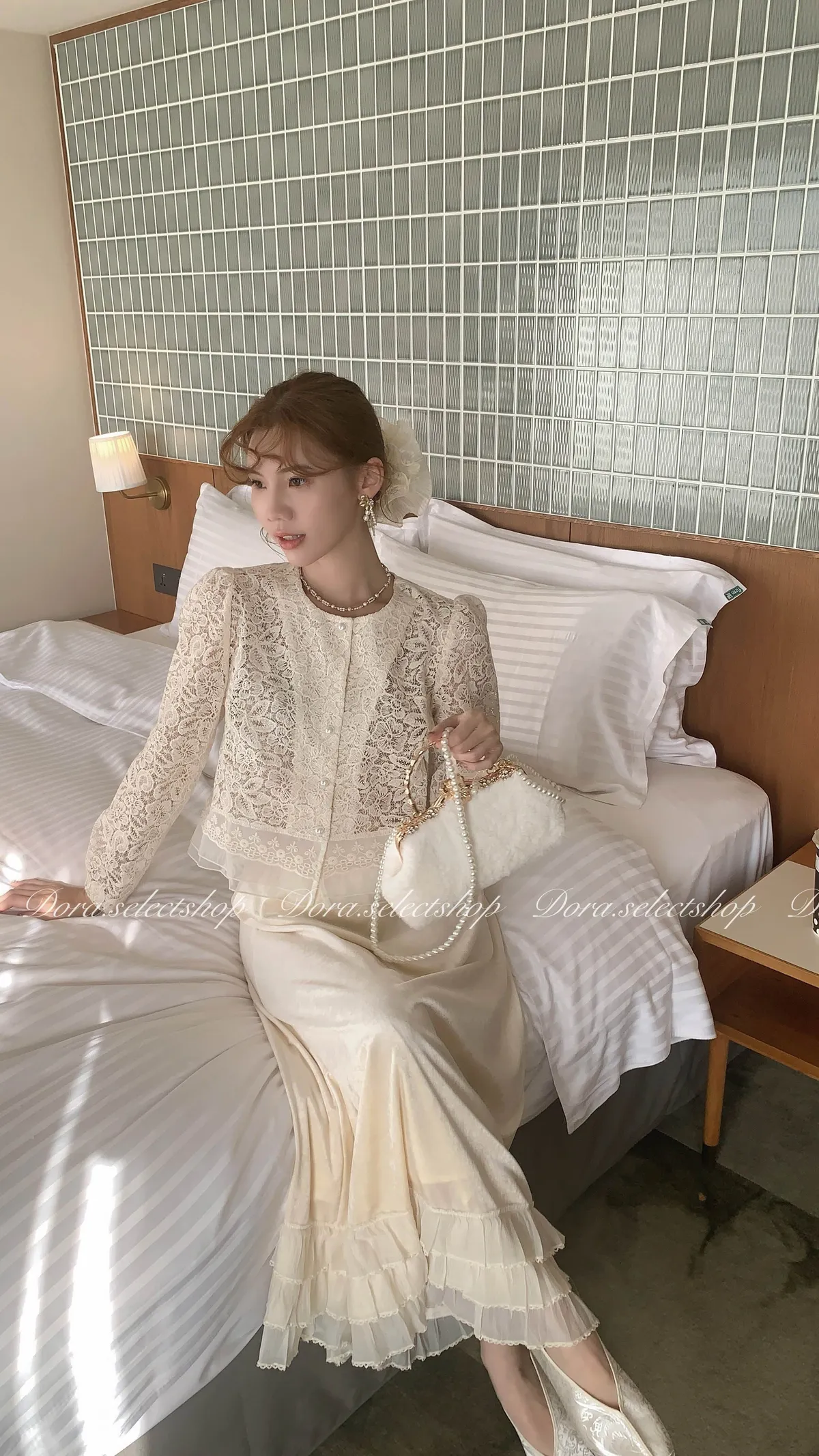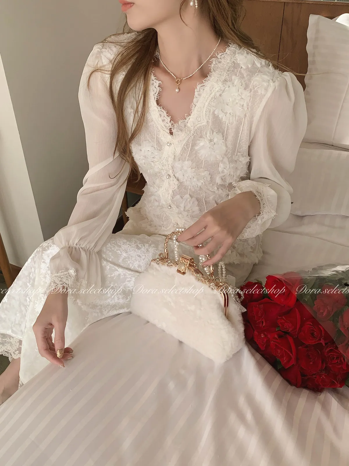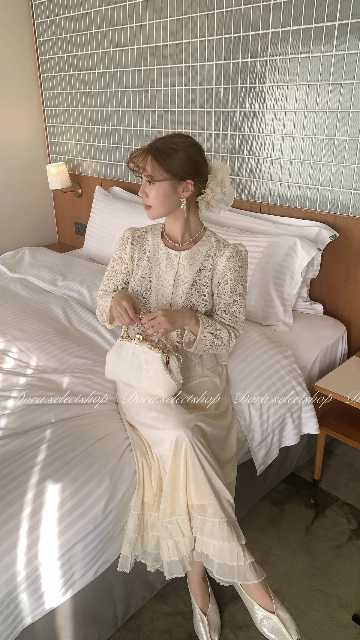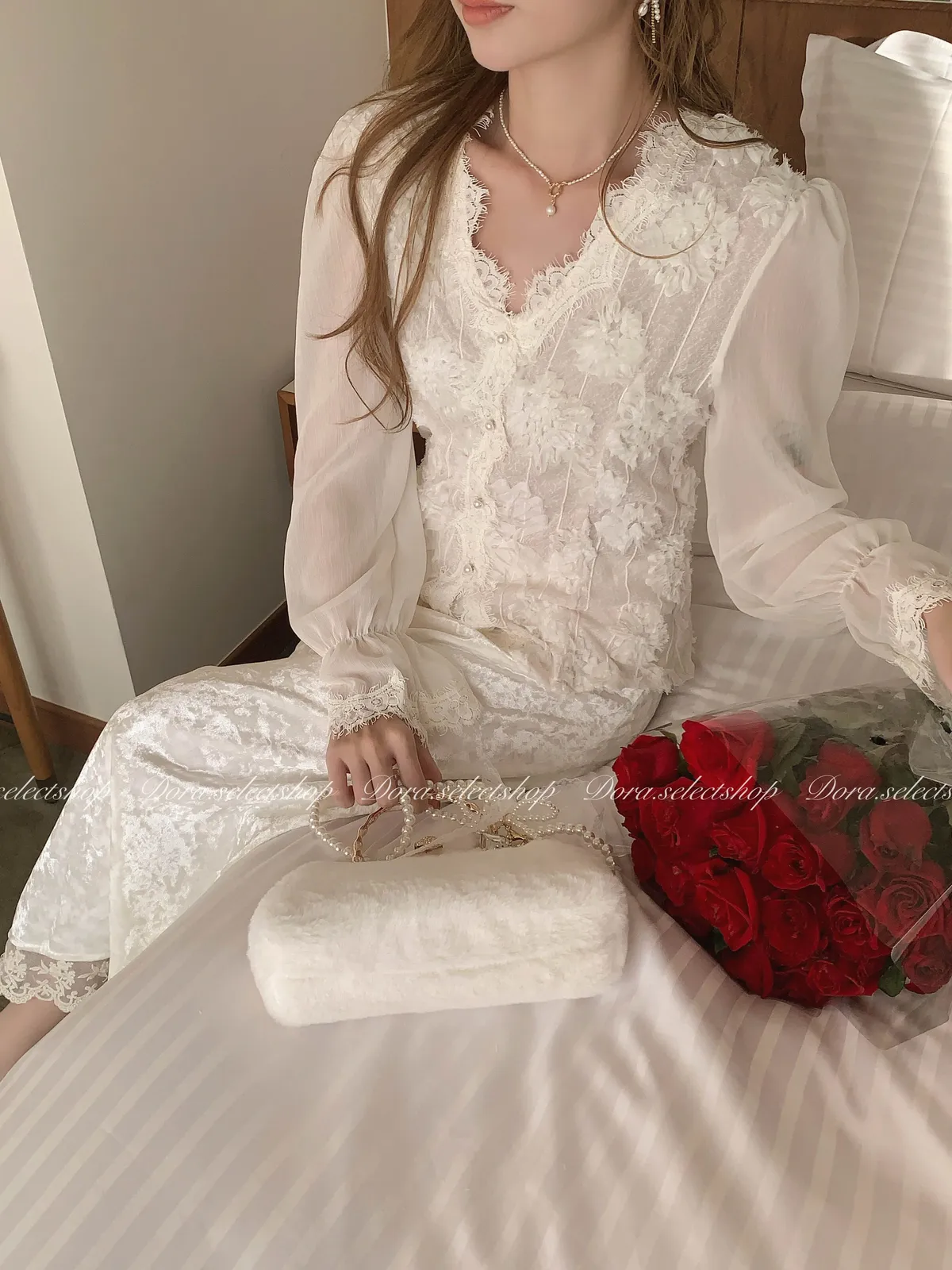 附珍珠長鏈.鏈條長鍊.珍珠蕾絲蝴蝶結掛飾