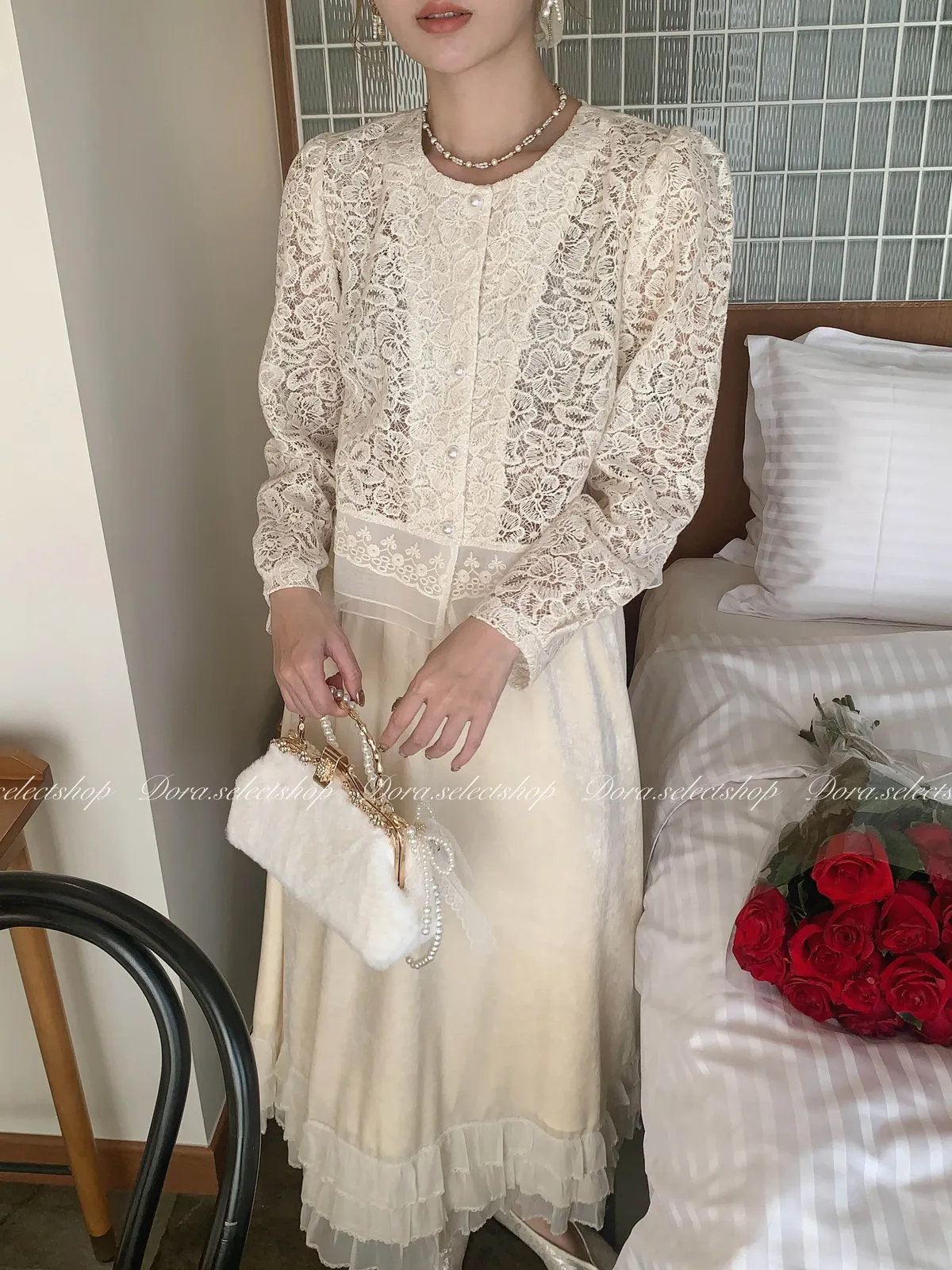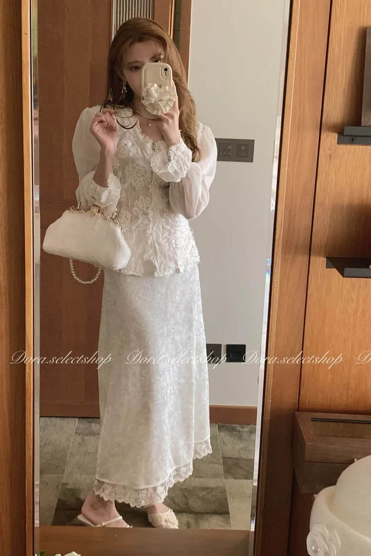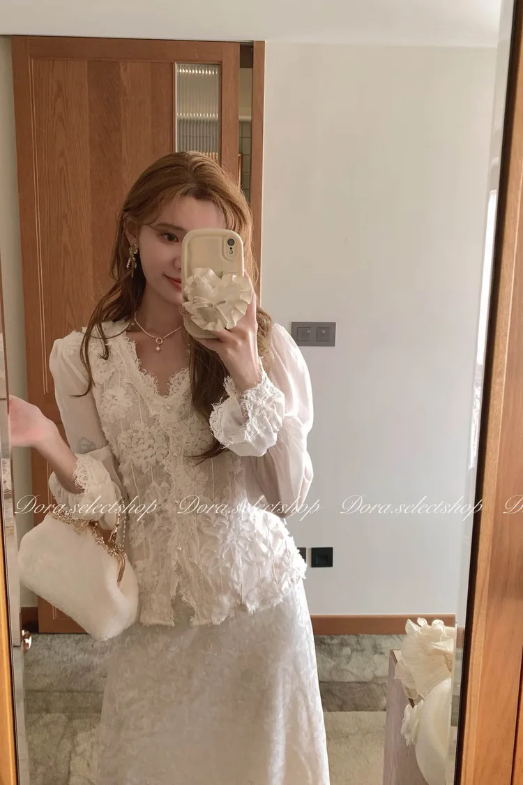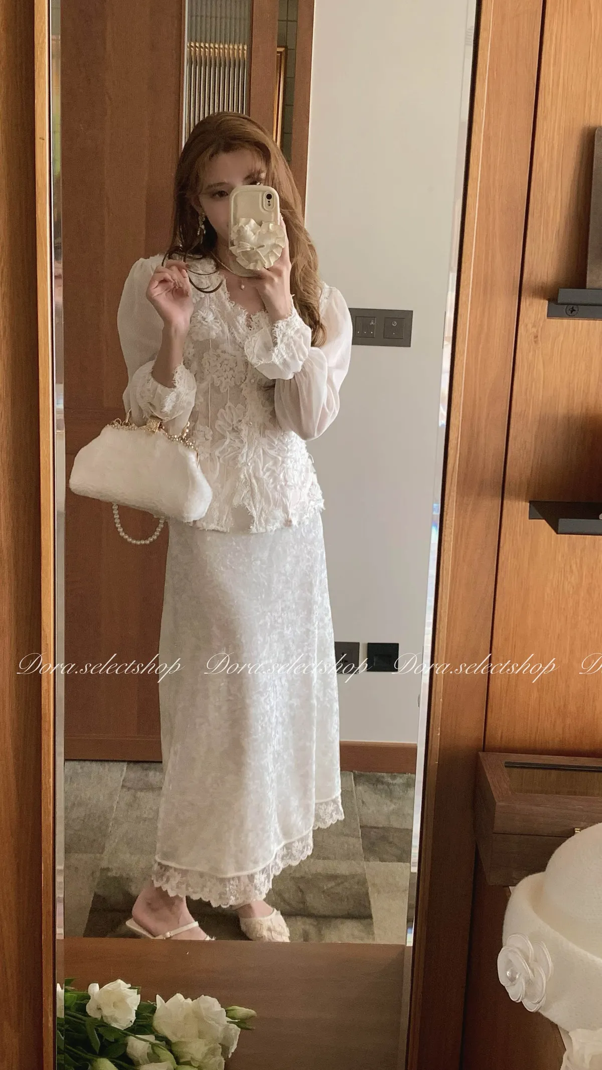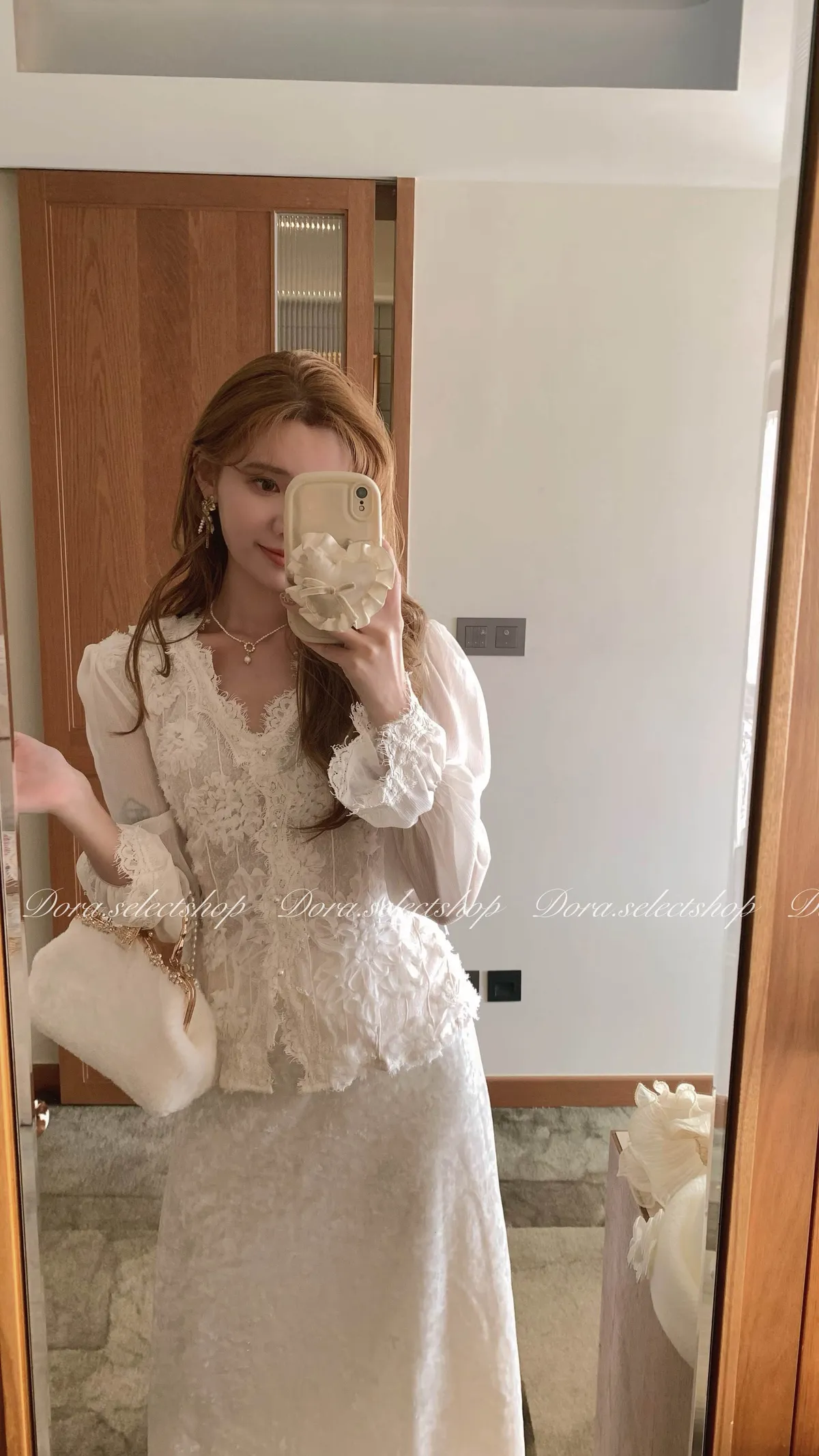 附珍珠長鏈.鏈條長鍊.珍珠蕾絲蝴蝶結掛飾