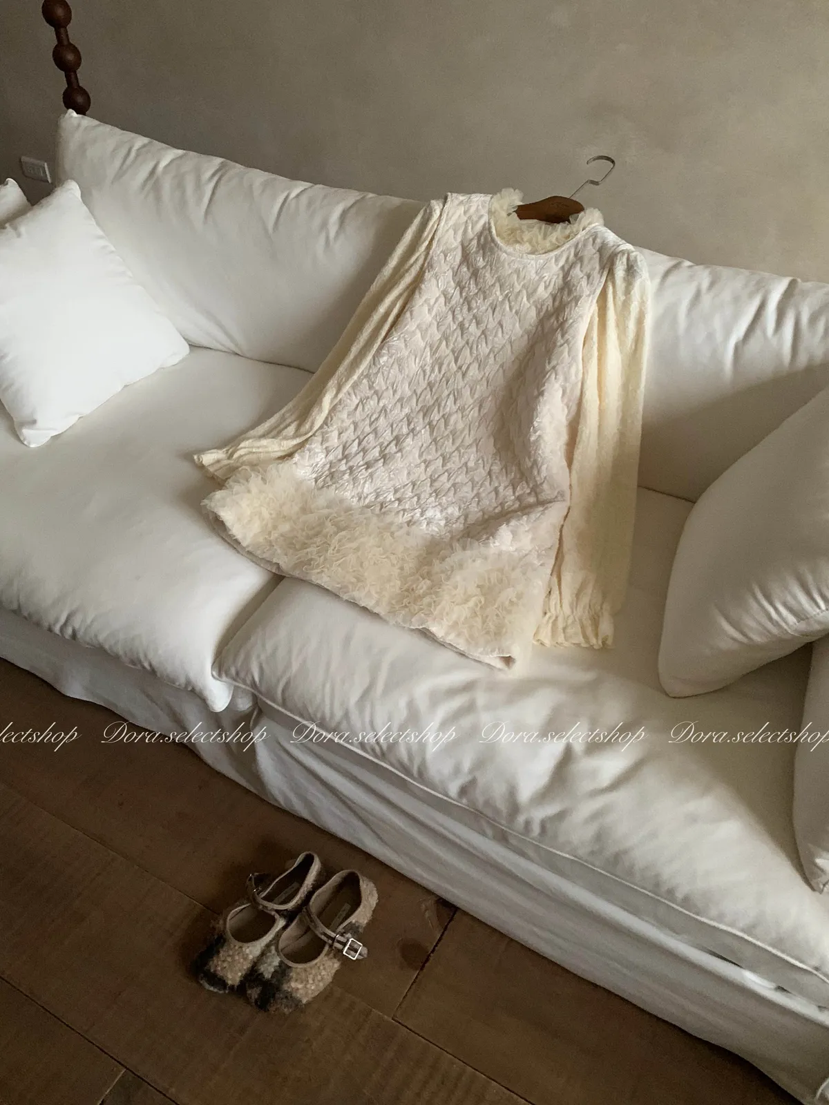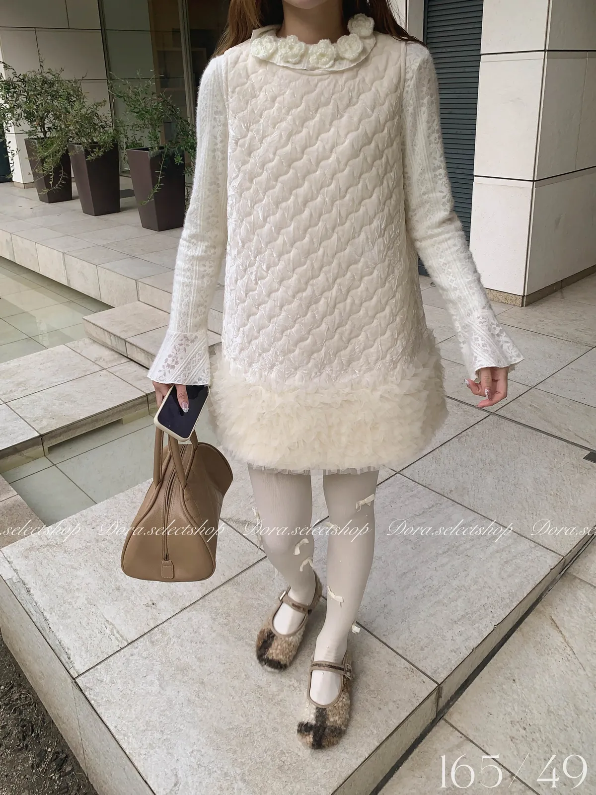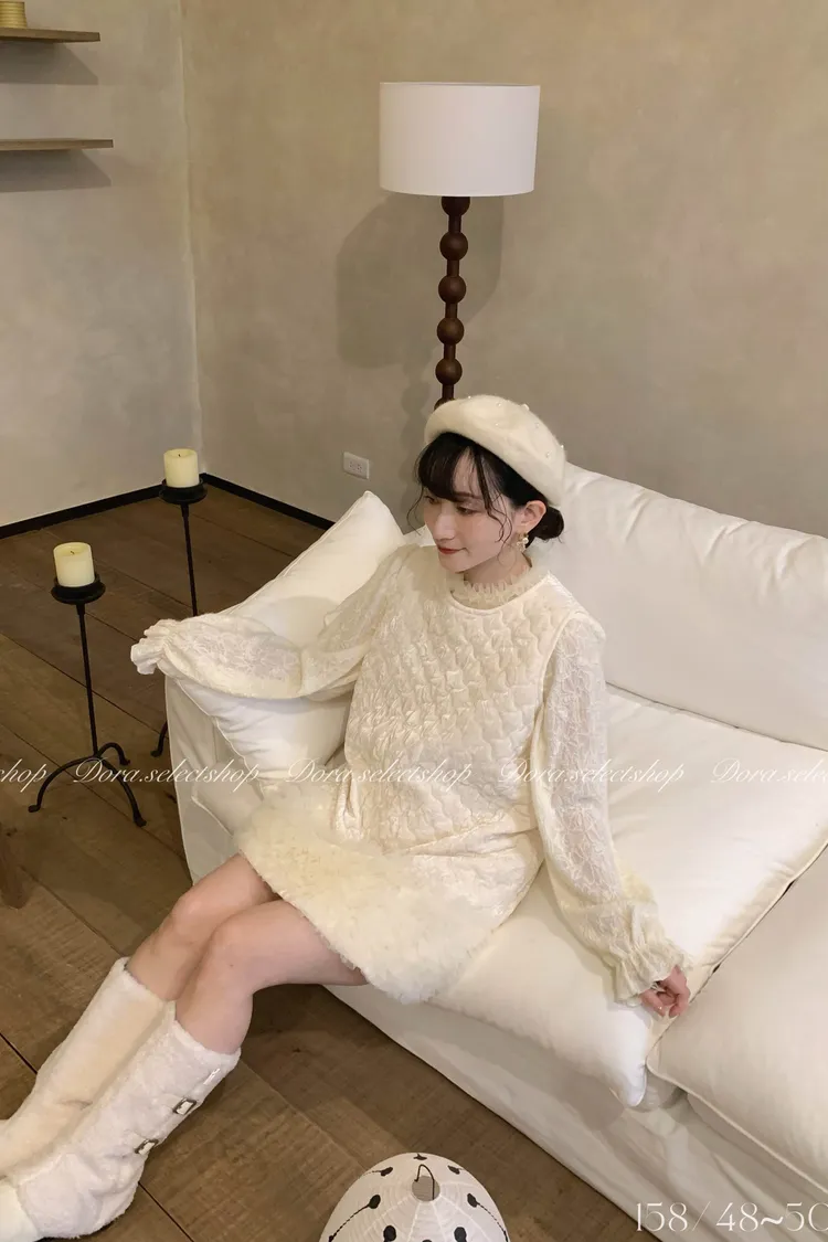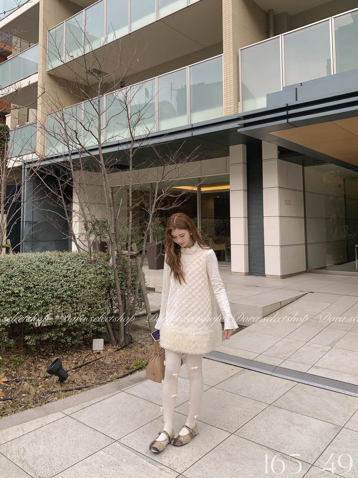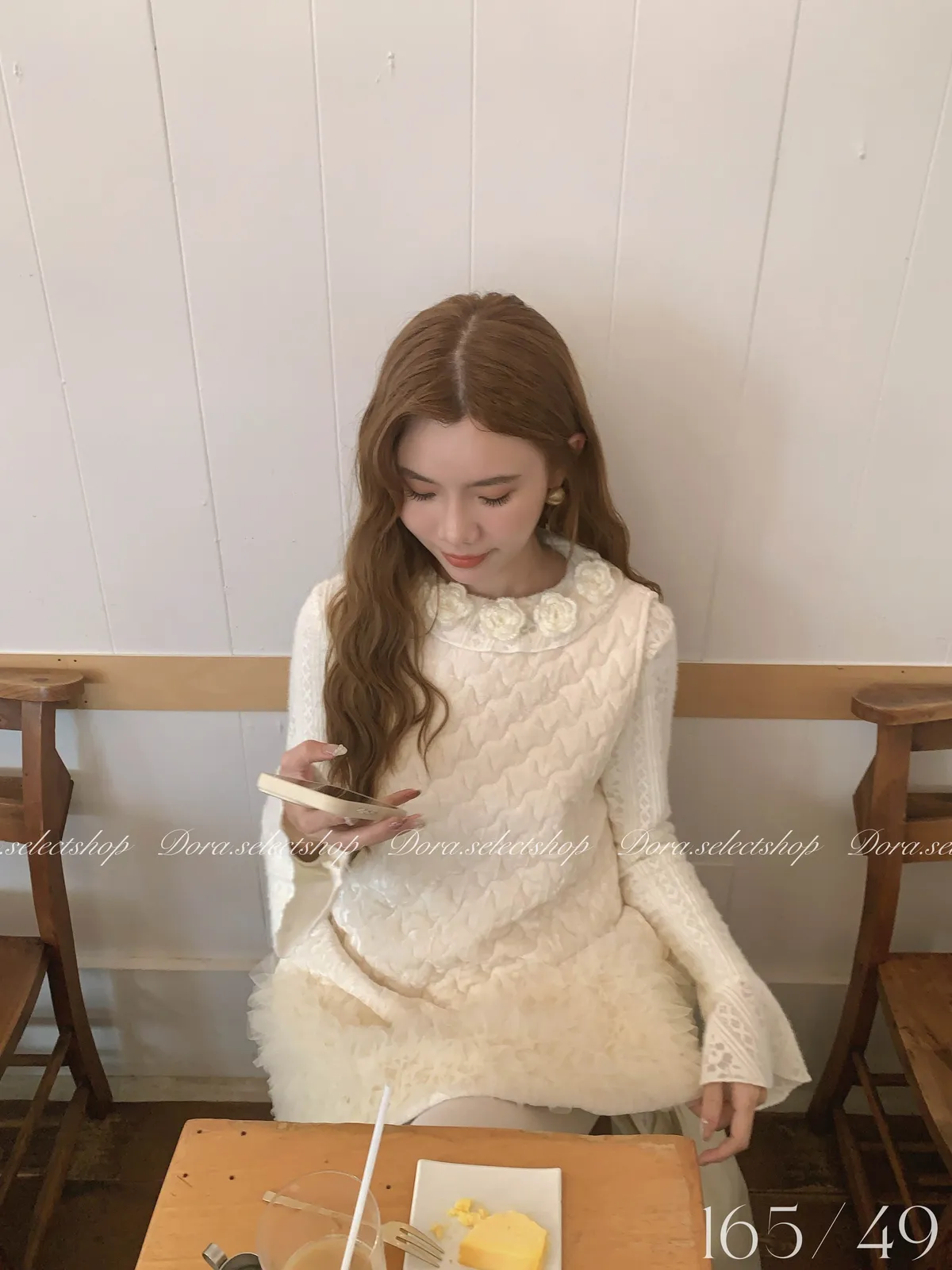 法式小公主菱格蕾絲拼接背心洋裝---米