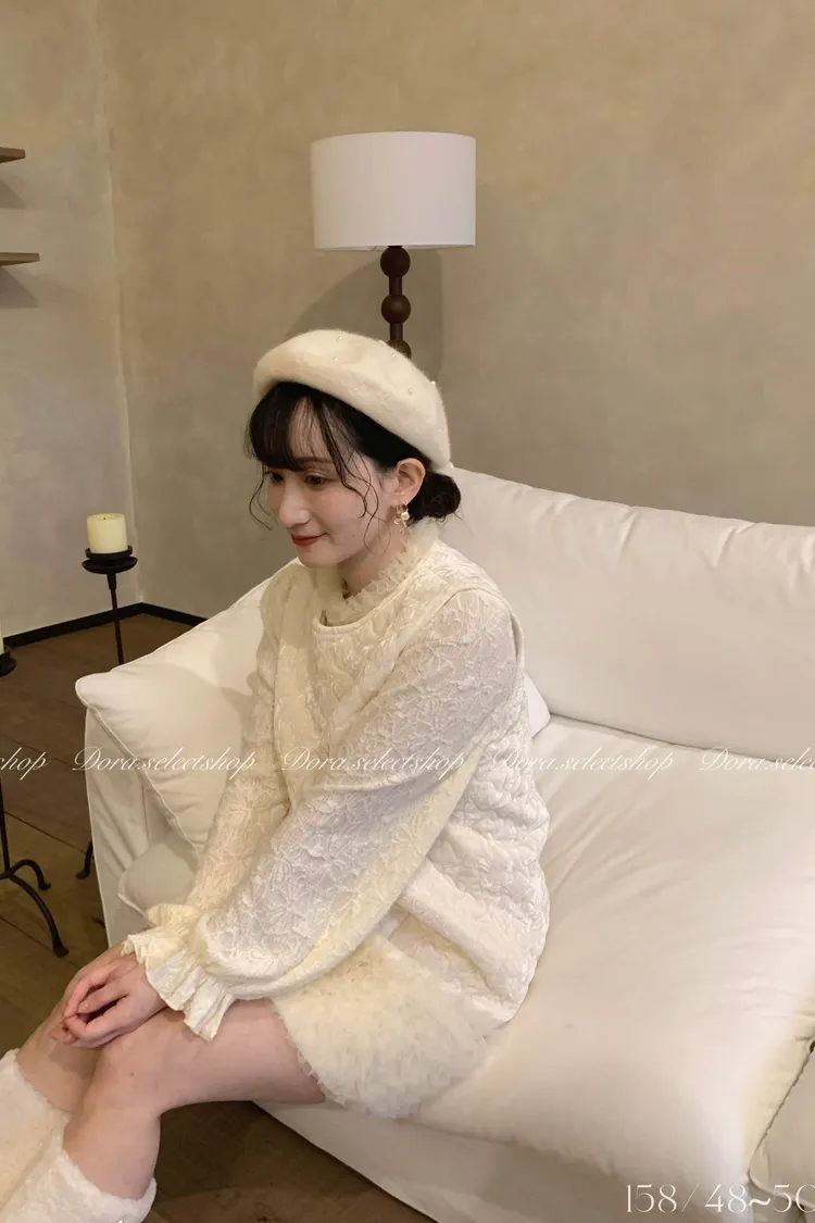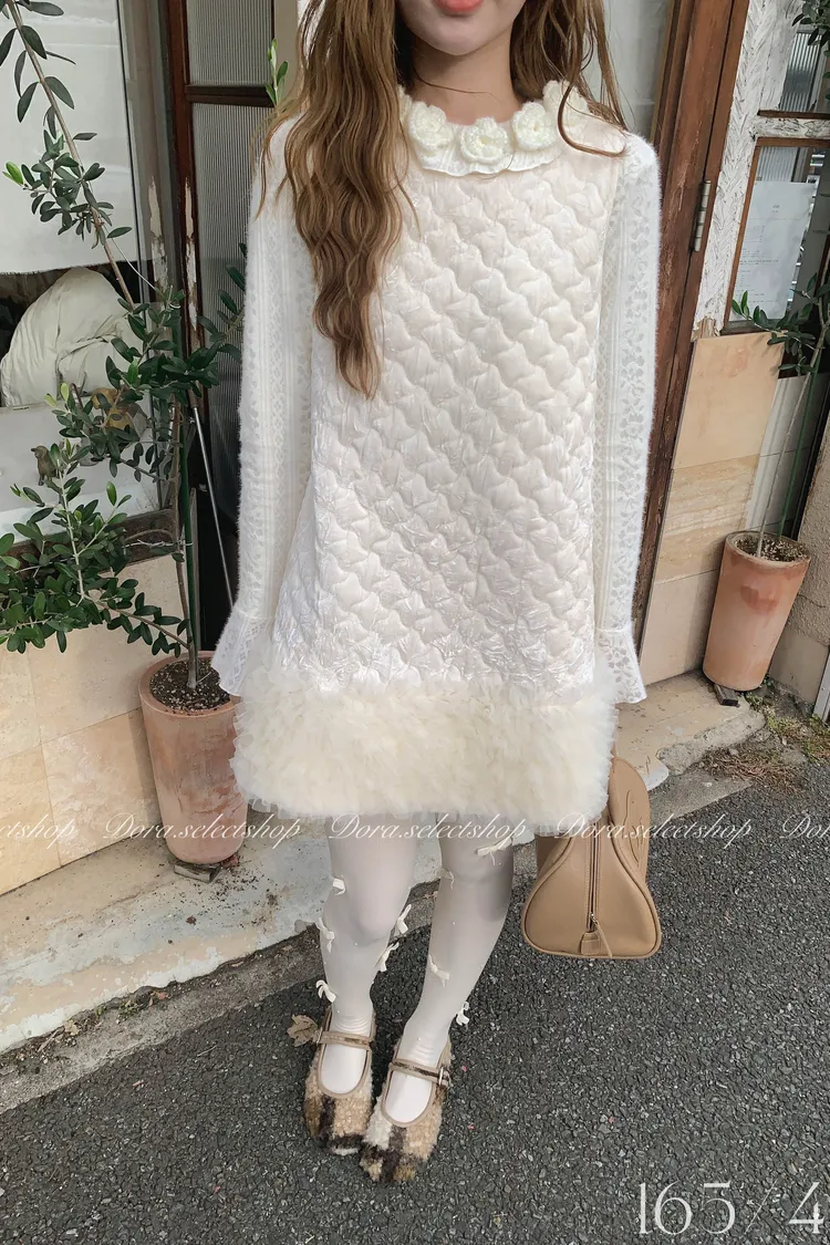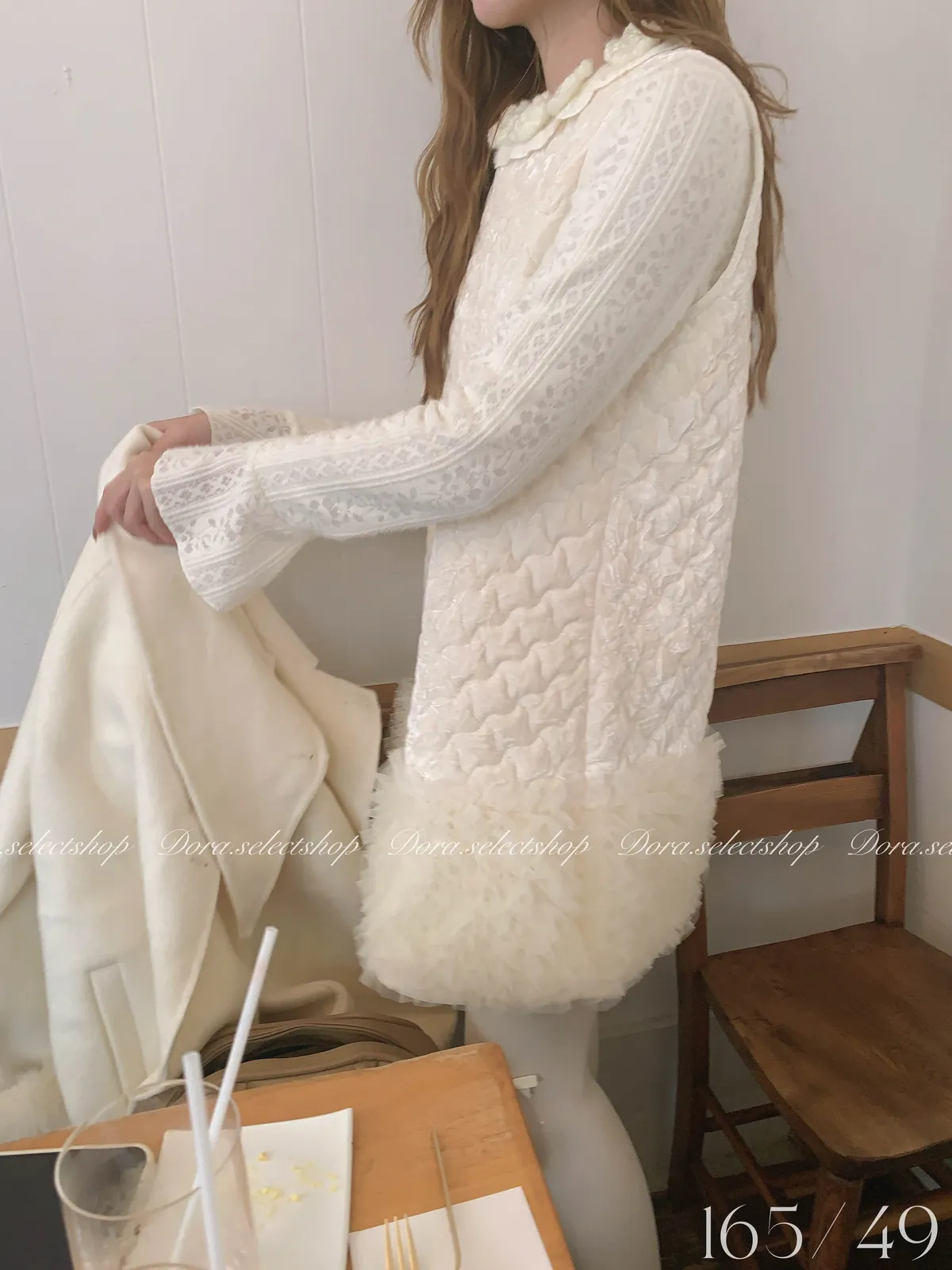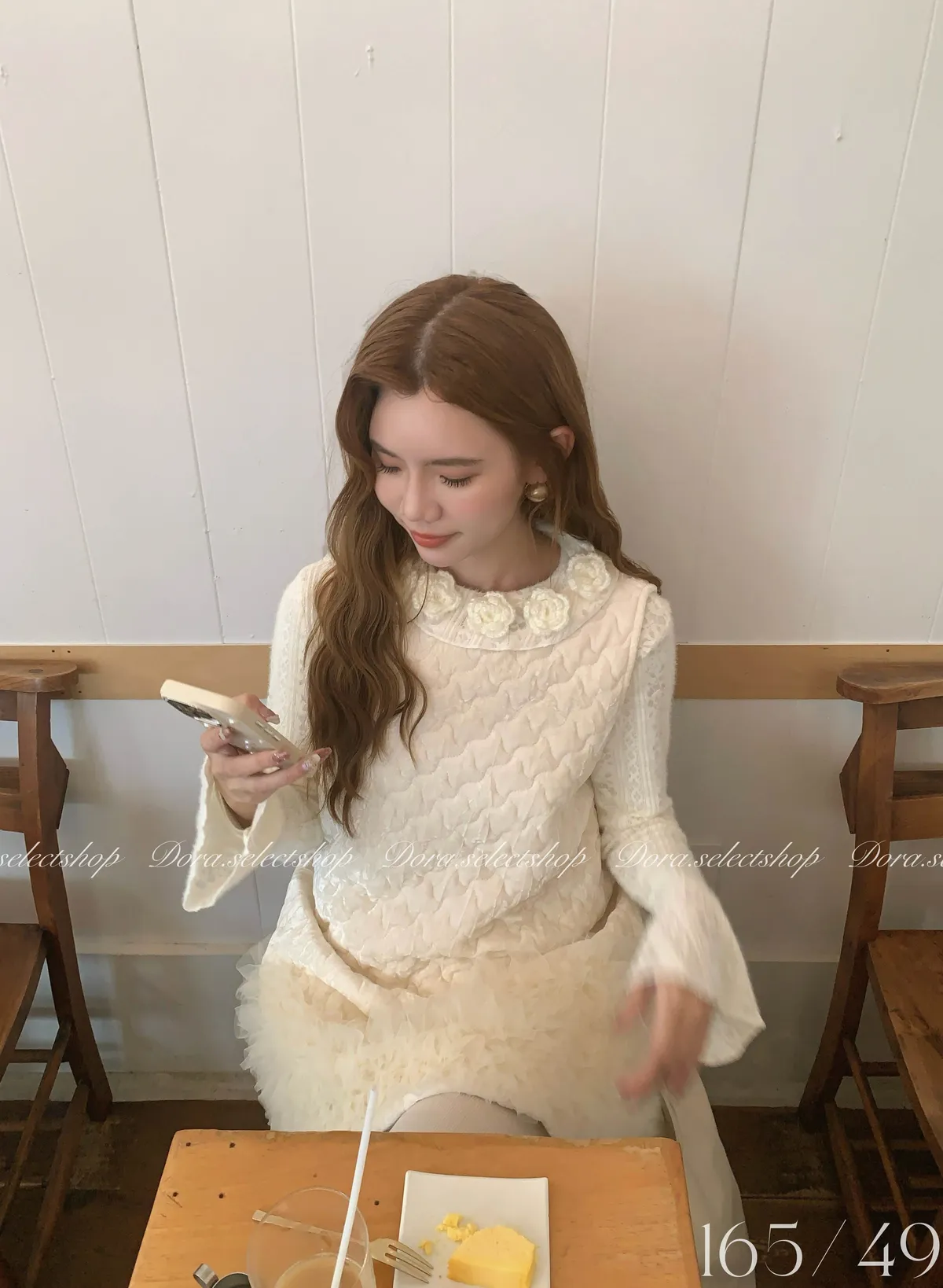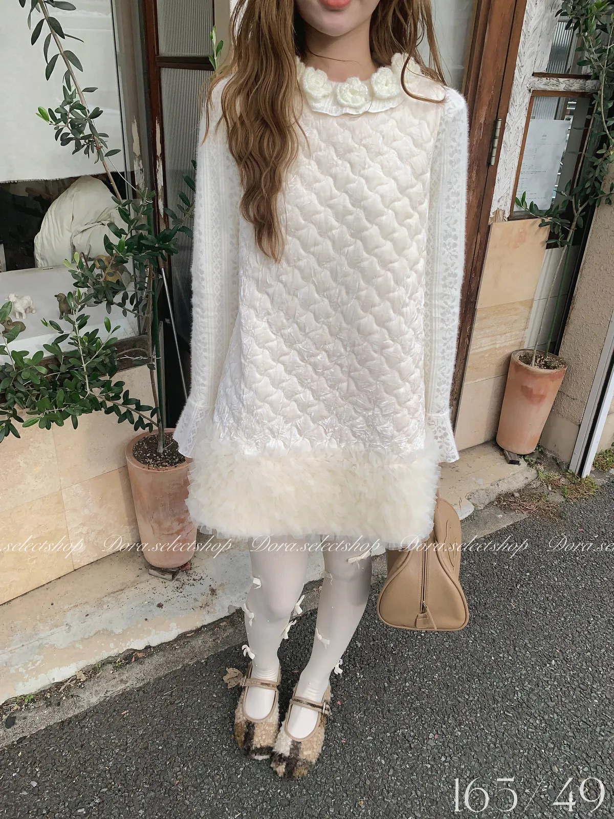 法式小公主菱格蕾絲拼接背心洋裝---米