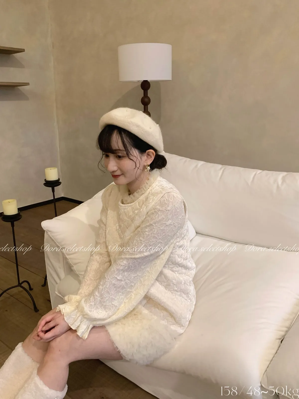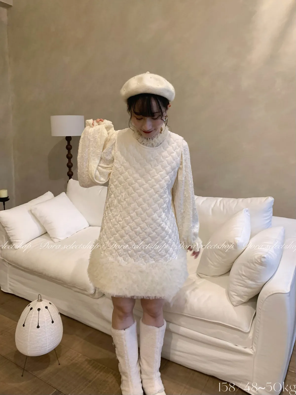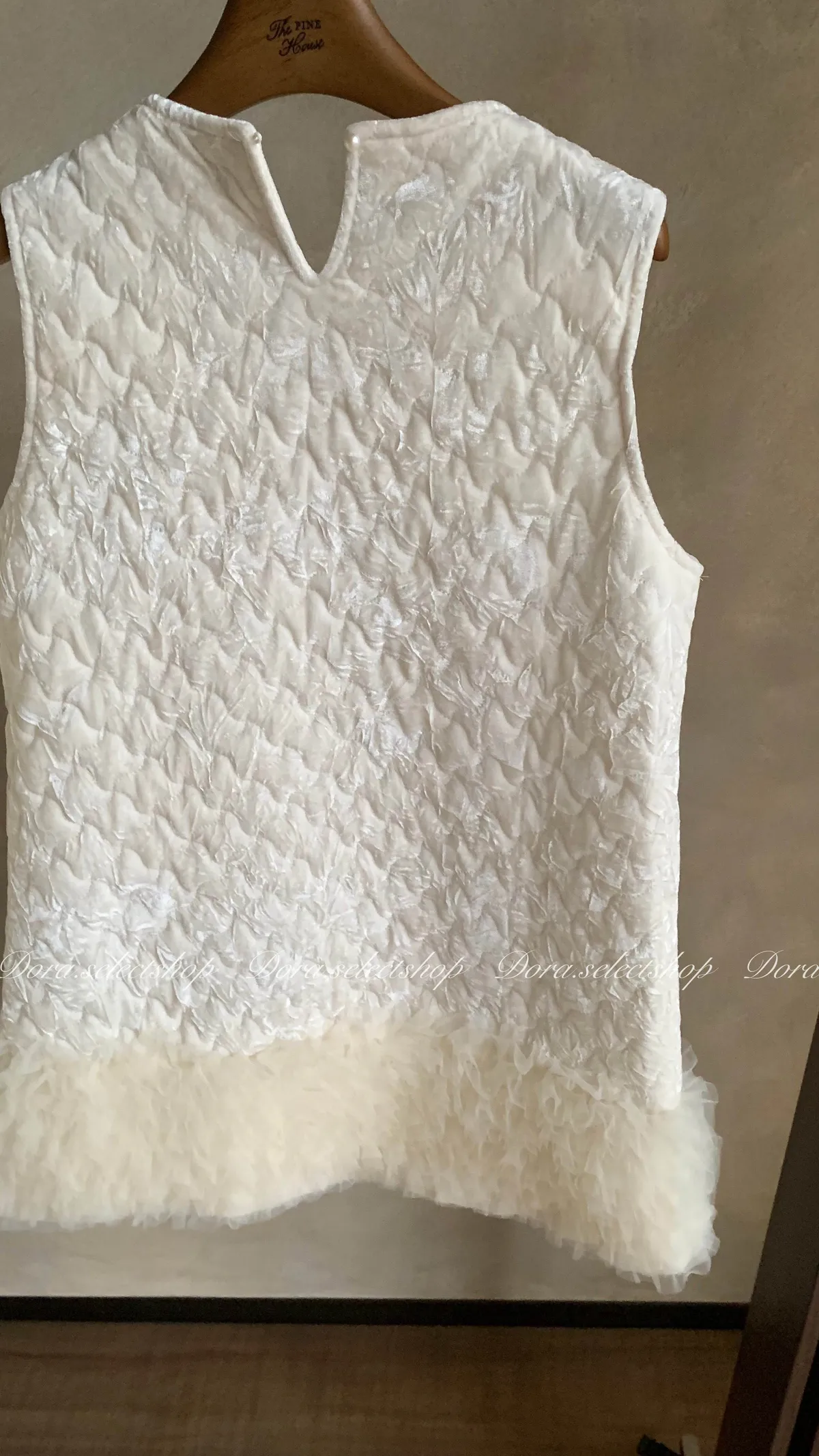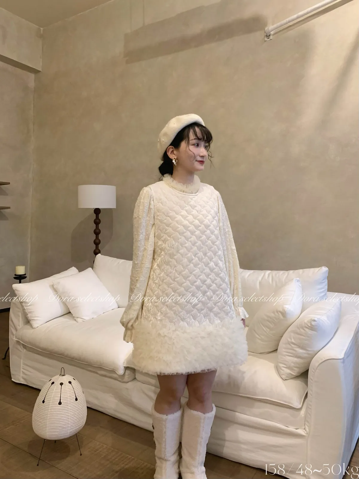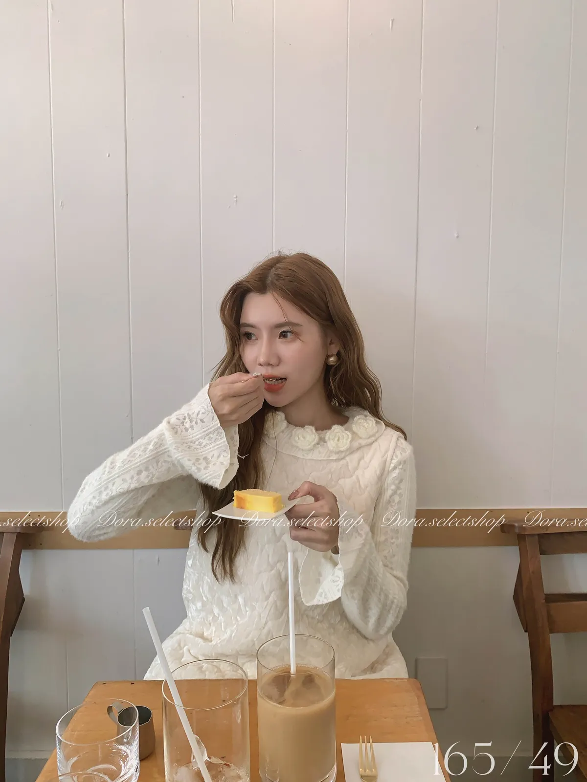 法式小公主菱格蕾絲拼接背心洋裝---米