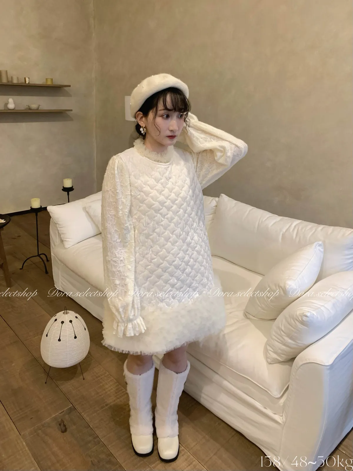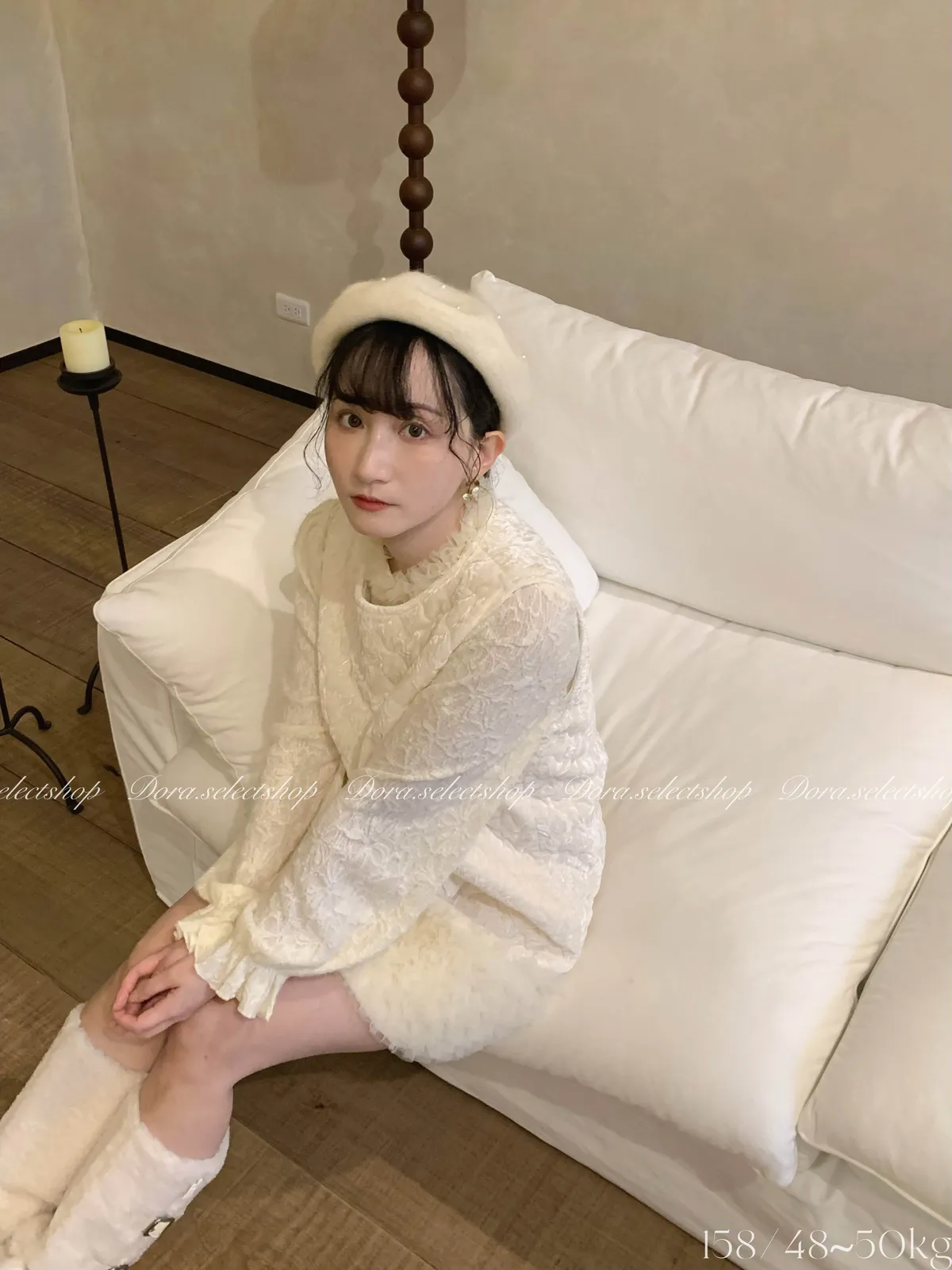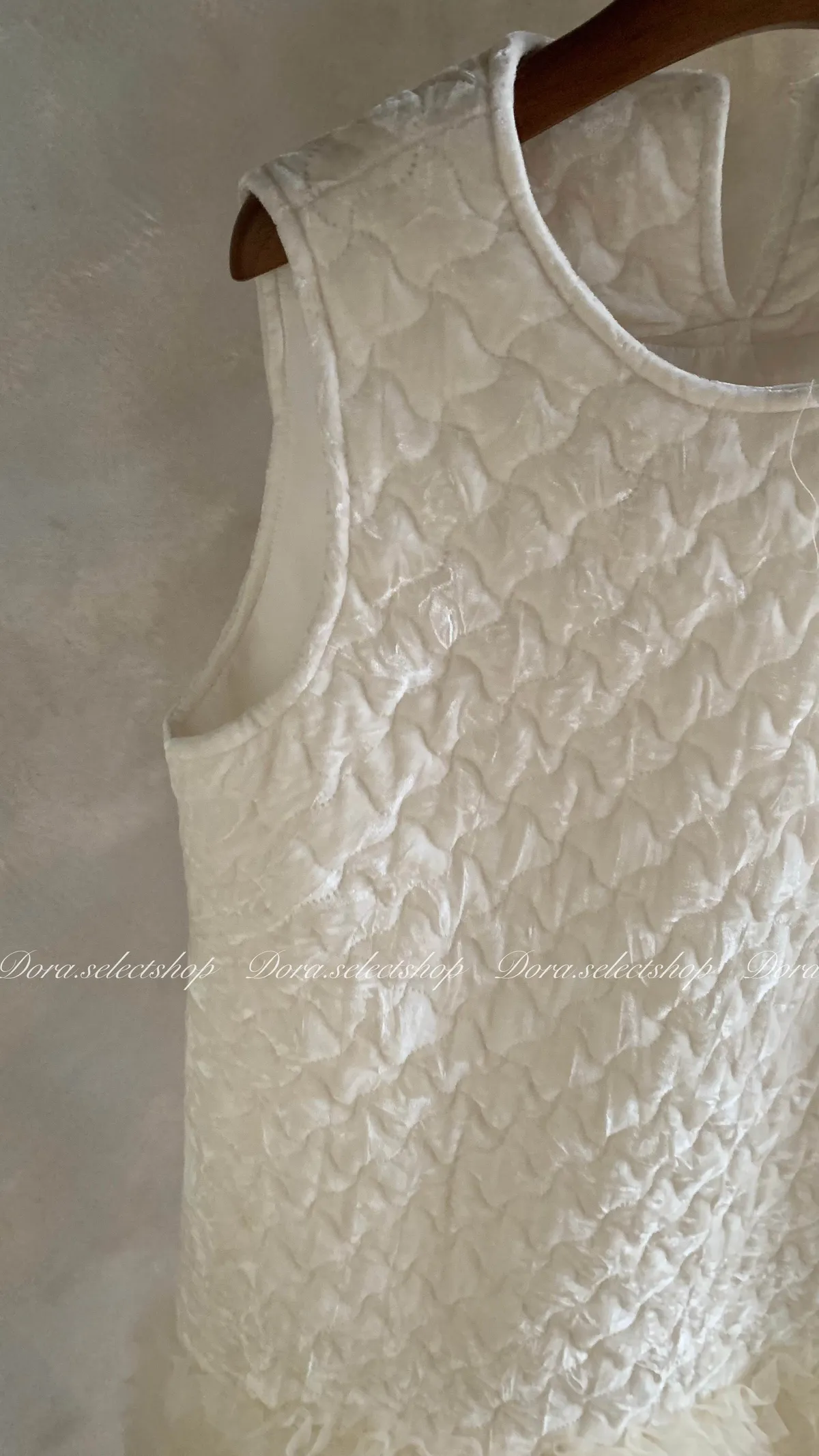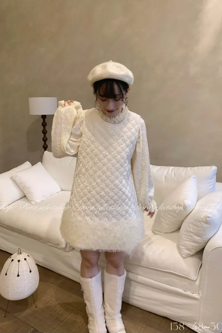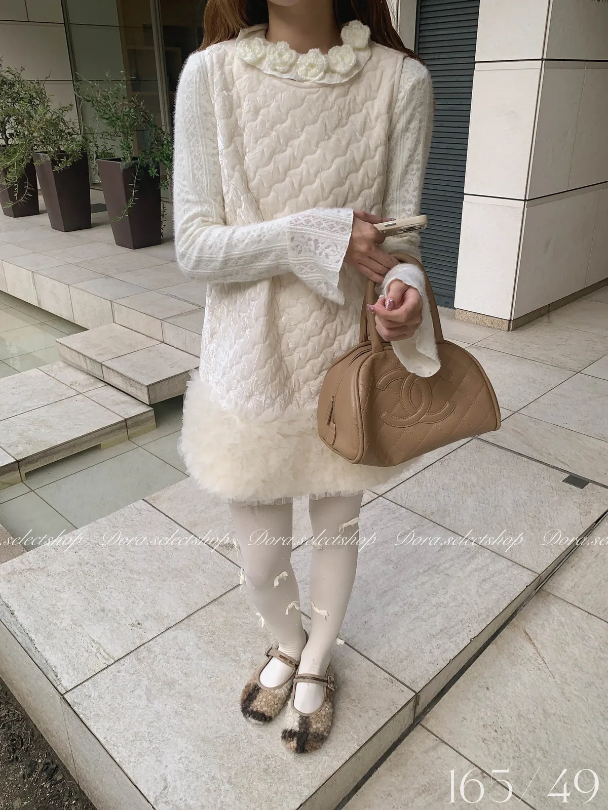法式小公主菱格蕾絲拼接背心洋裝---米