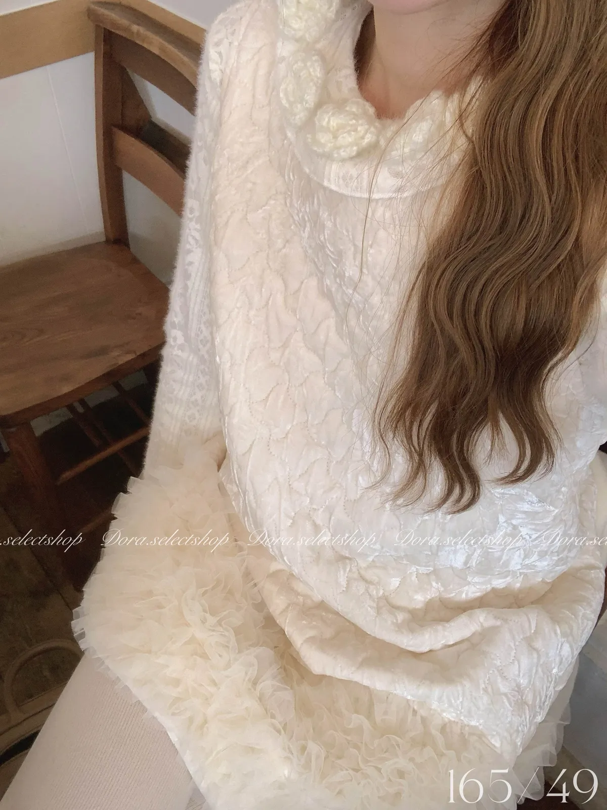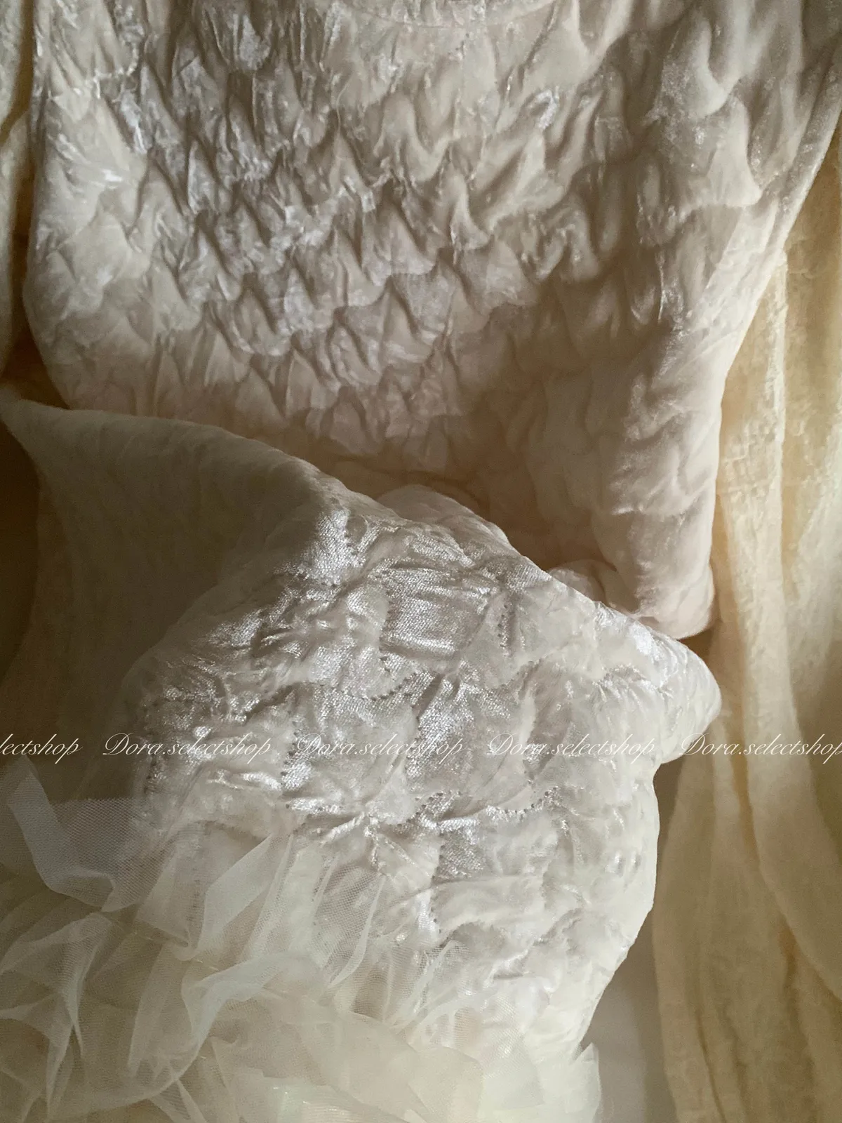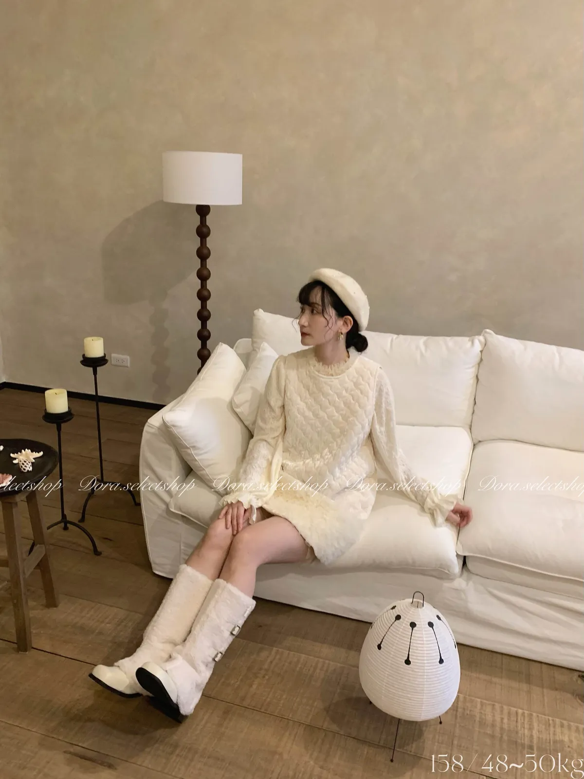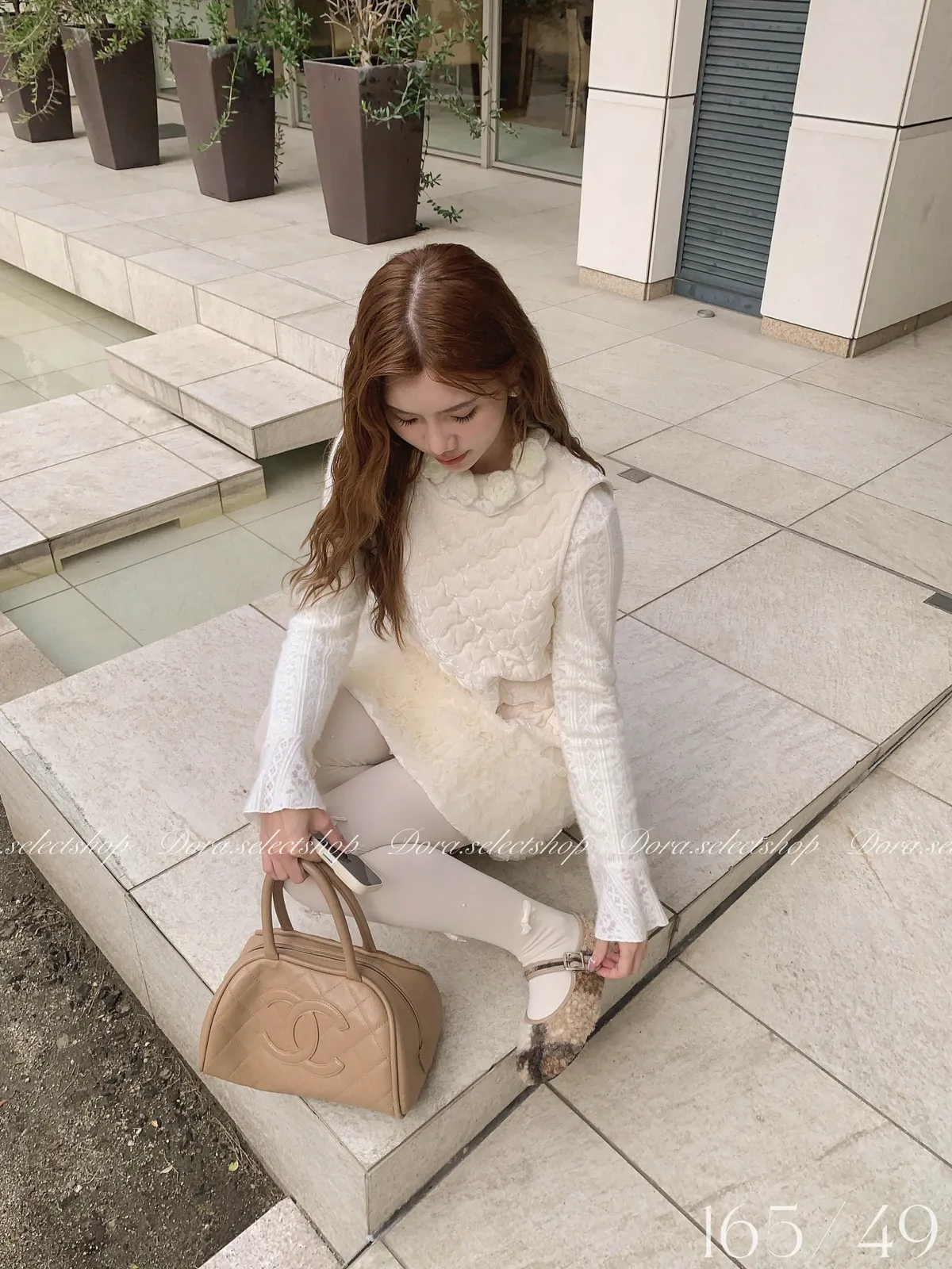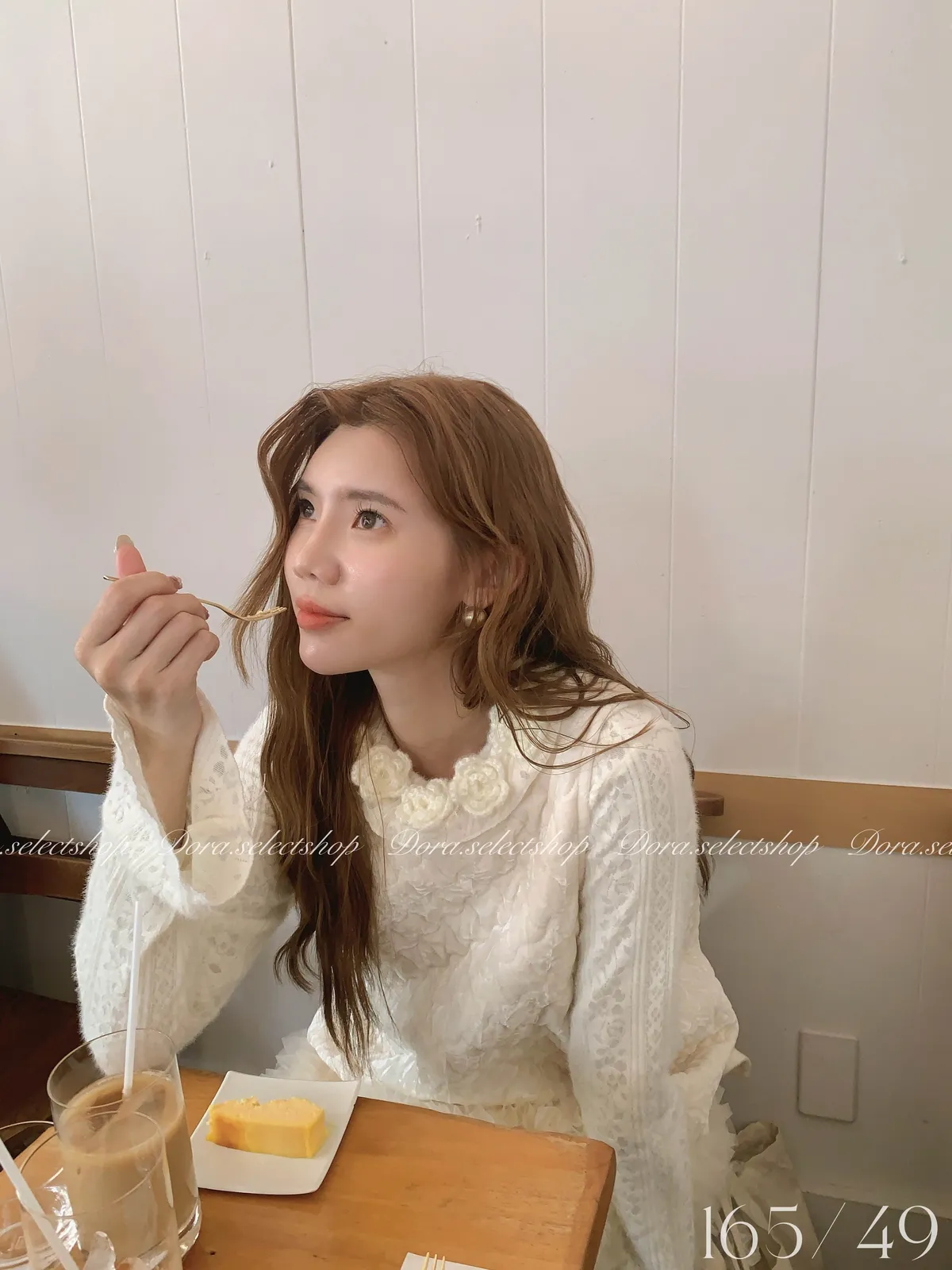 法式小公主菱格蕾絲拼接背心洋裝---米