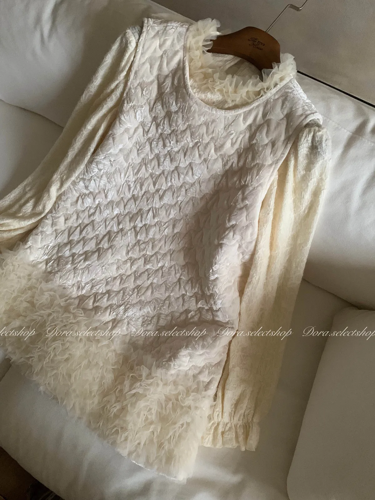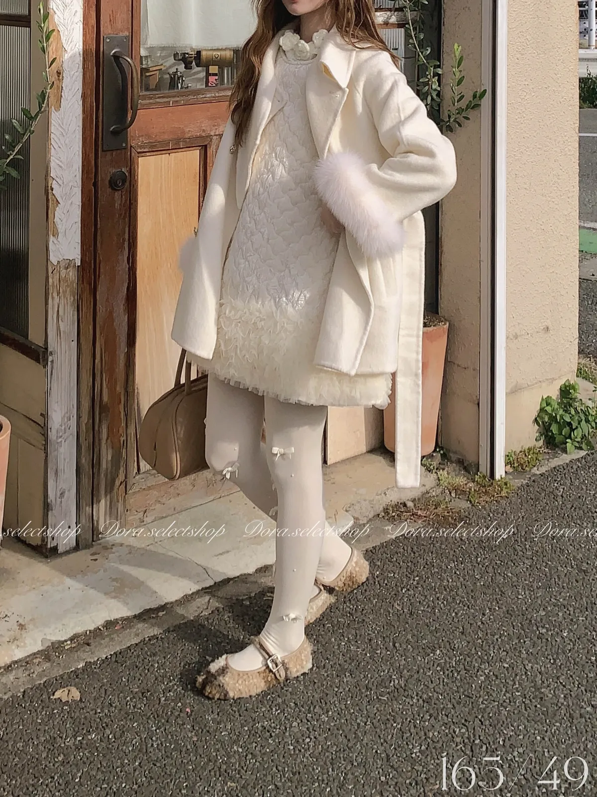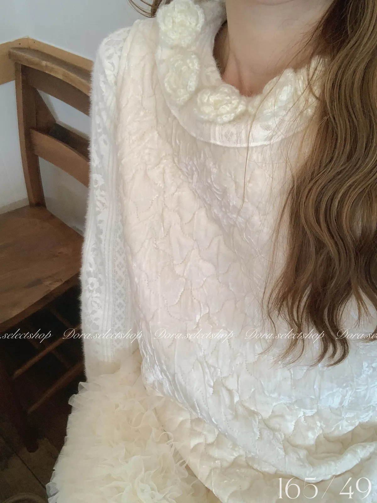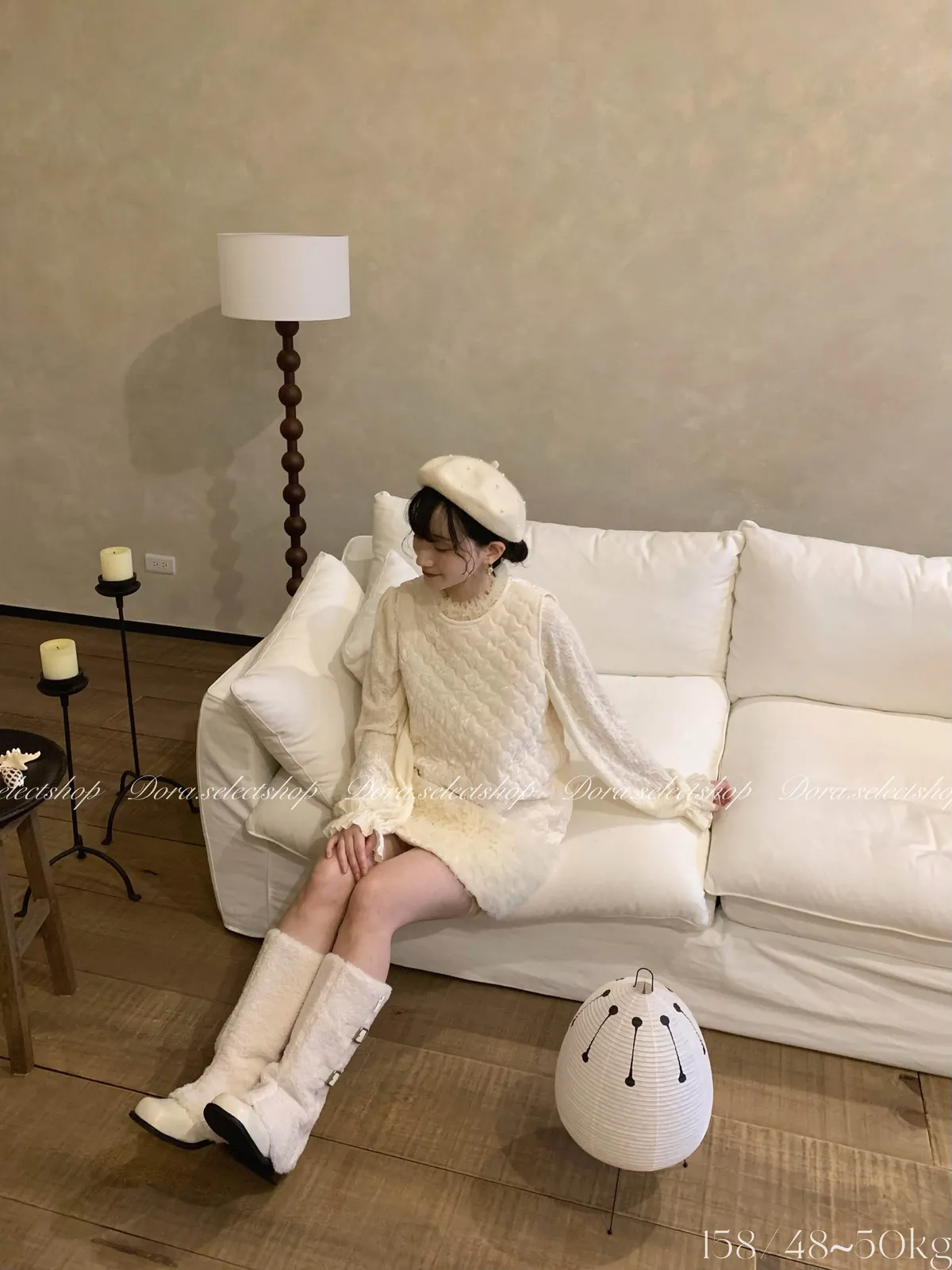 法式小公主菱格蕾絲拼接背心洋裝---米