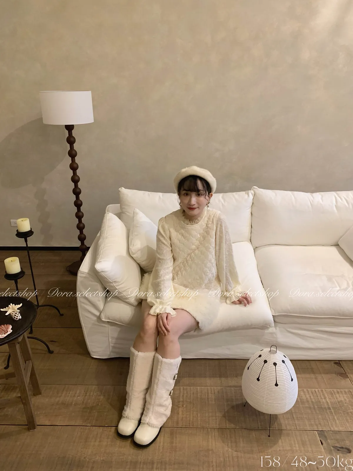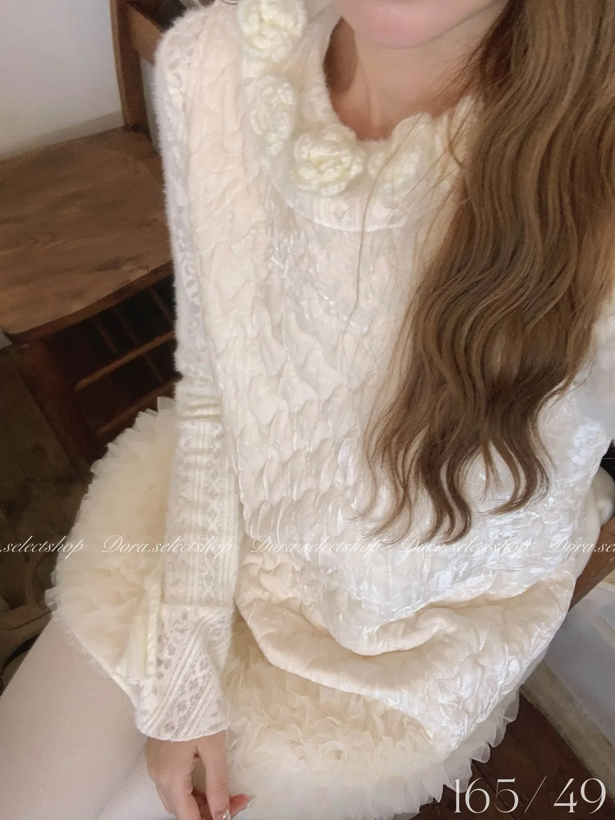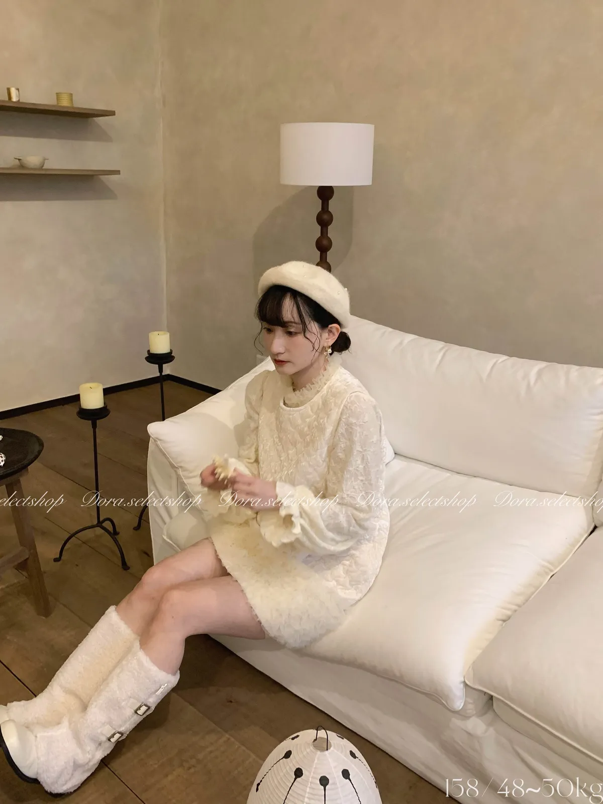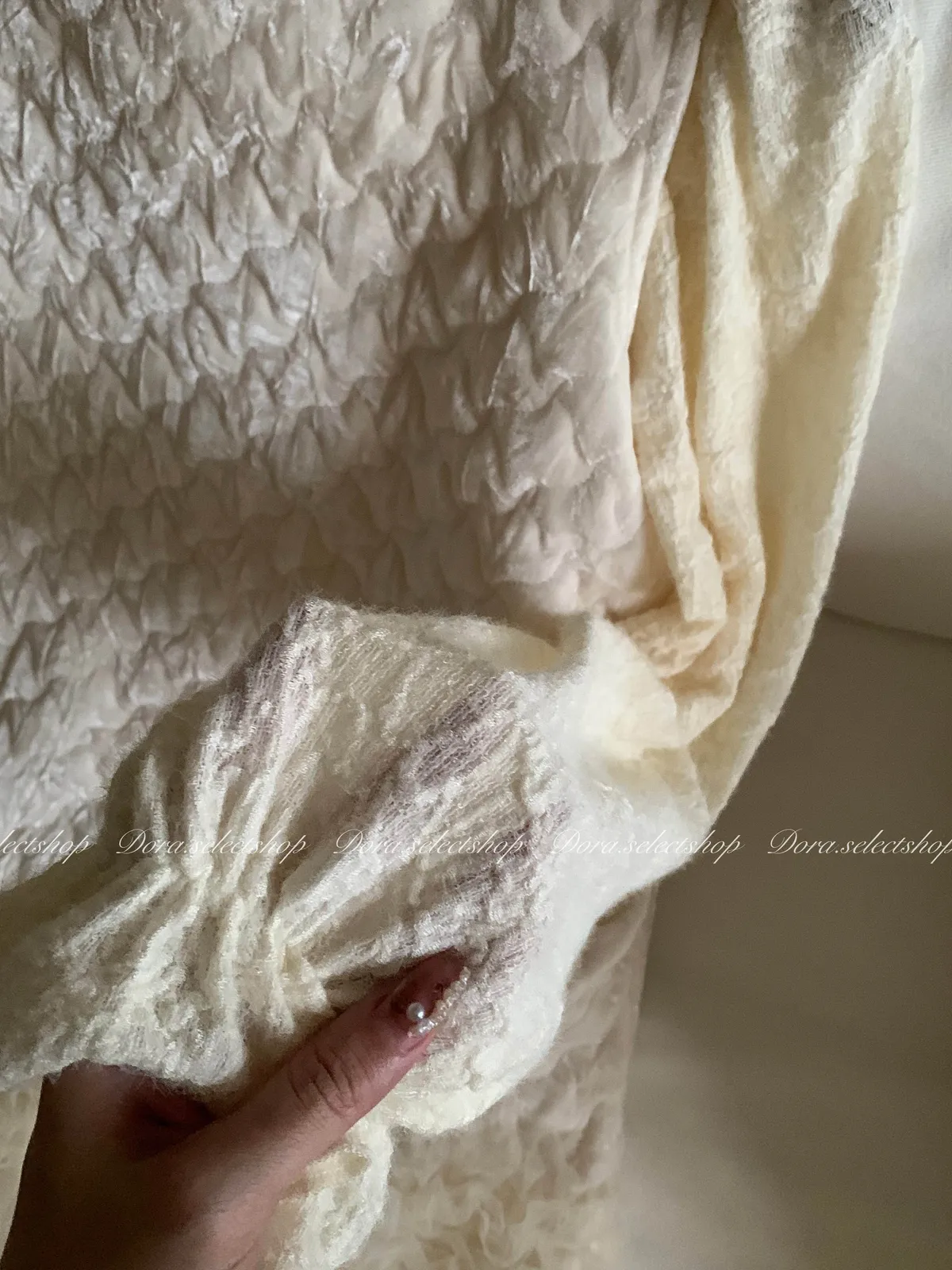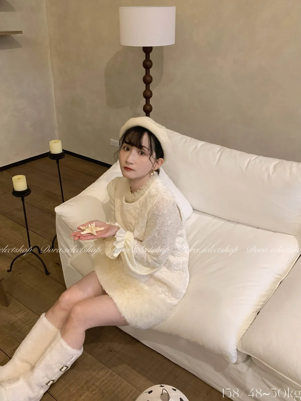 法式小公主菱格蕾絲拼接背心洋裝---米
