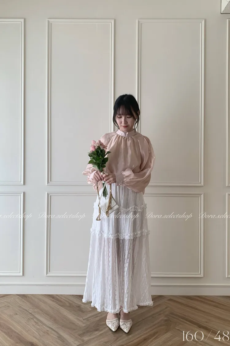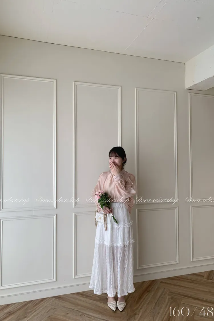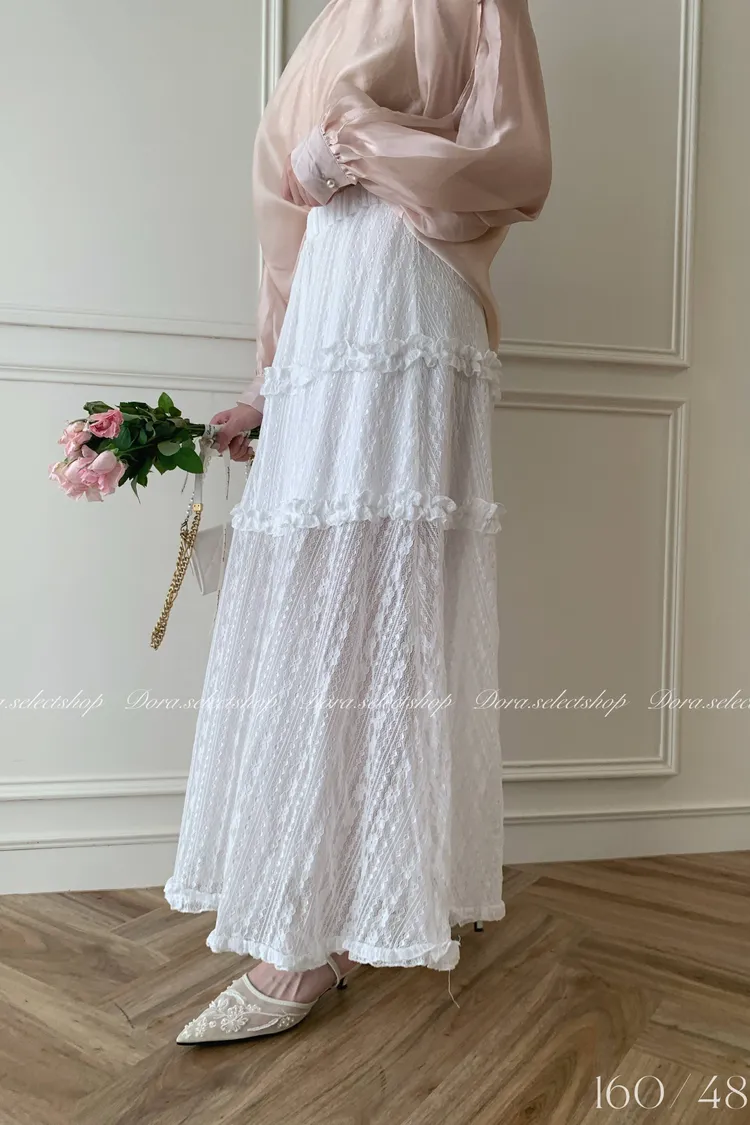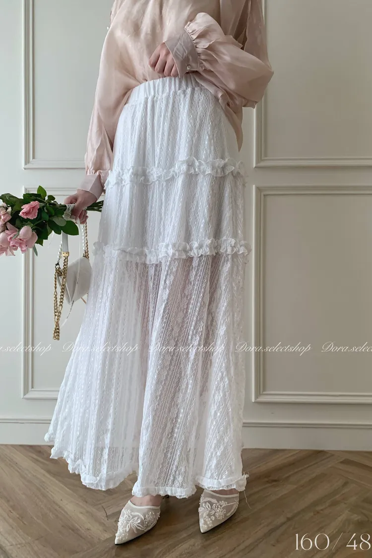 浪漫蕾絲蛋糕透肌感長裙---白