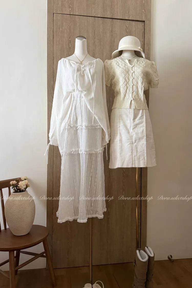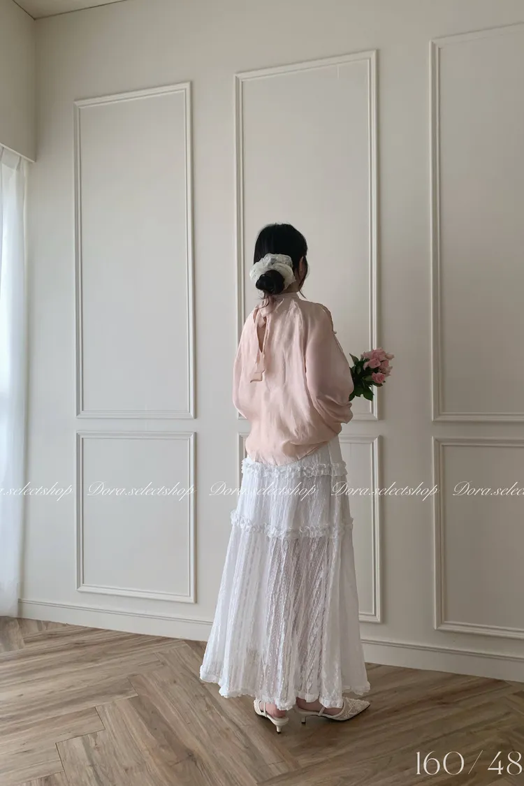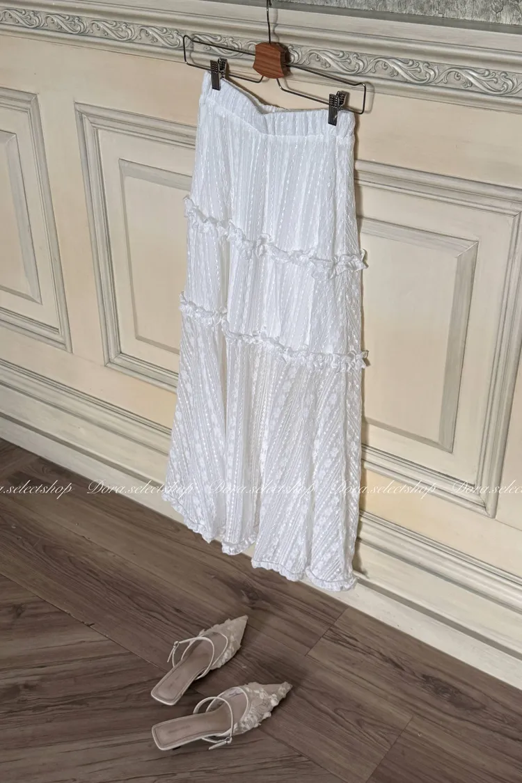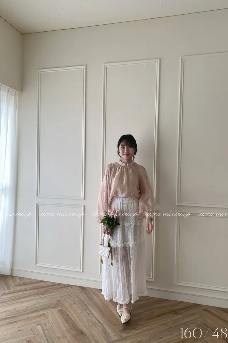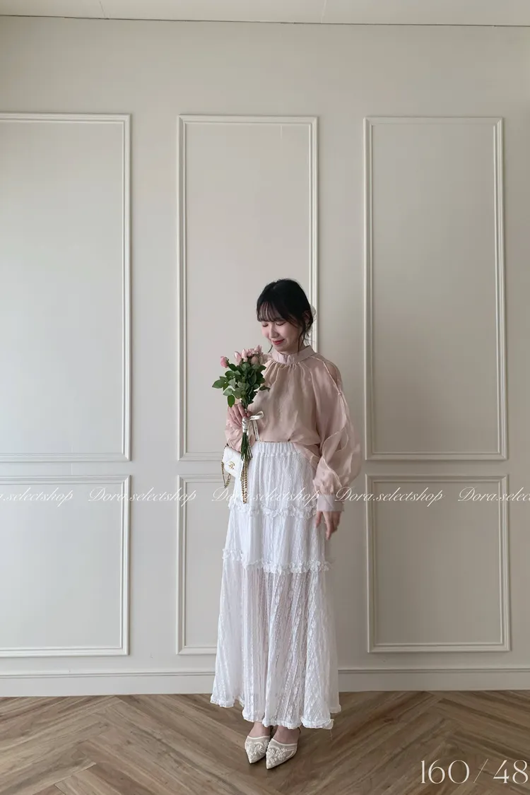 浪漫蕾絲蛋糕透肌感長裙---白