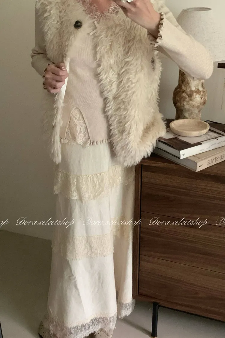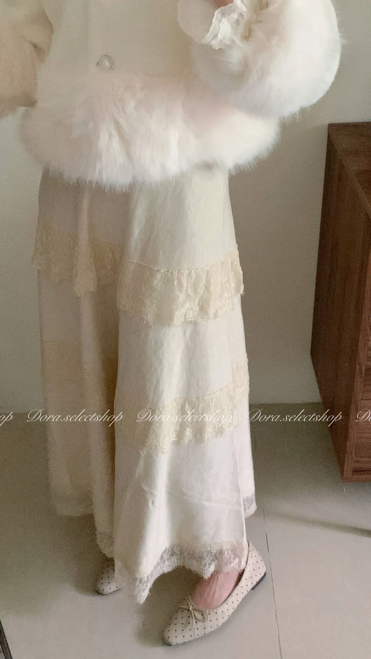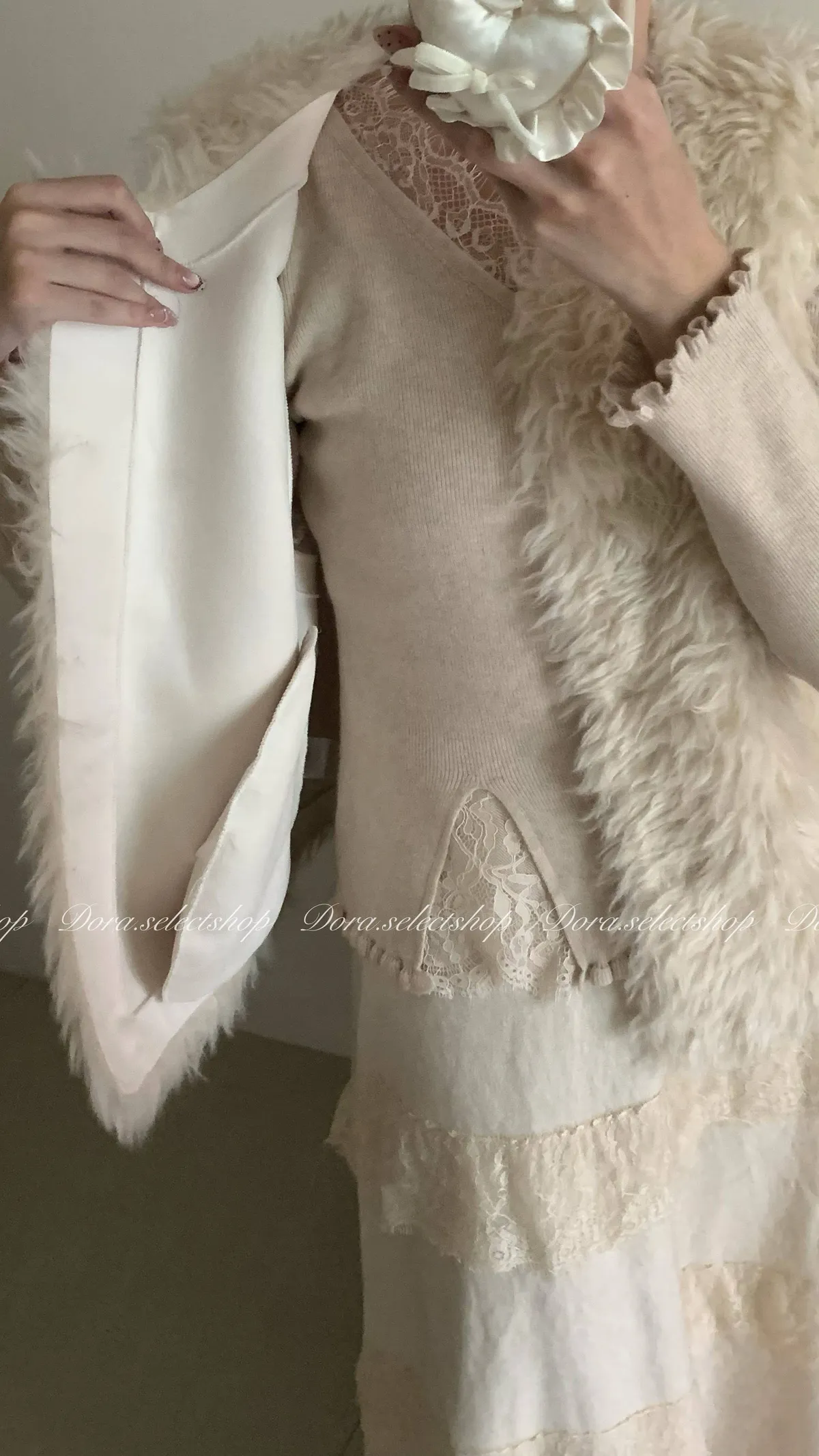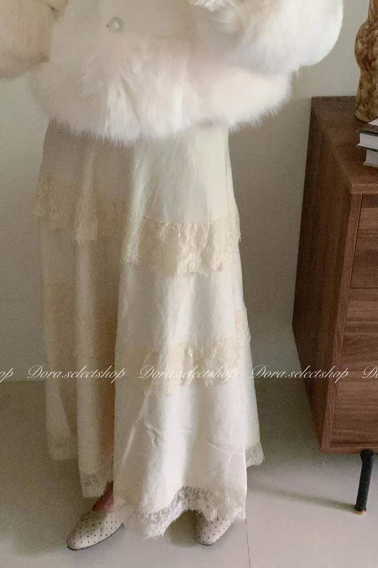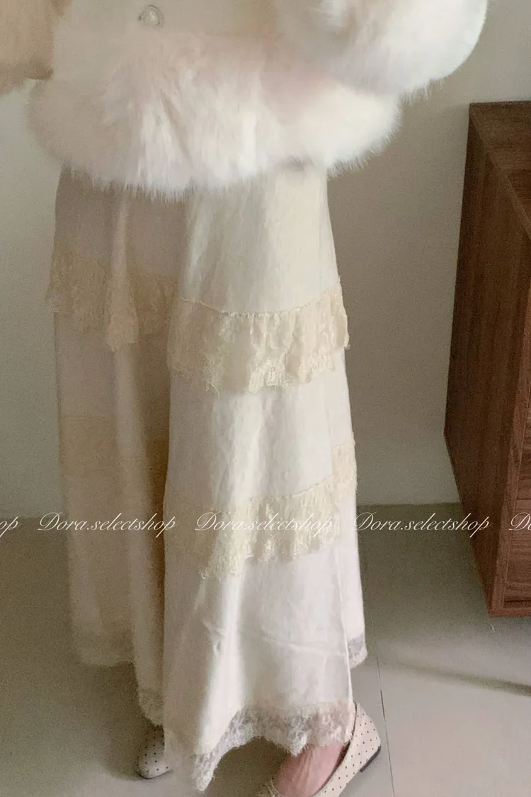 親膚柔軟睫毛蕾絲針織傘裙---米
