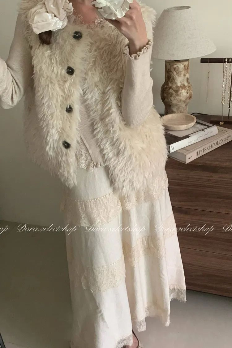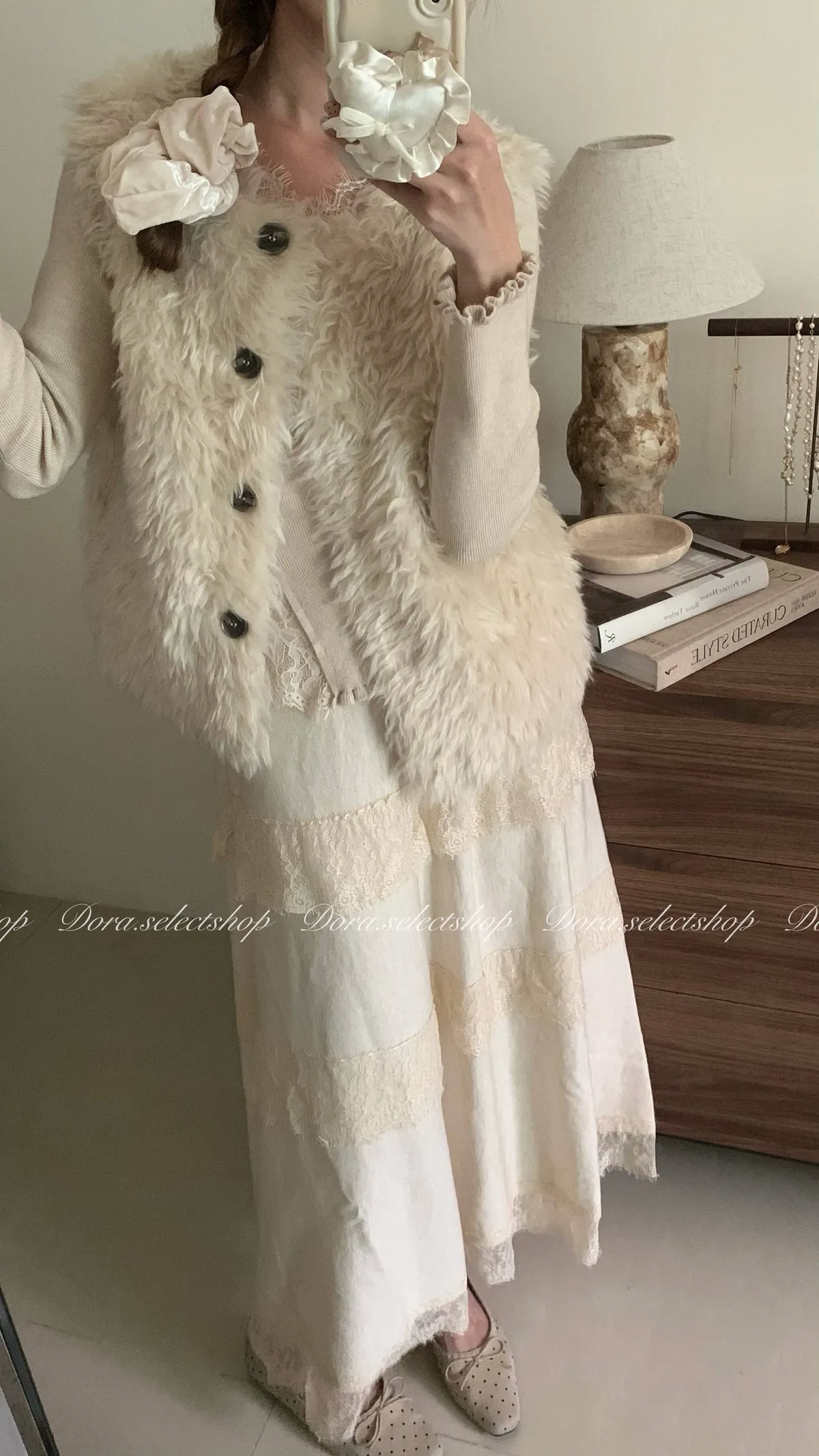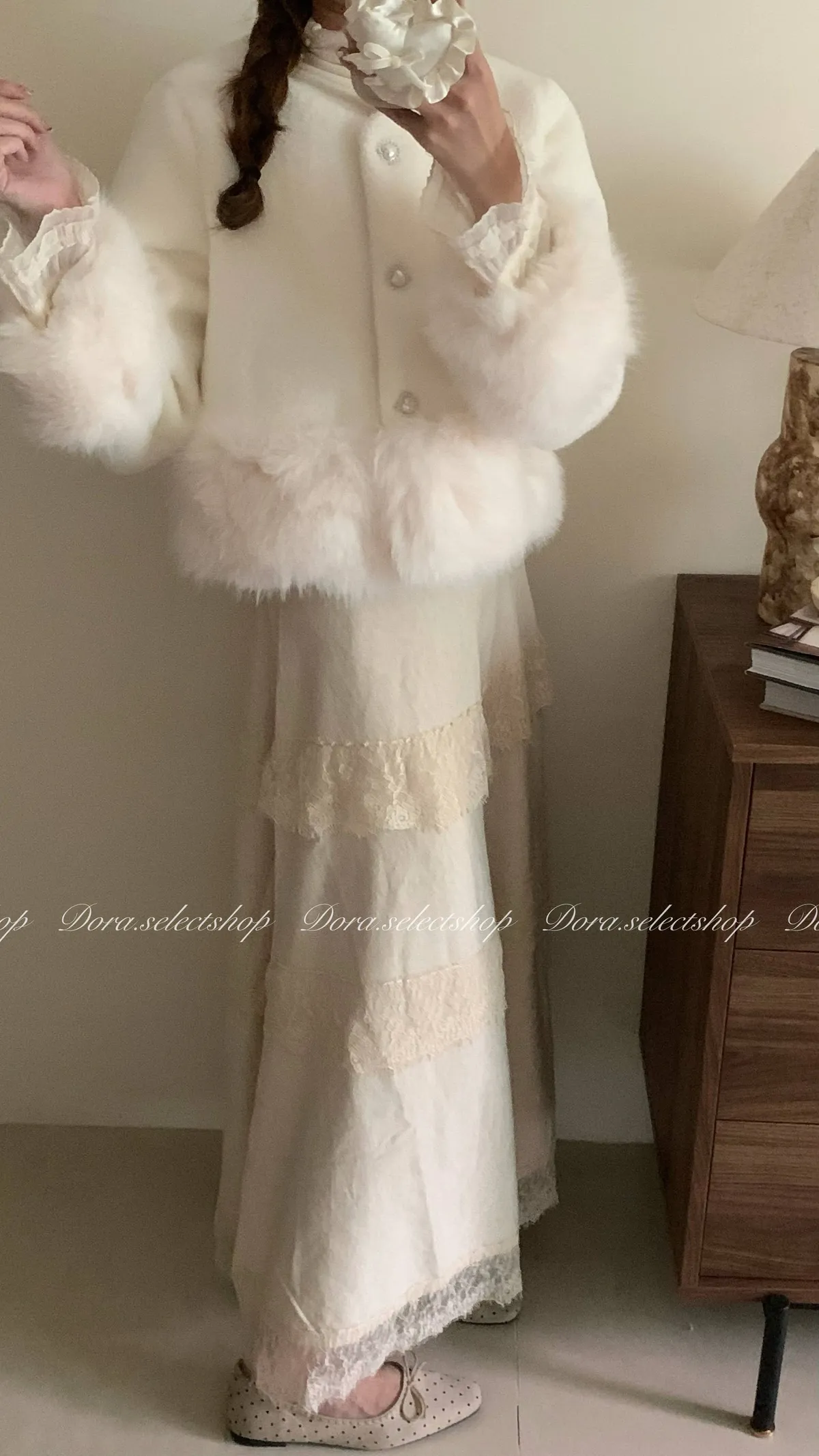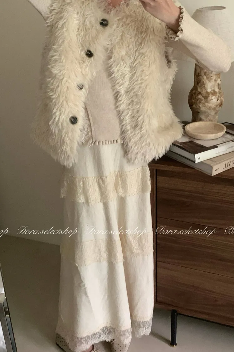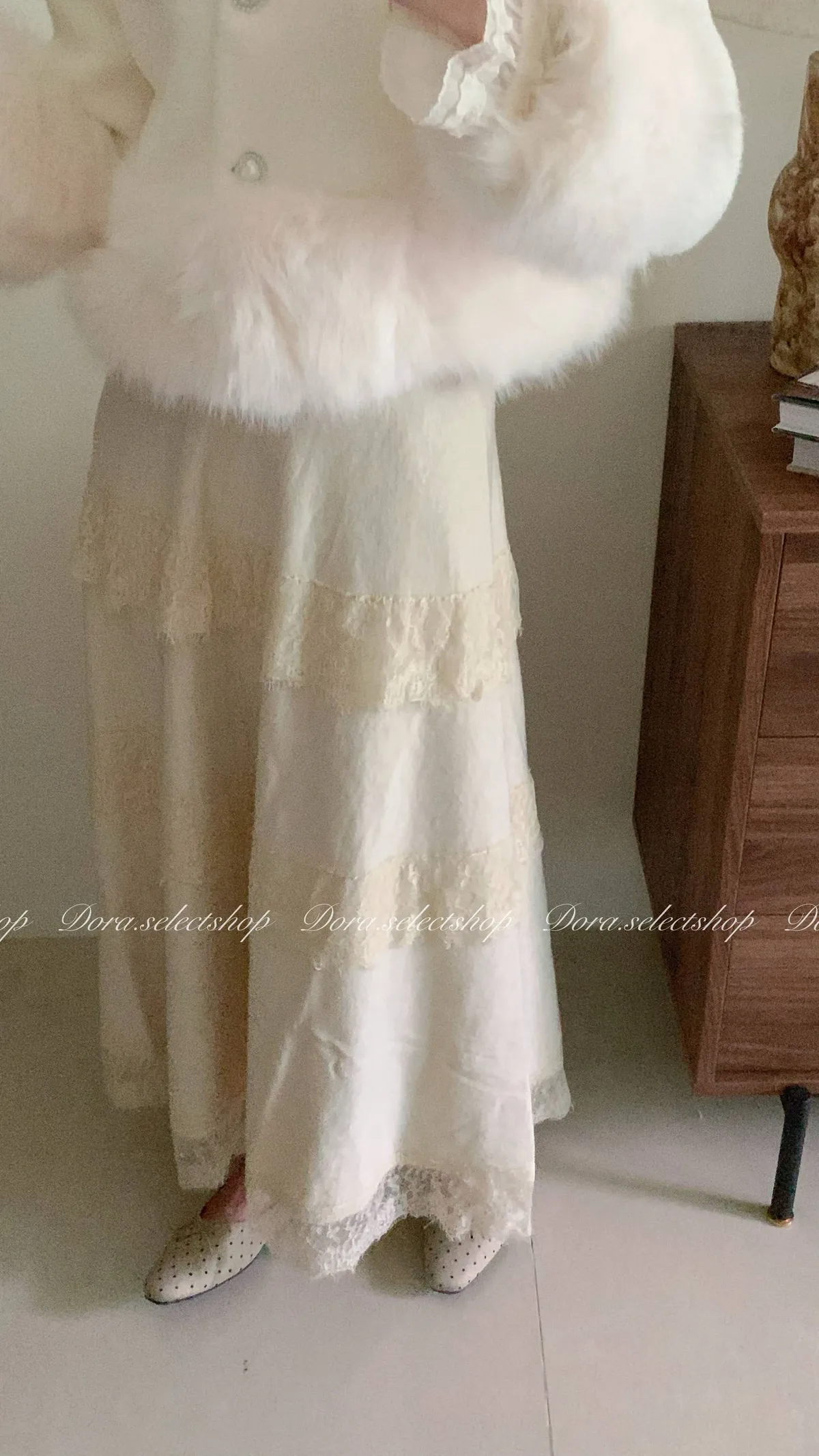 親膚柔軟睫毛蕾絲針織傘裙---米