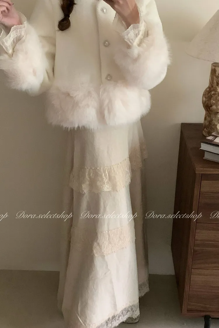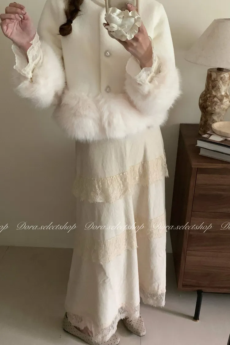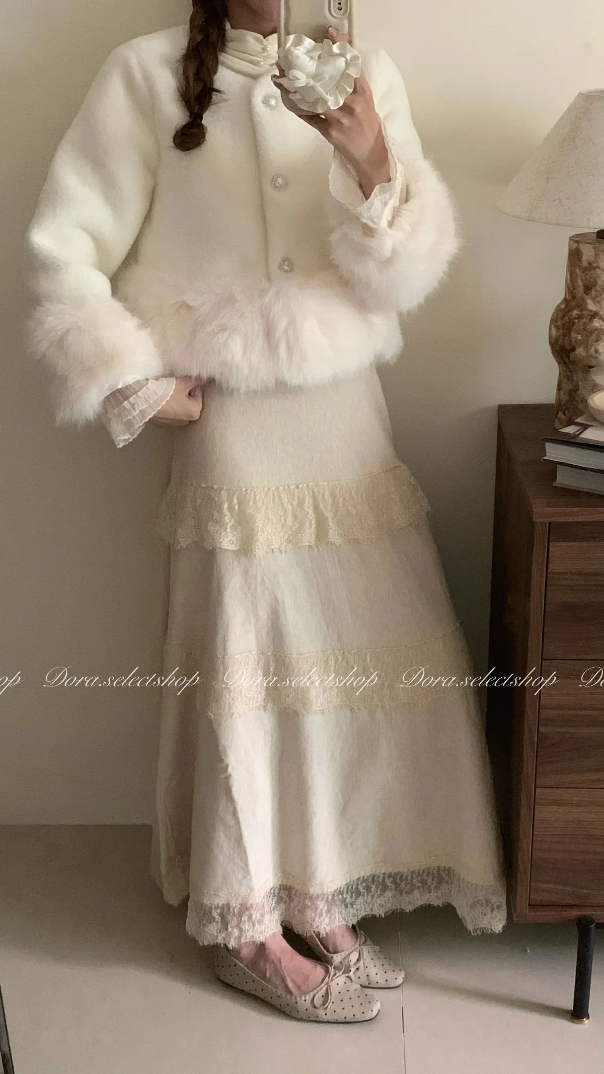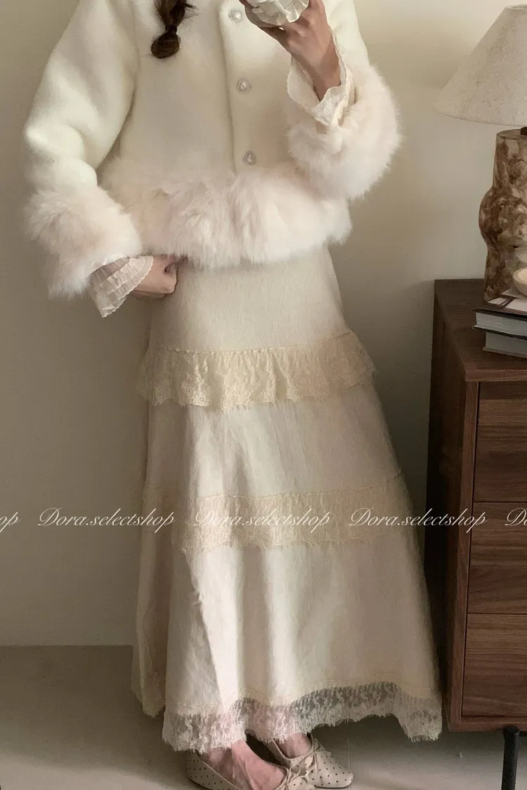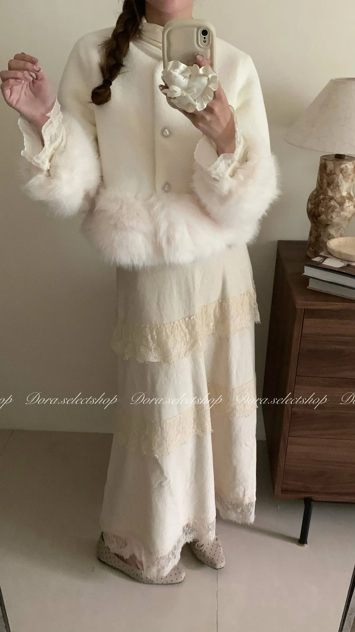親膚柔軟睫毛蕾絲針織傘裙---米
