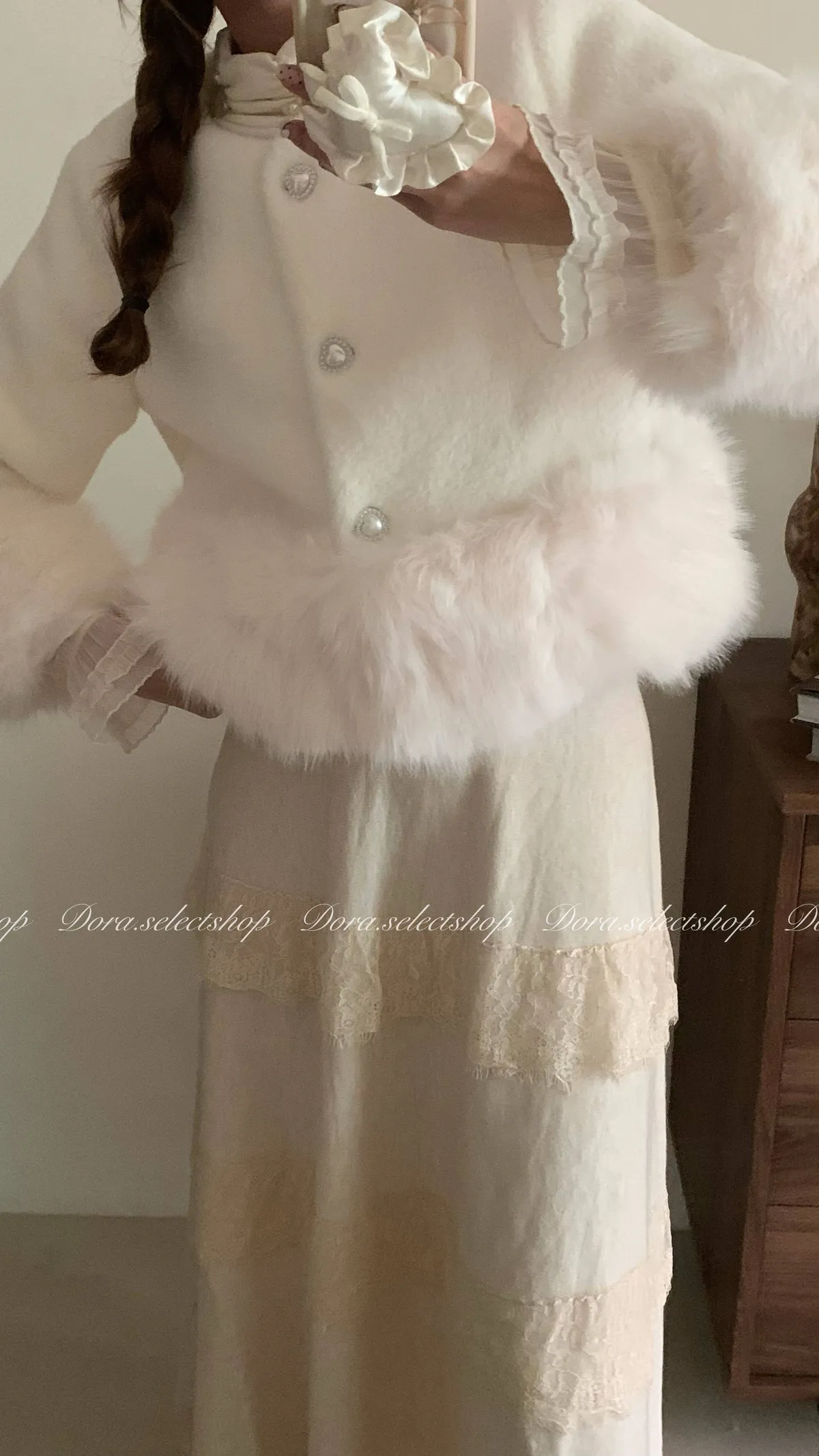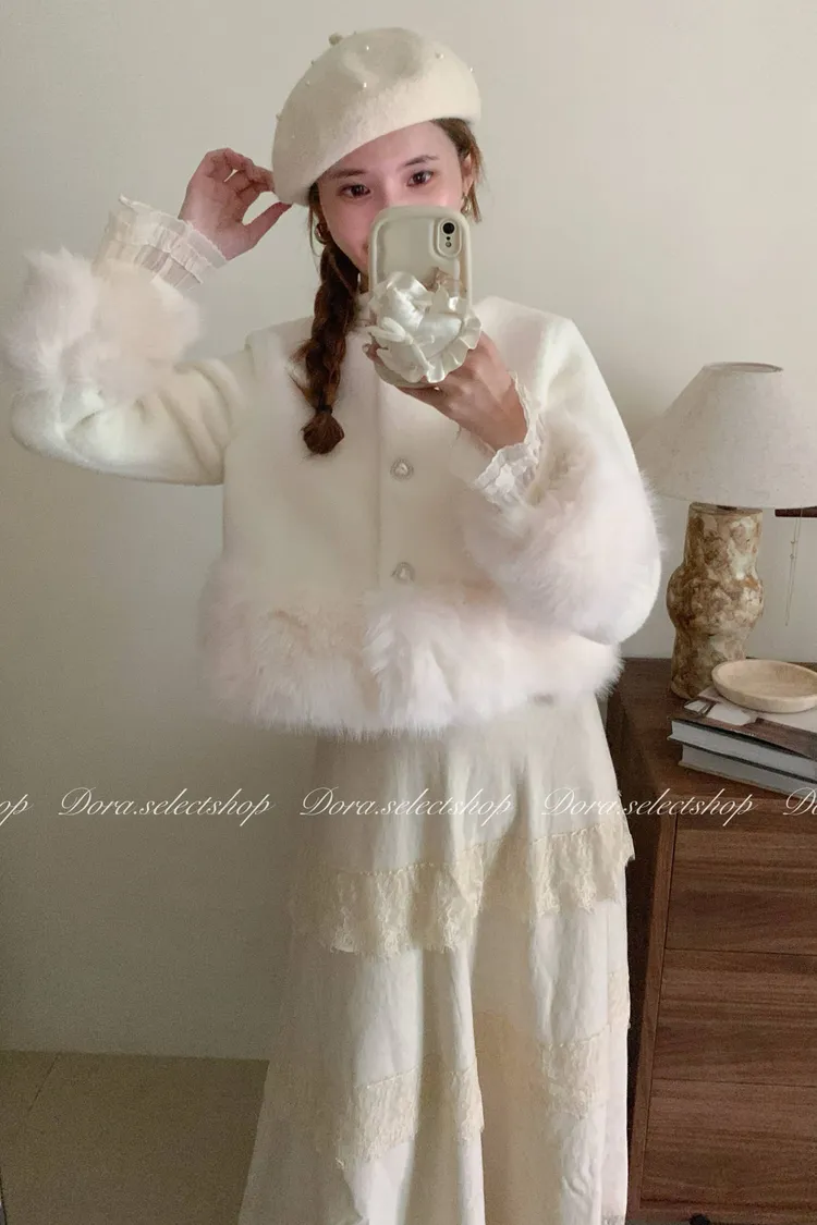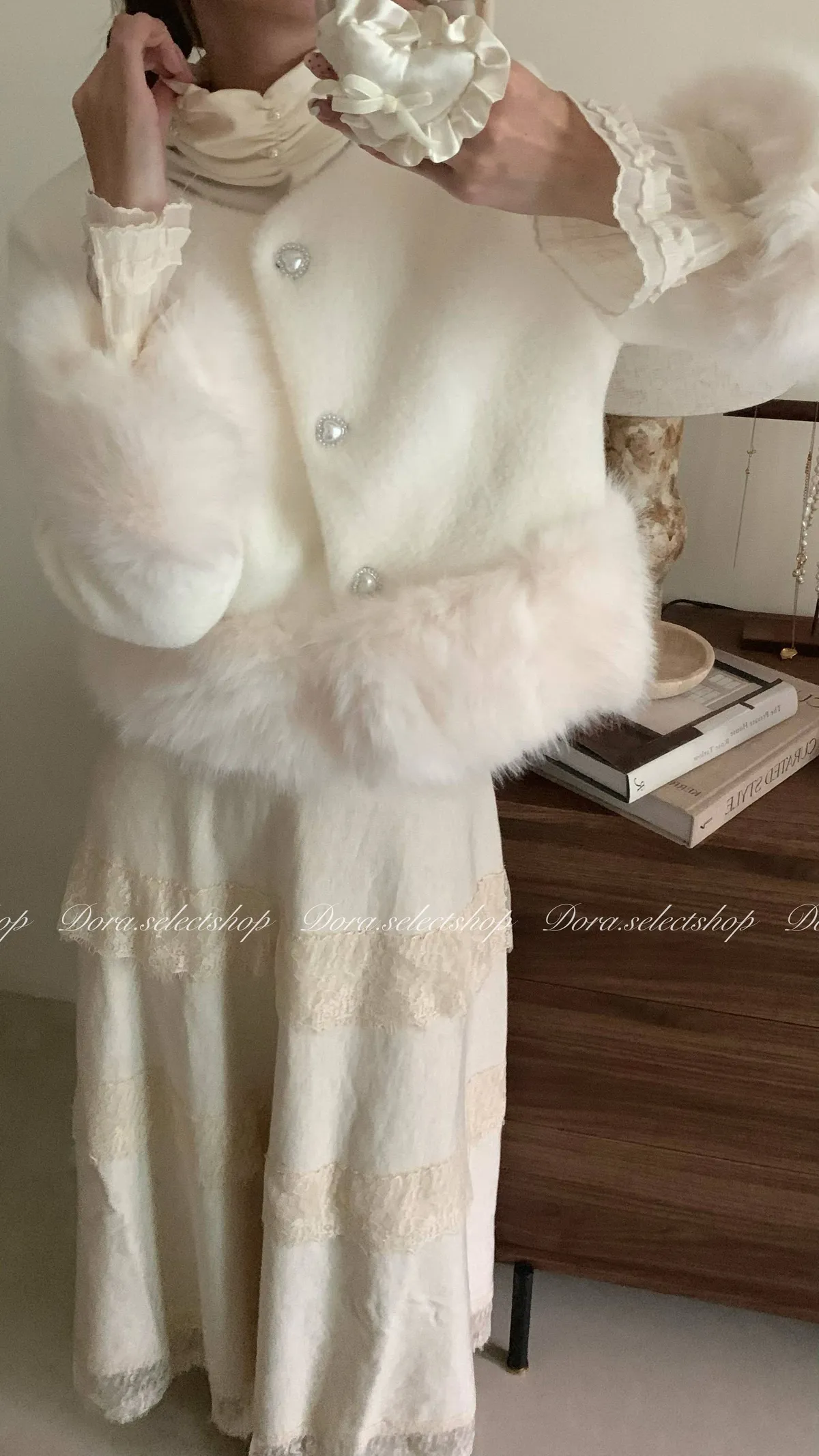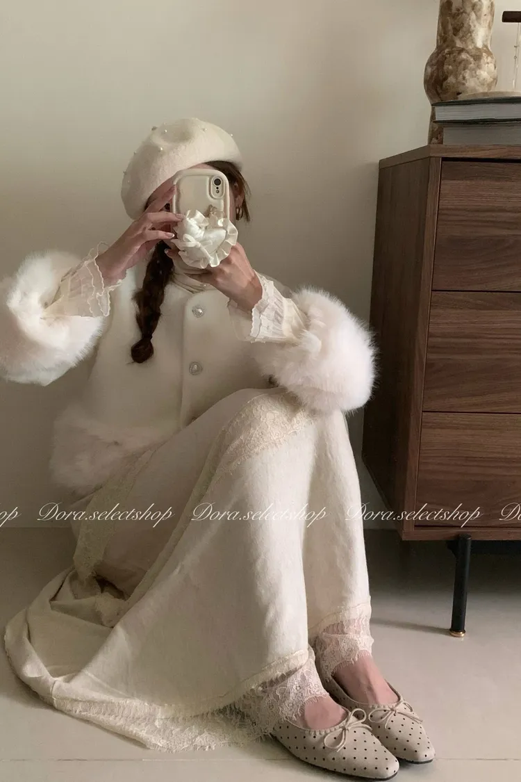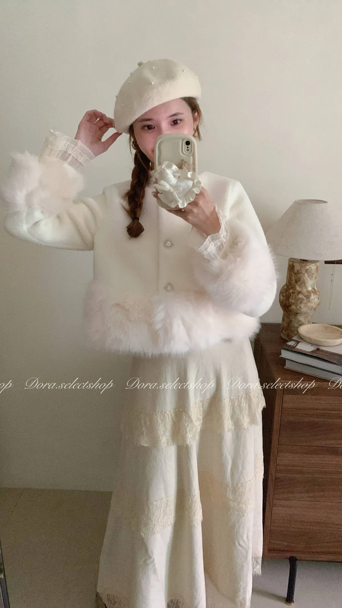 親膚柔軟睫毛蕾絲針織傘裙---米