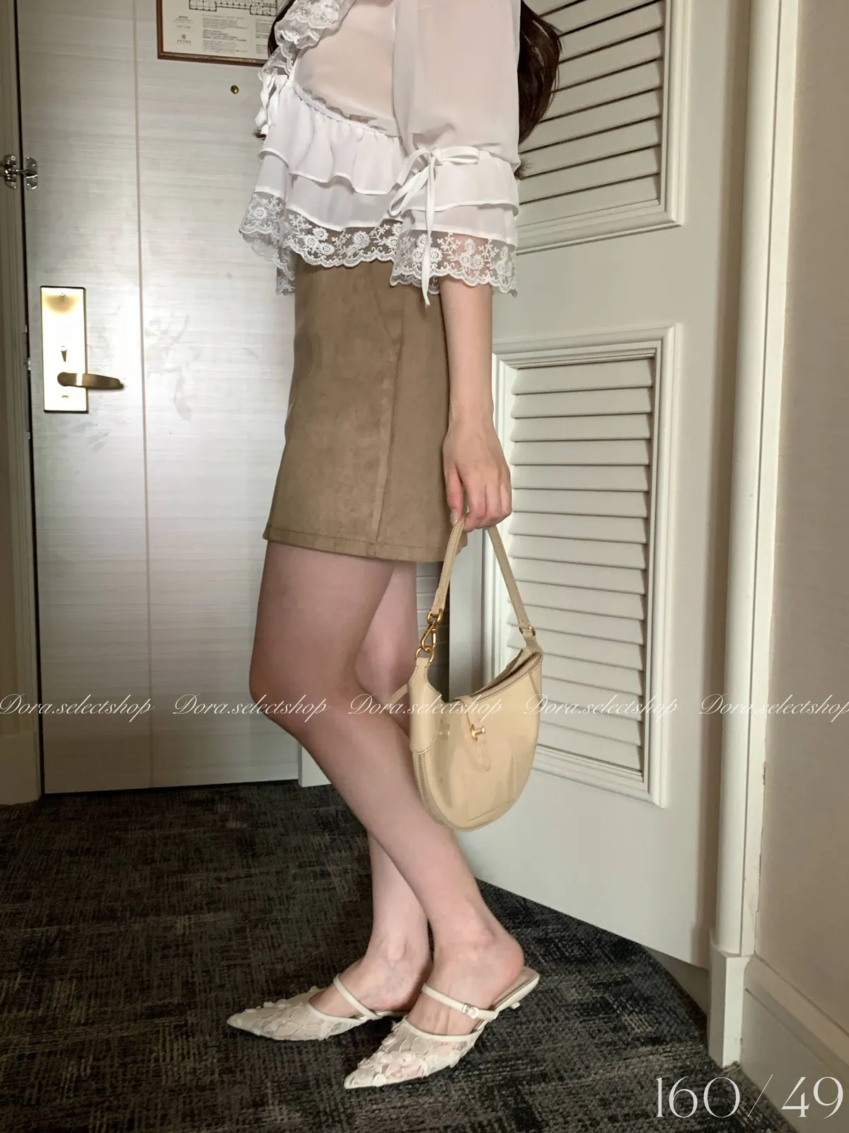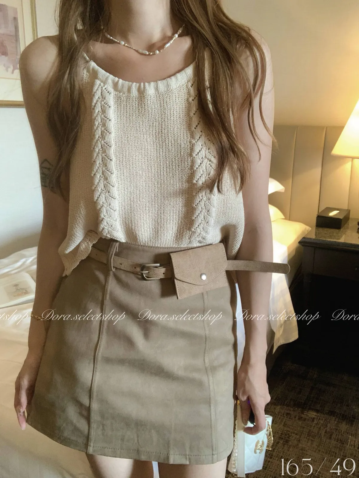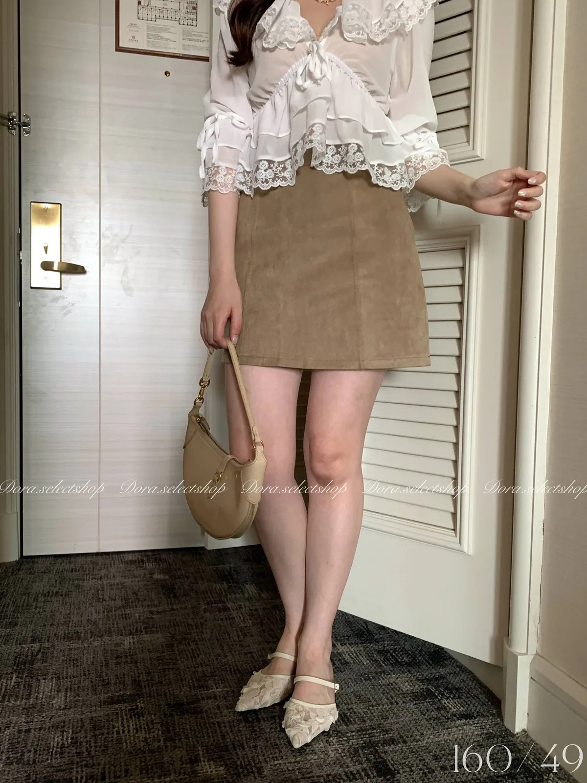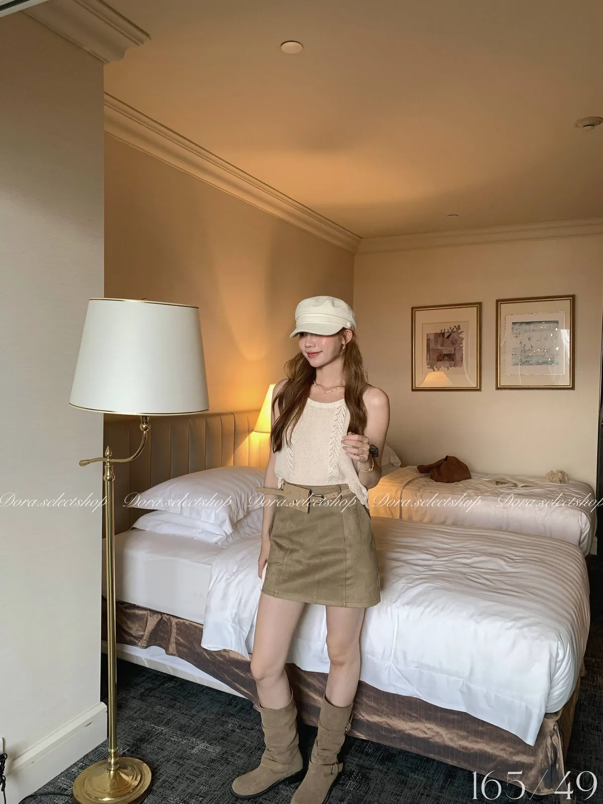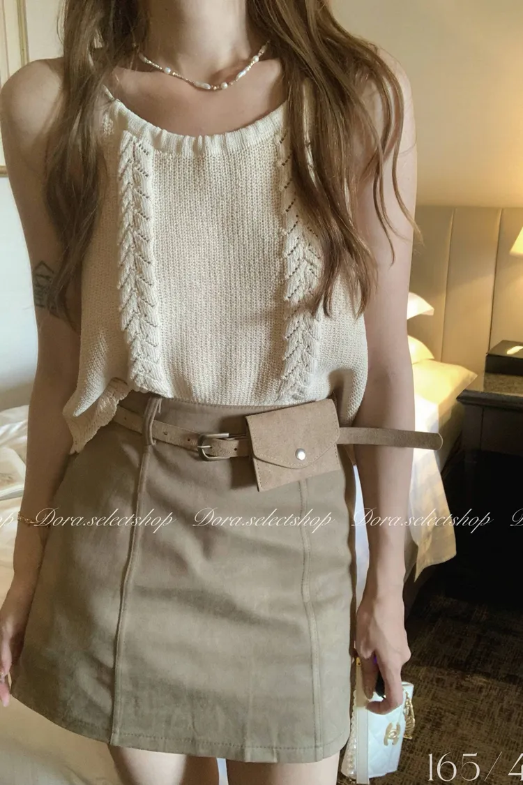麂皮率性修身短裙(附安全褲、皮帶小腰包)---淺卡其