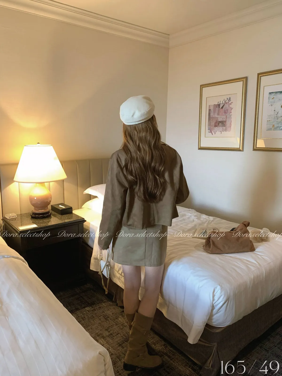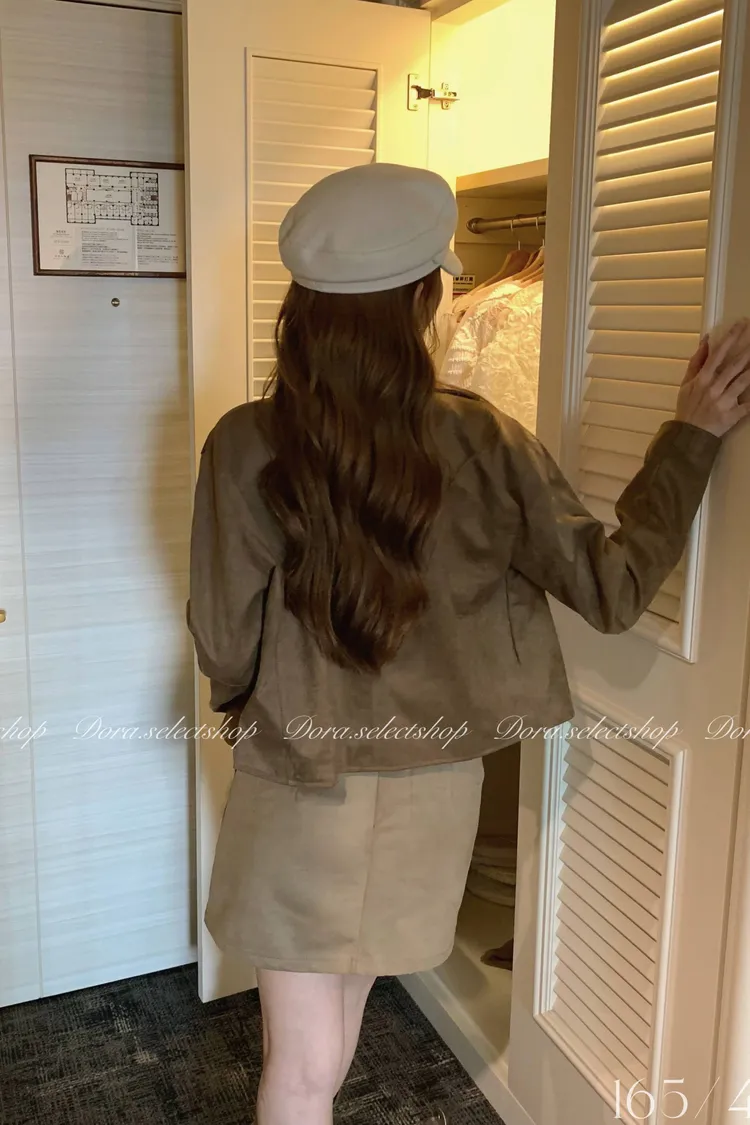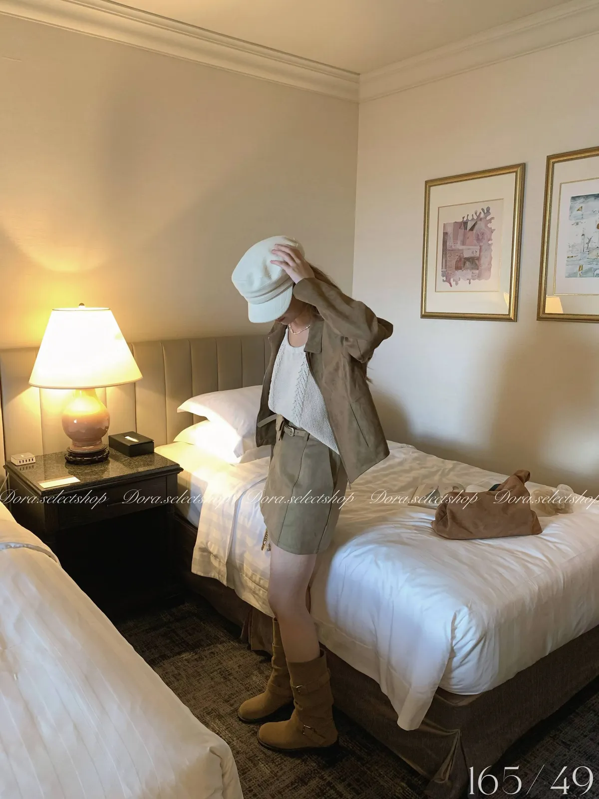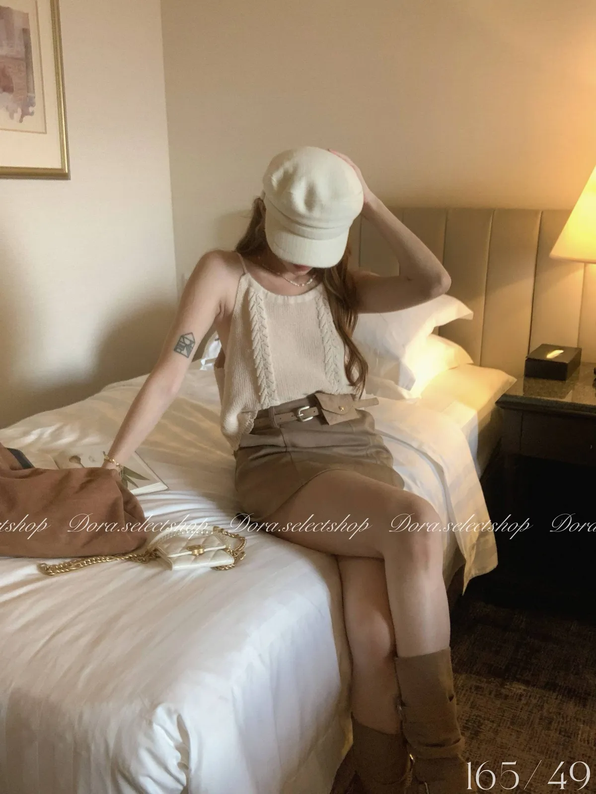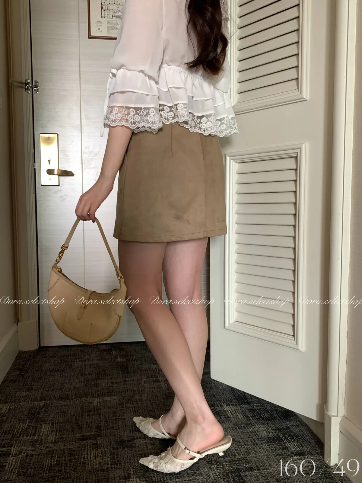 麂皮率性修身短裙(附安全褲、皮帶小腰包)---淺卡其