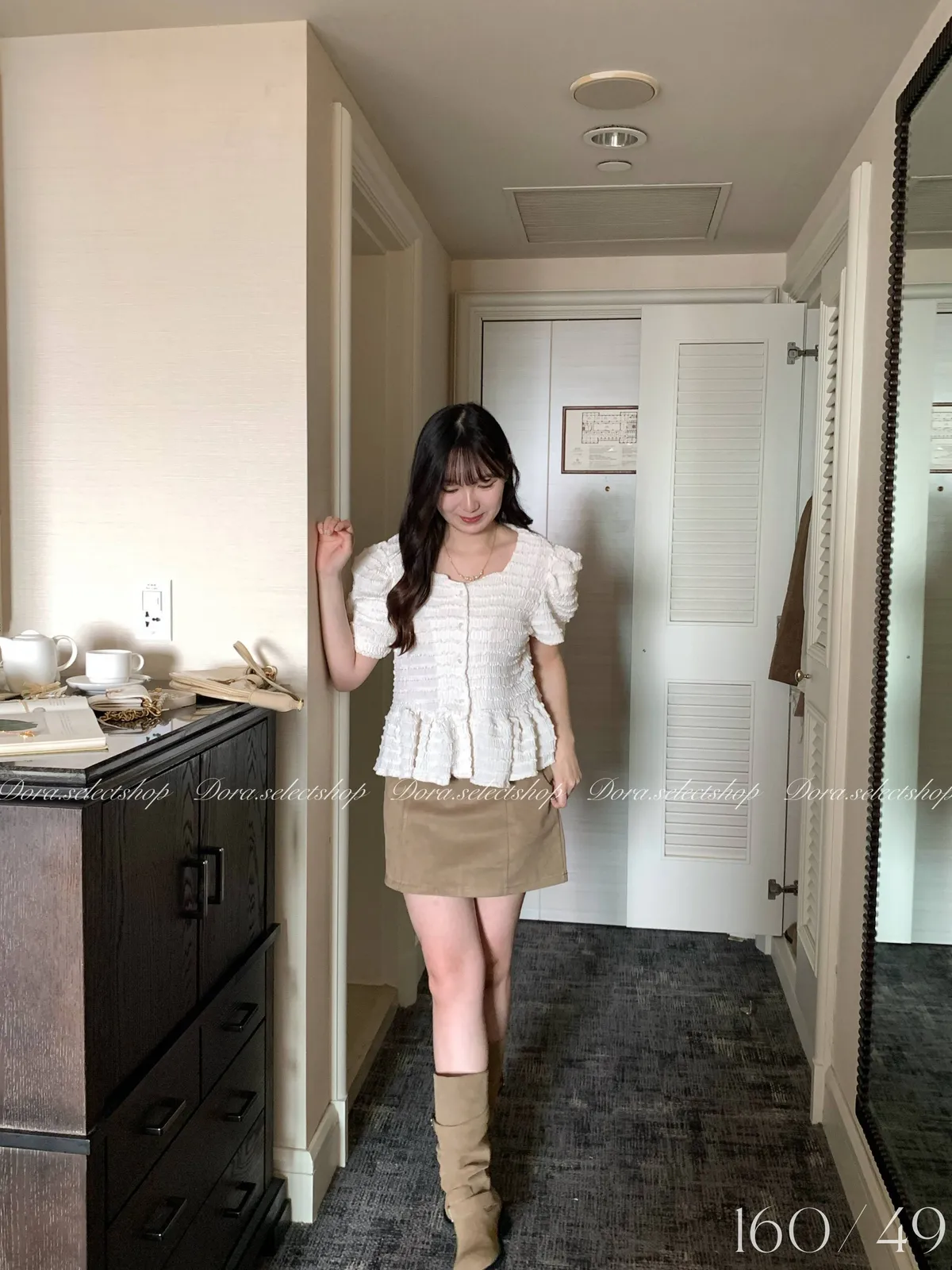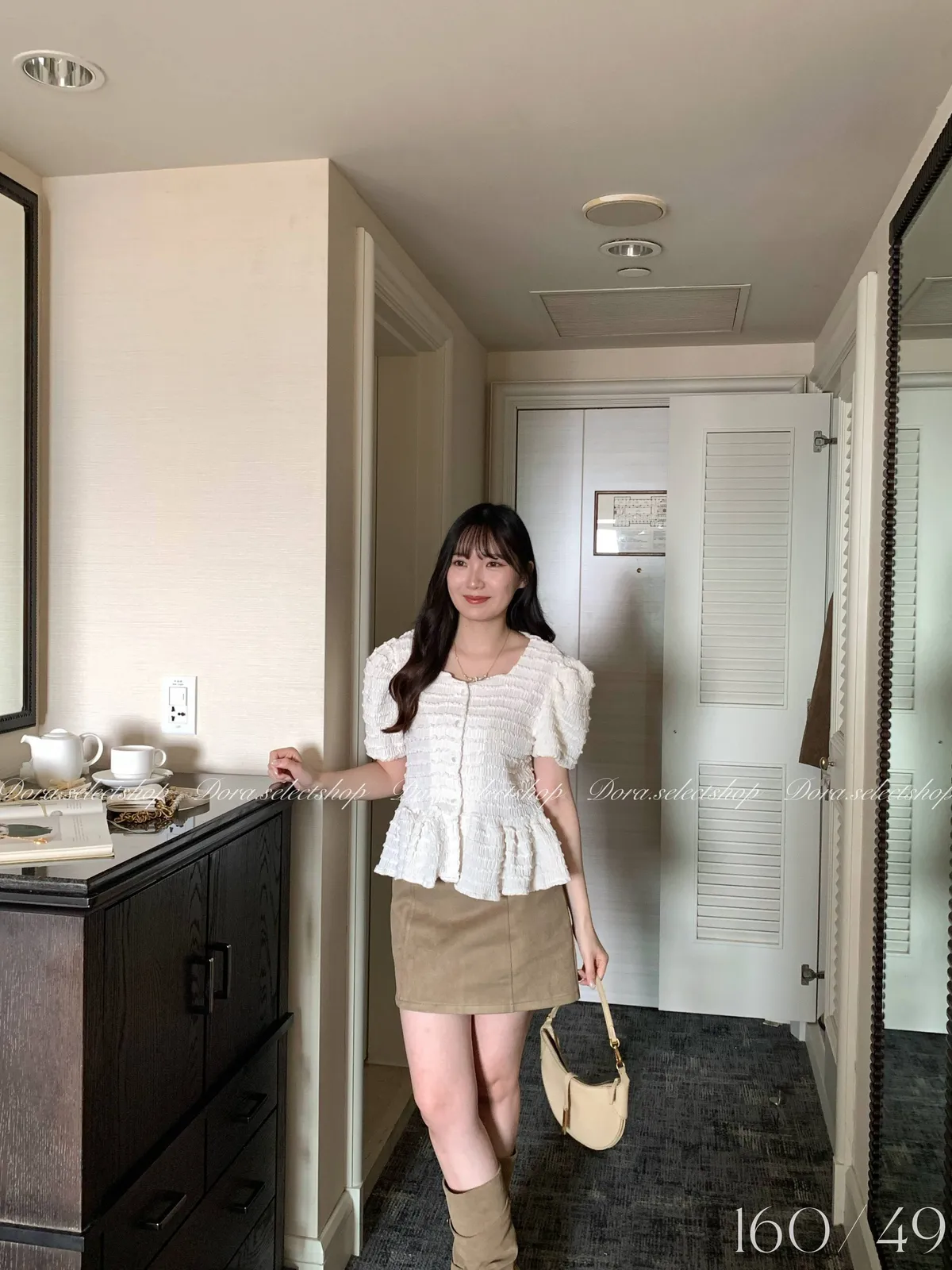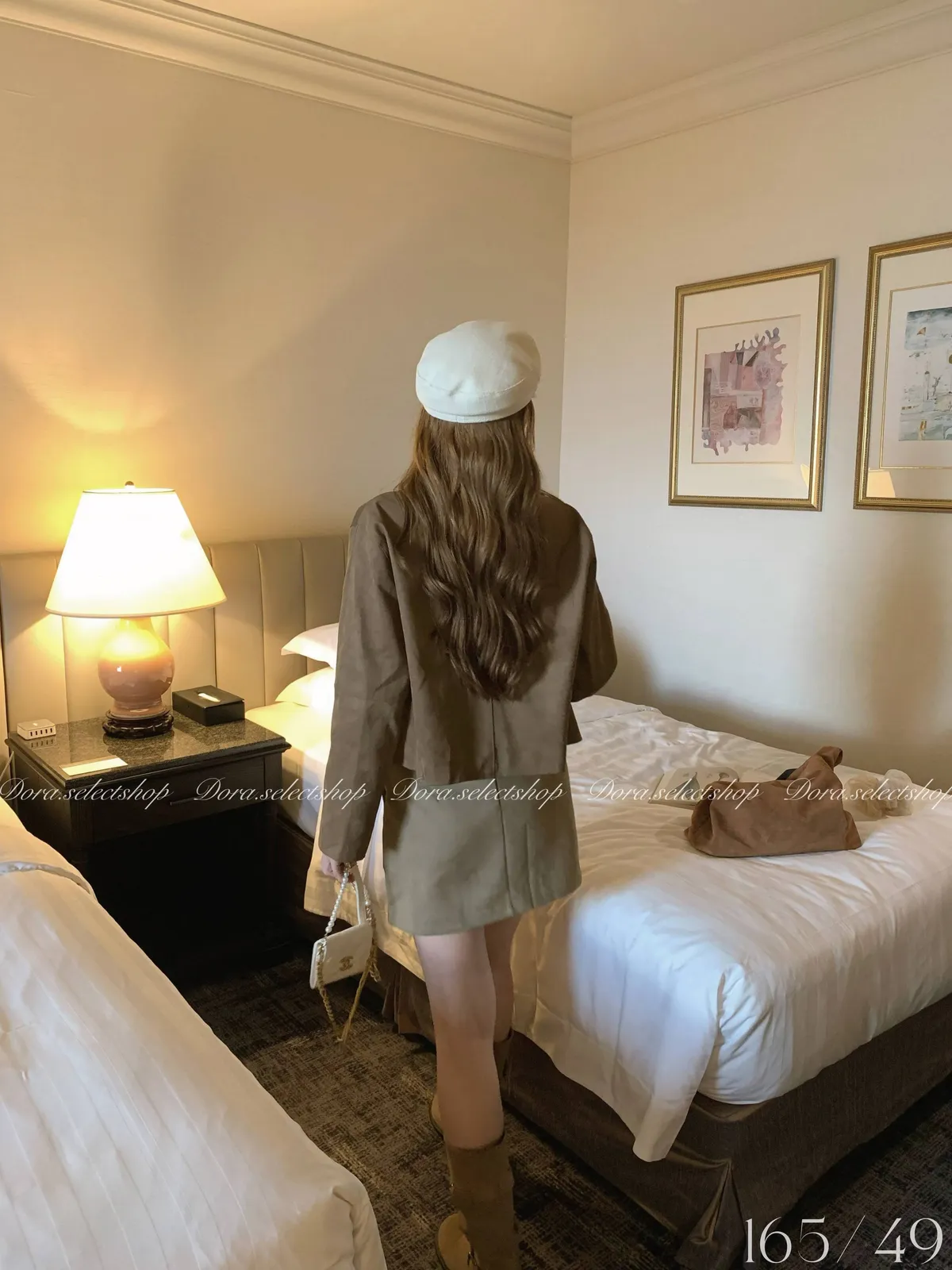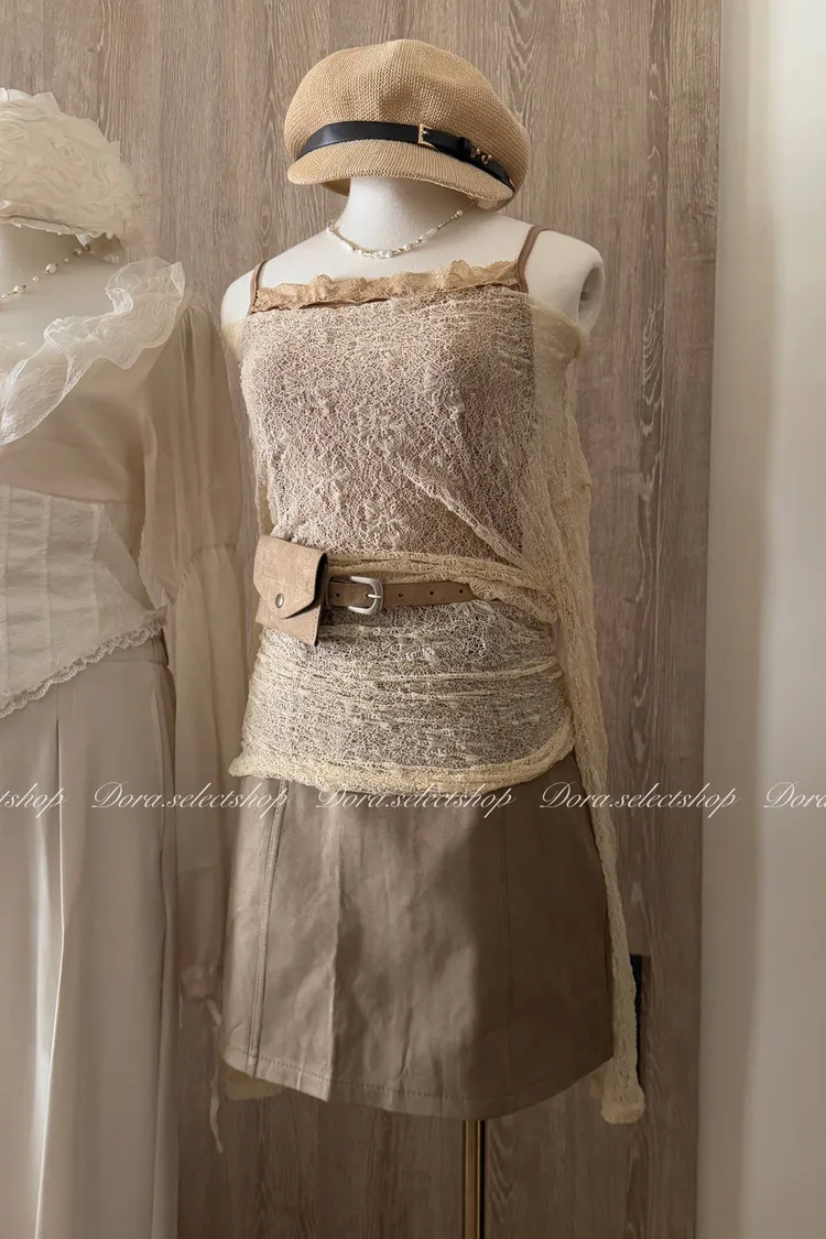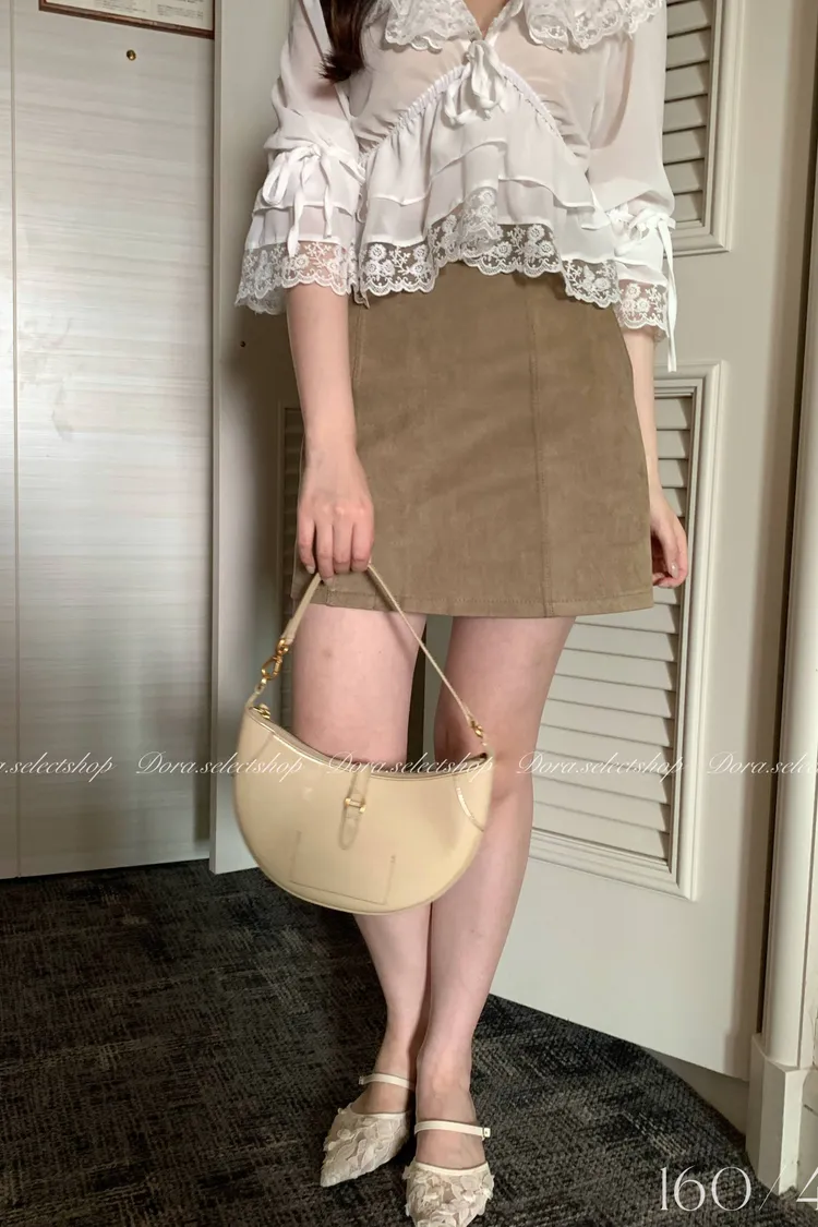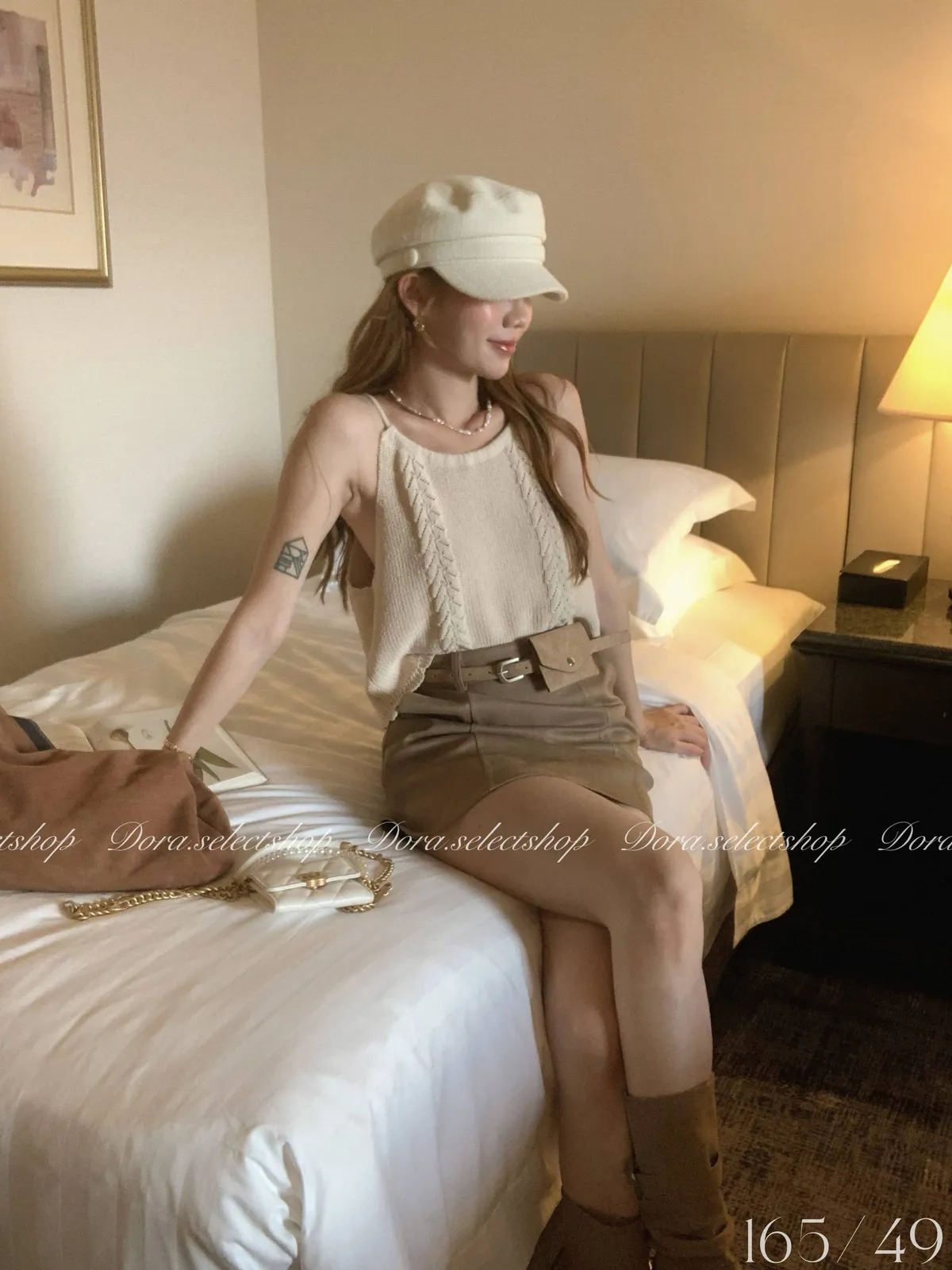 麂皮率性修身短裙(附安全褲、皮帶小腰包)---淺卡其
