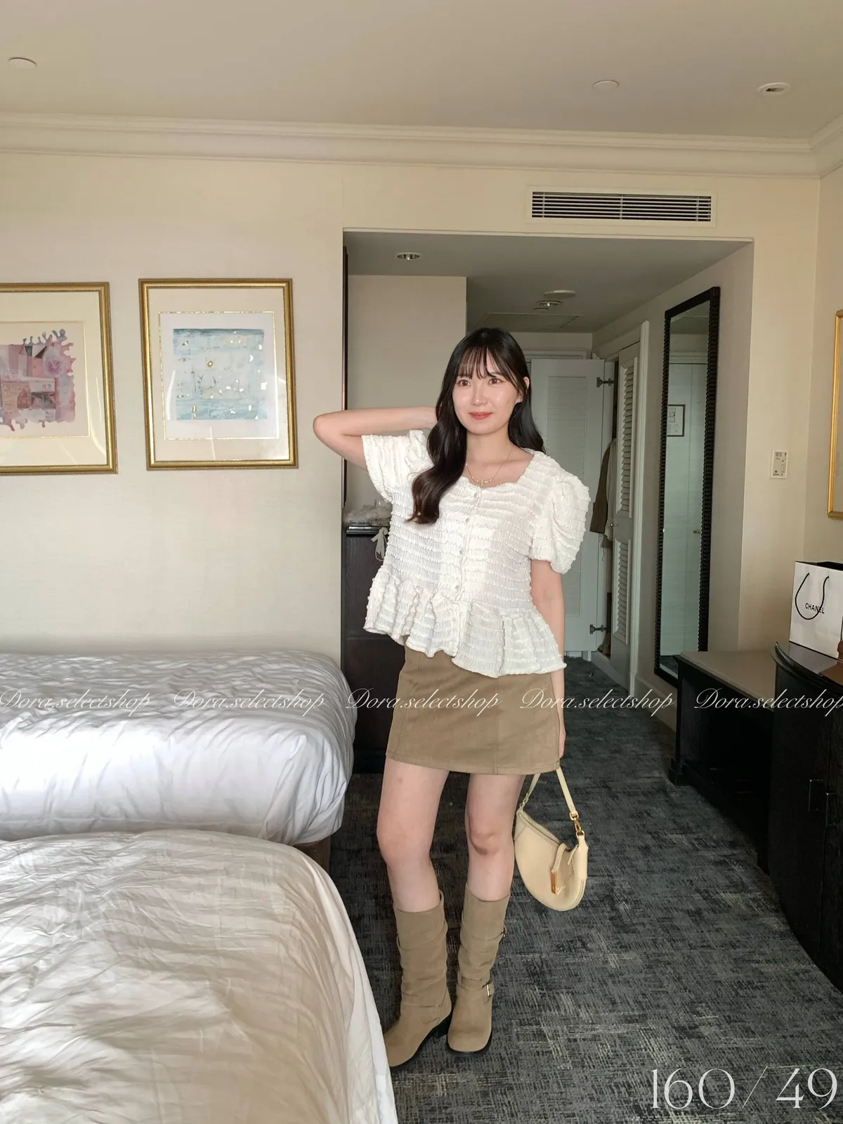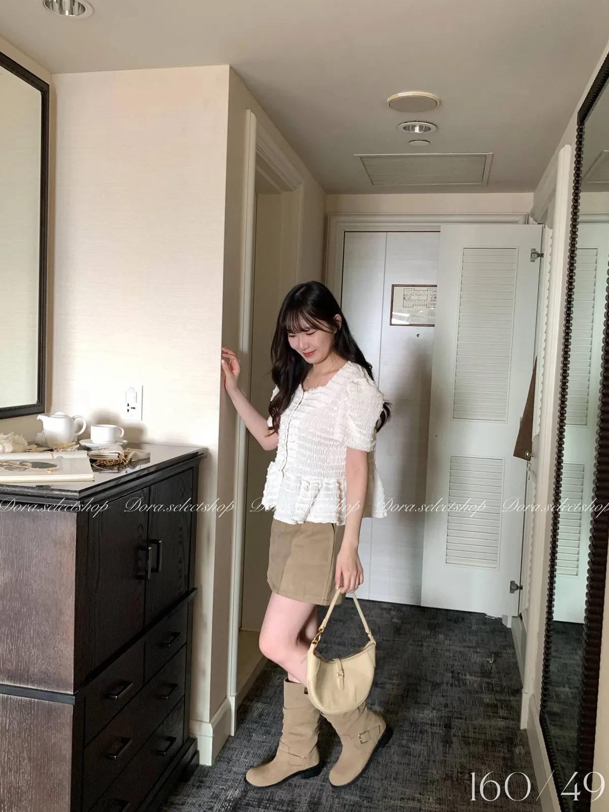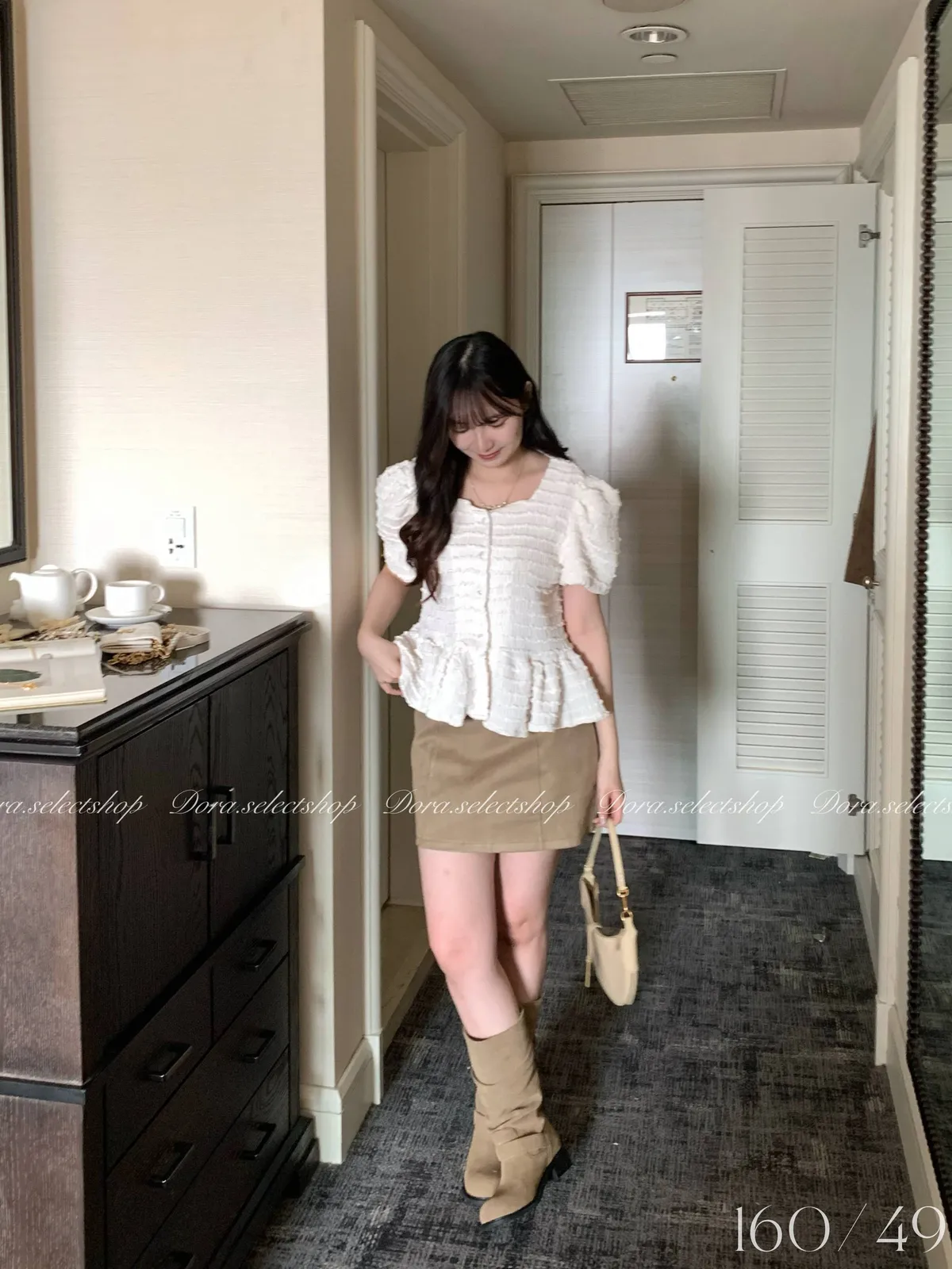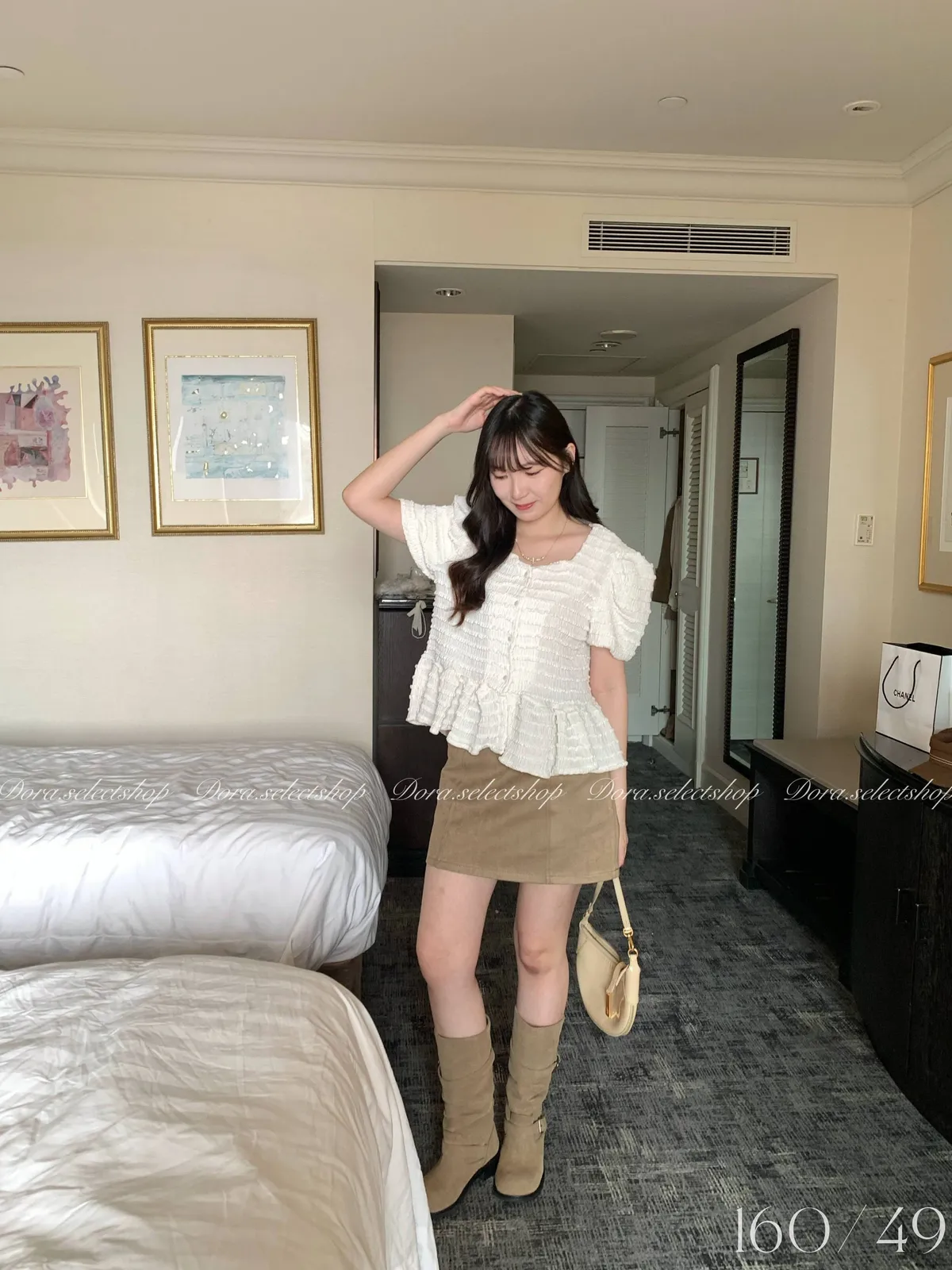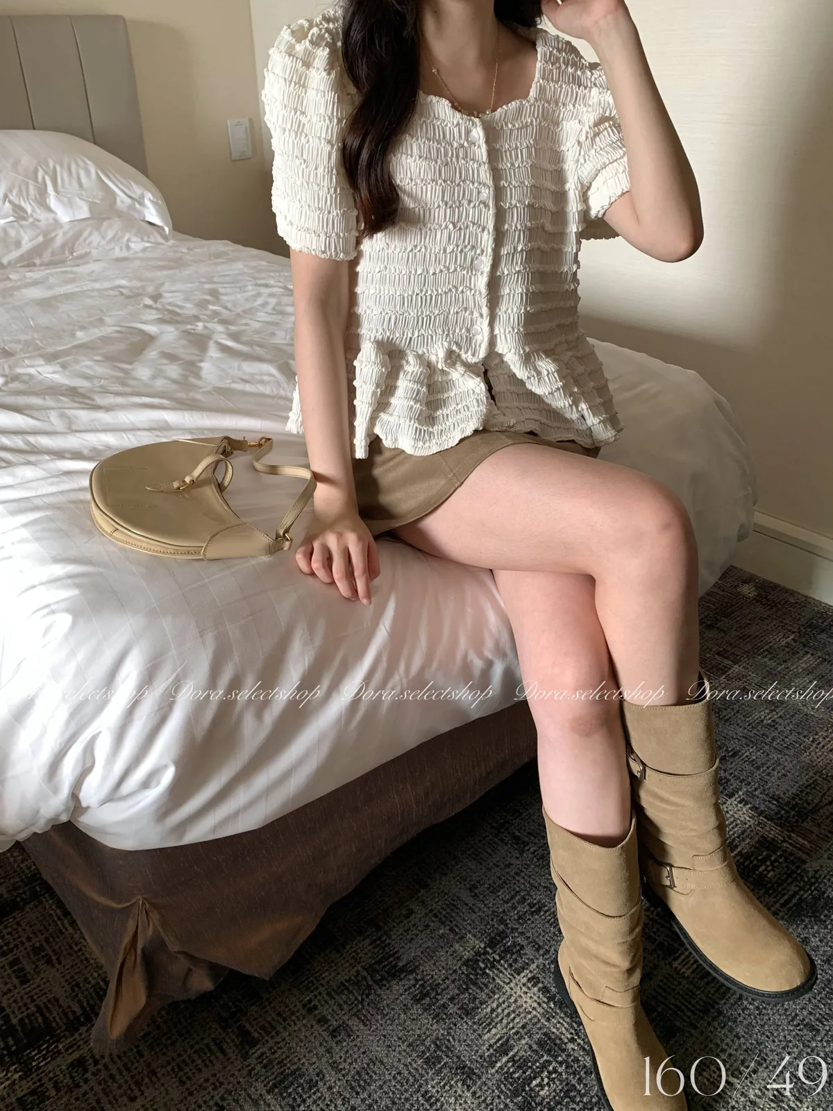 麂皮率性修身短裙(附安全褲、皮帶小腰包)---淺卡其