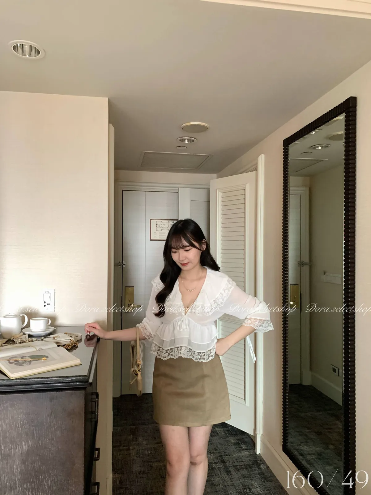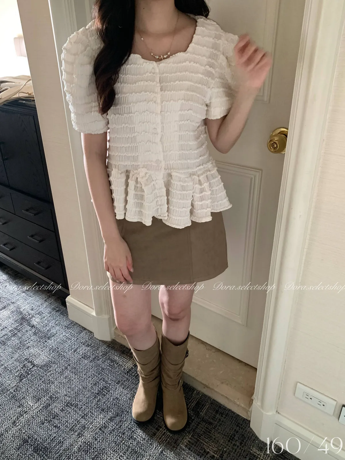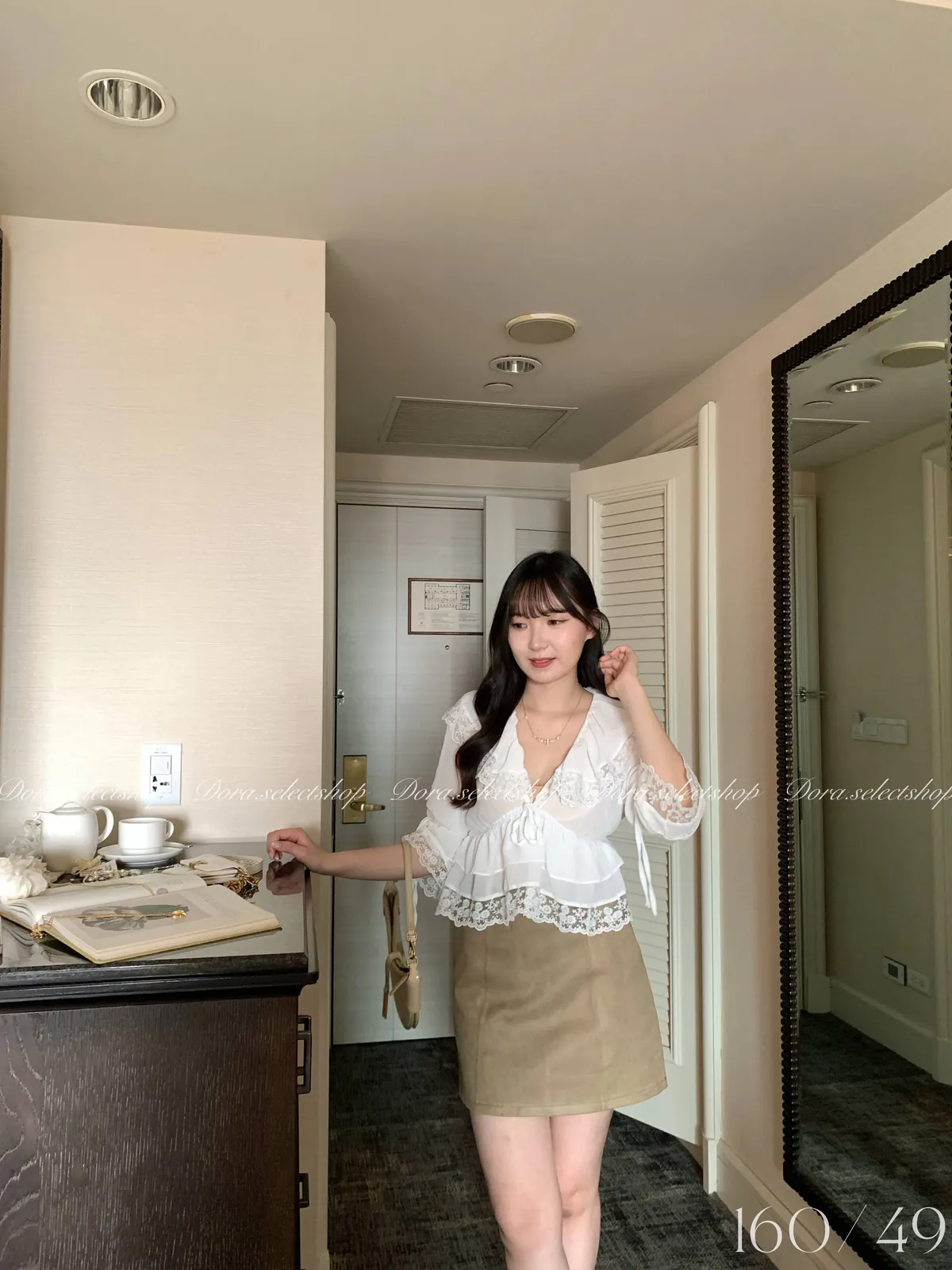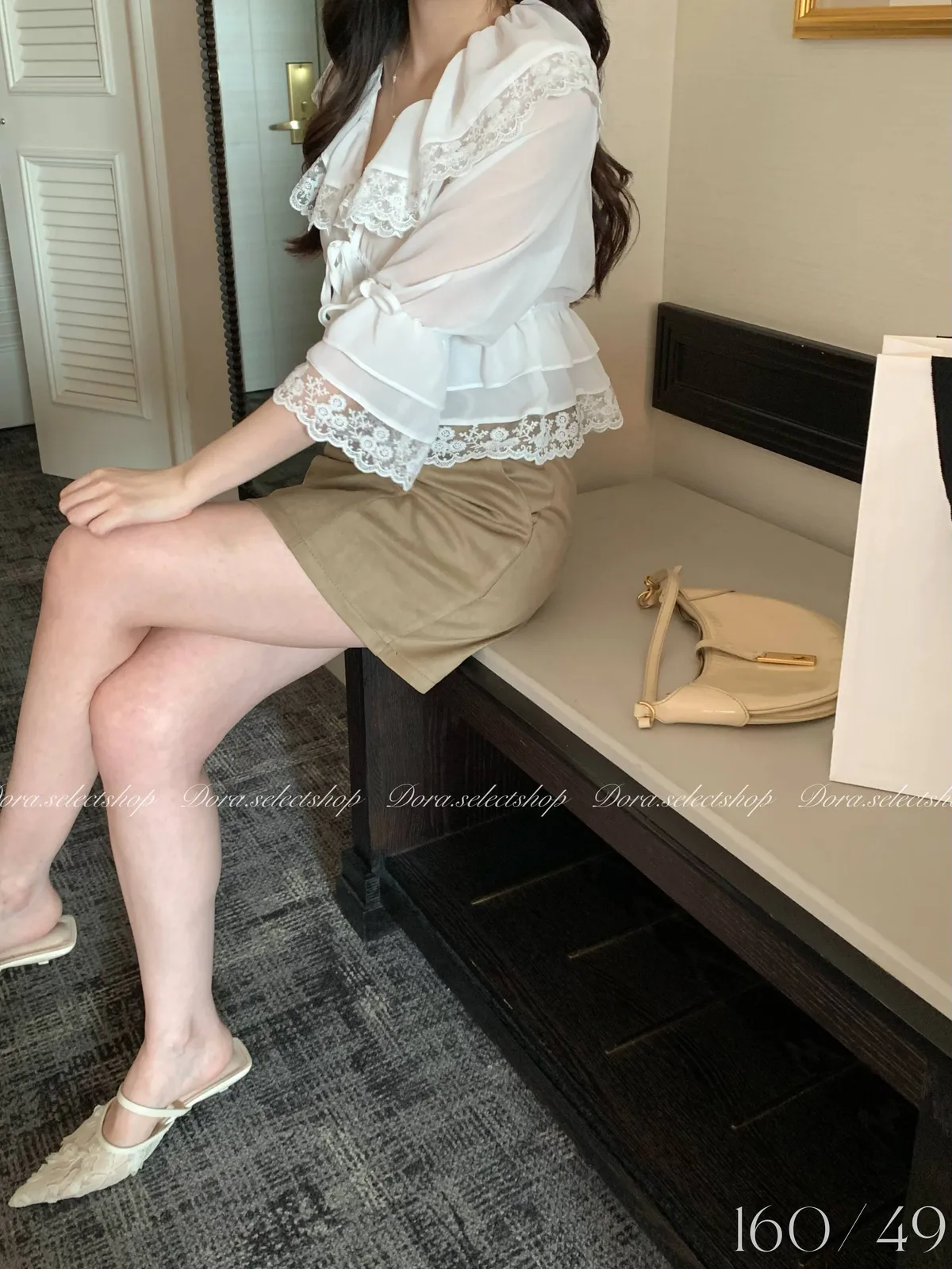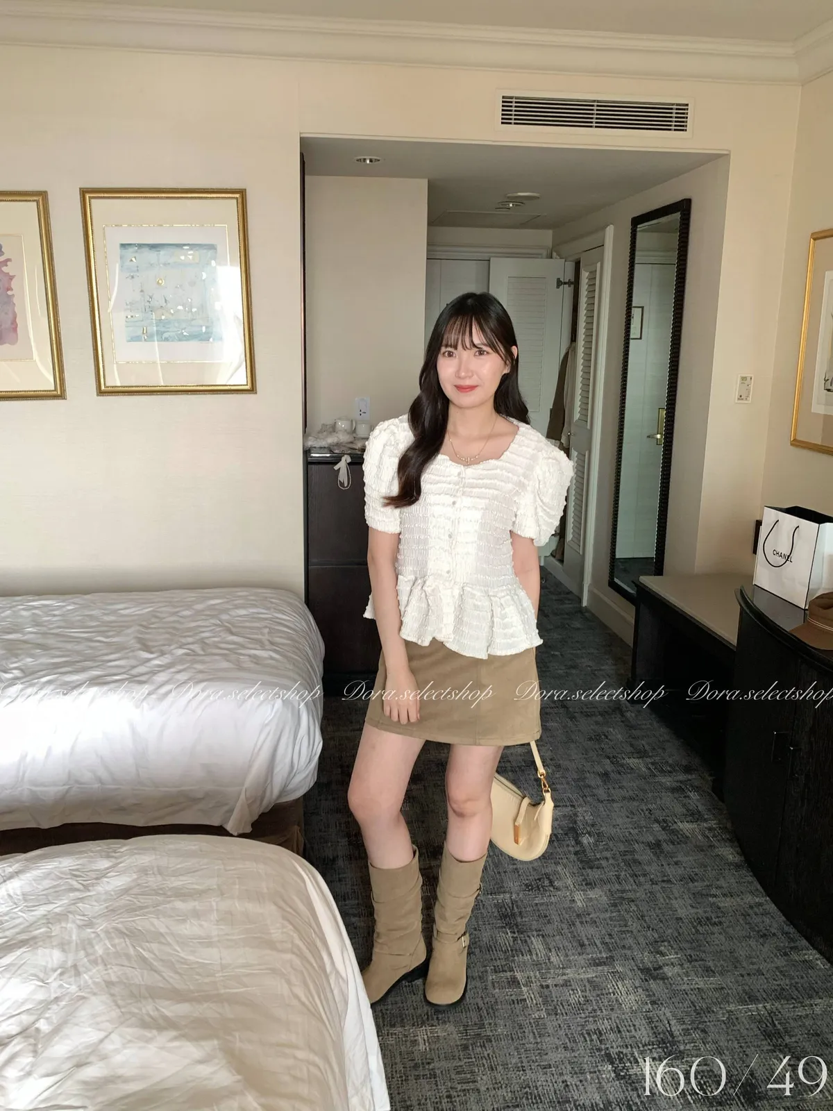 麂皮率性修身短裙(附安全褲、皮帶小腰包)---淺卡其