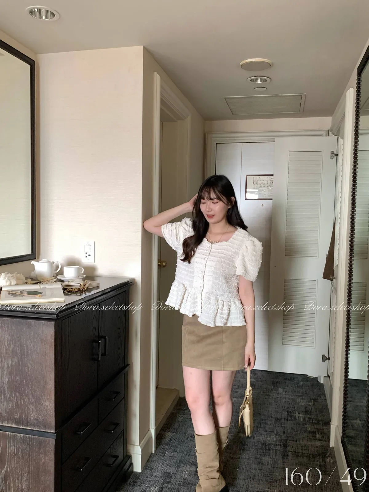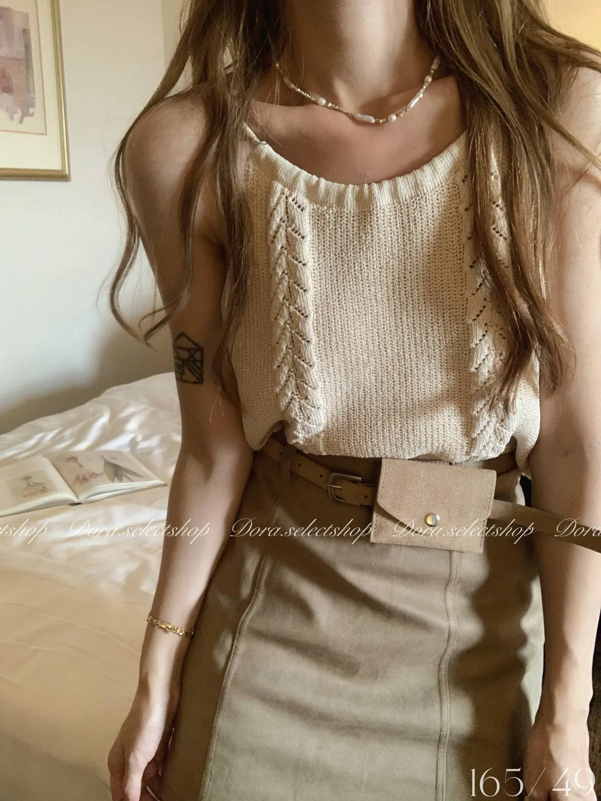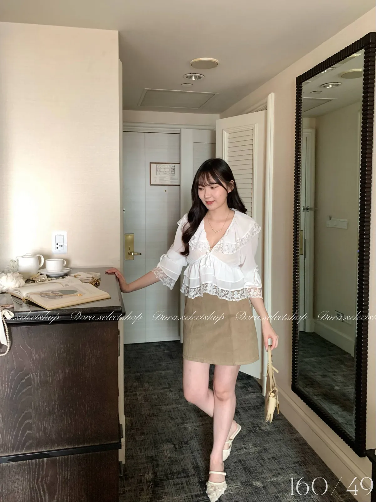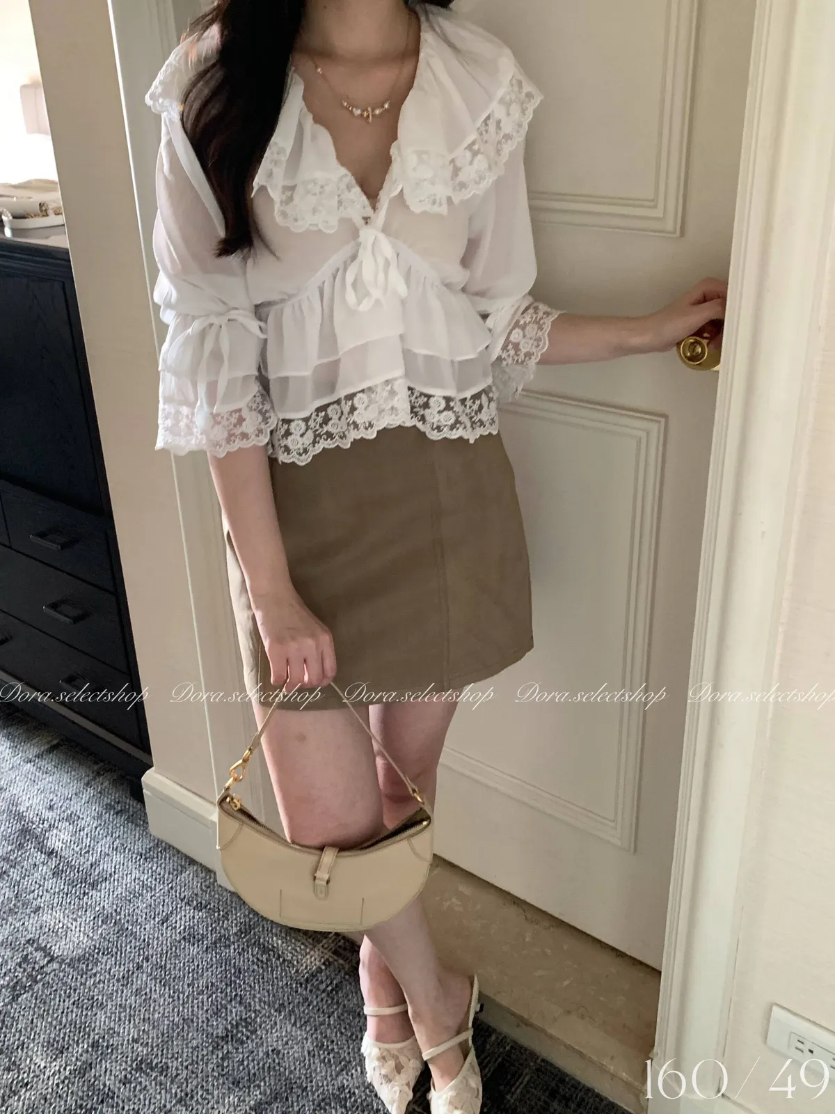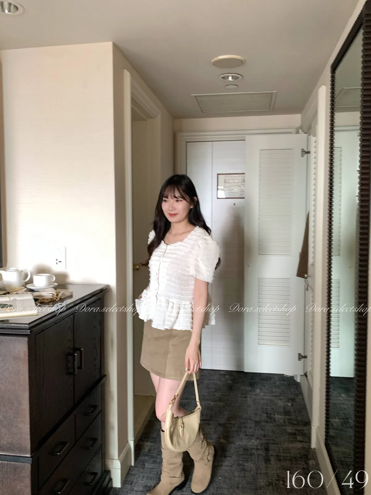 麂皮率性修身短裙(附安全褲、皮帶小腰包)---淺卡其