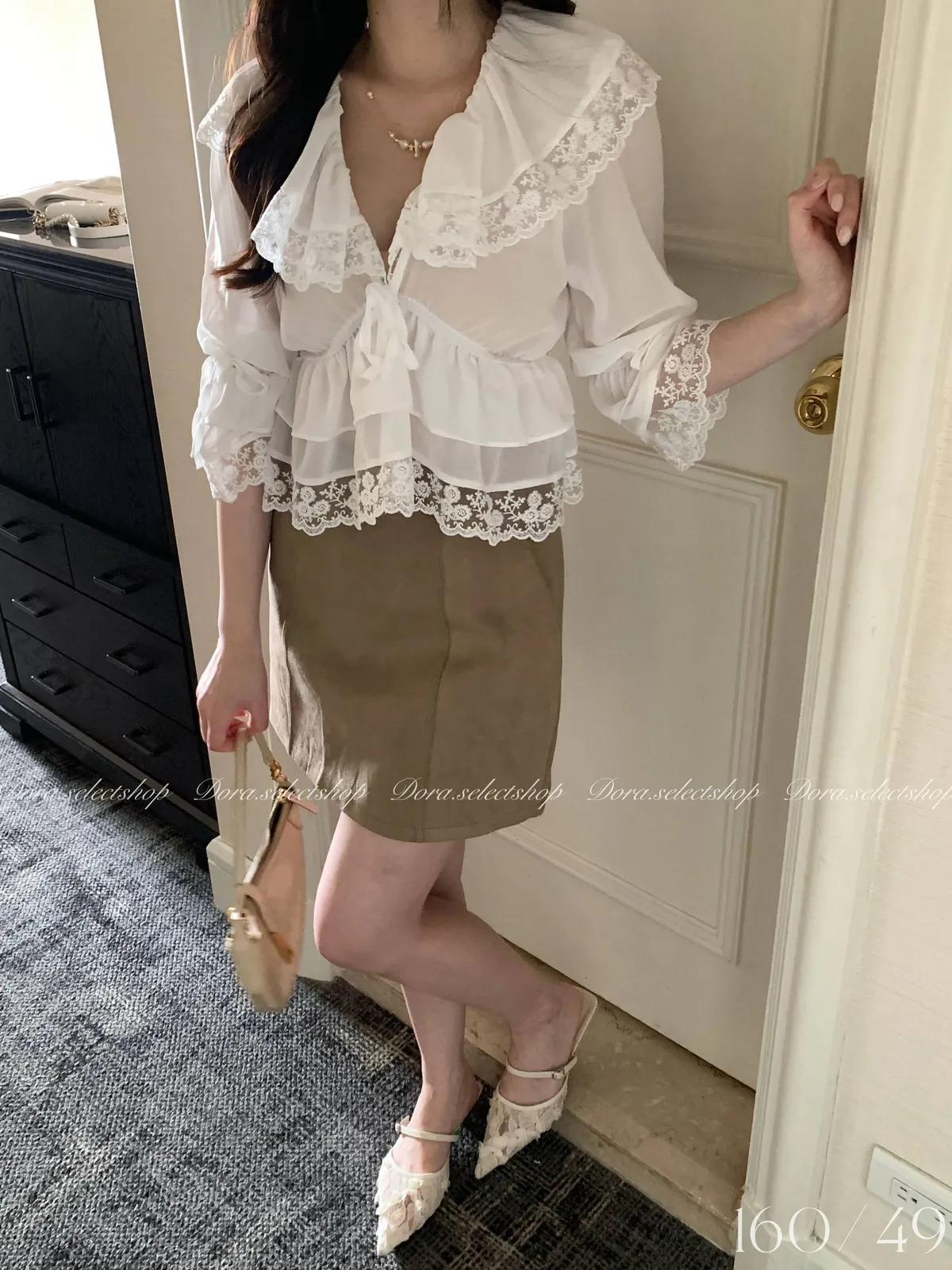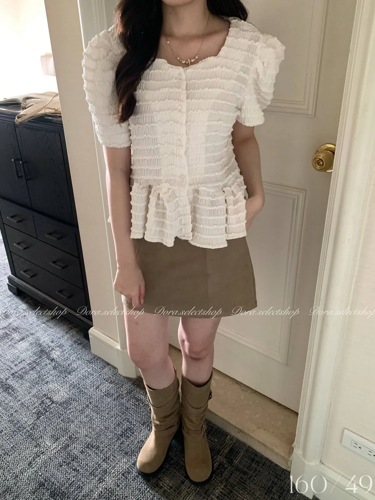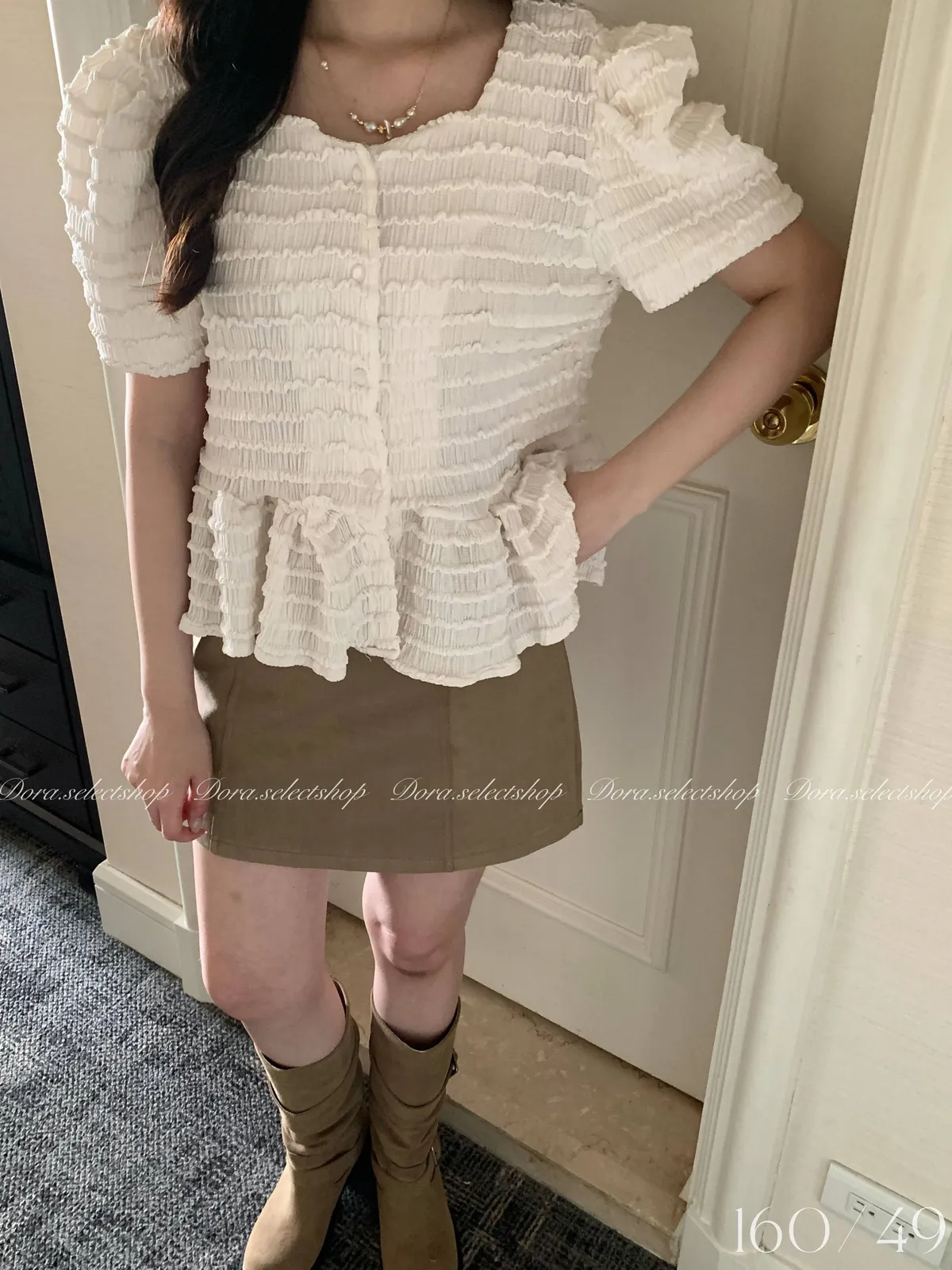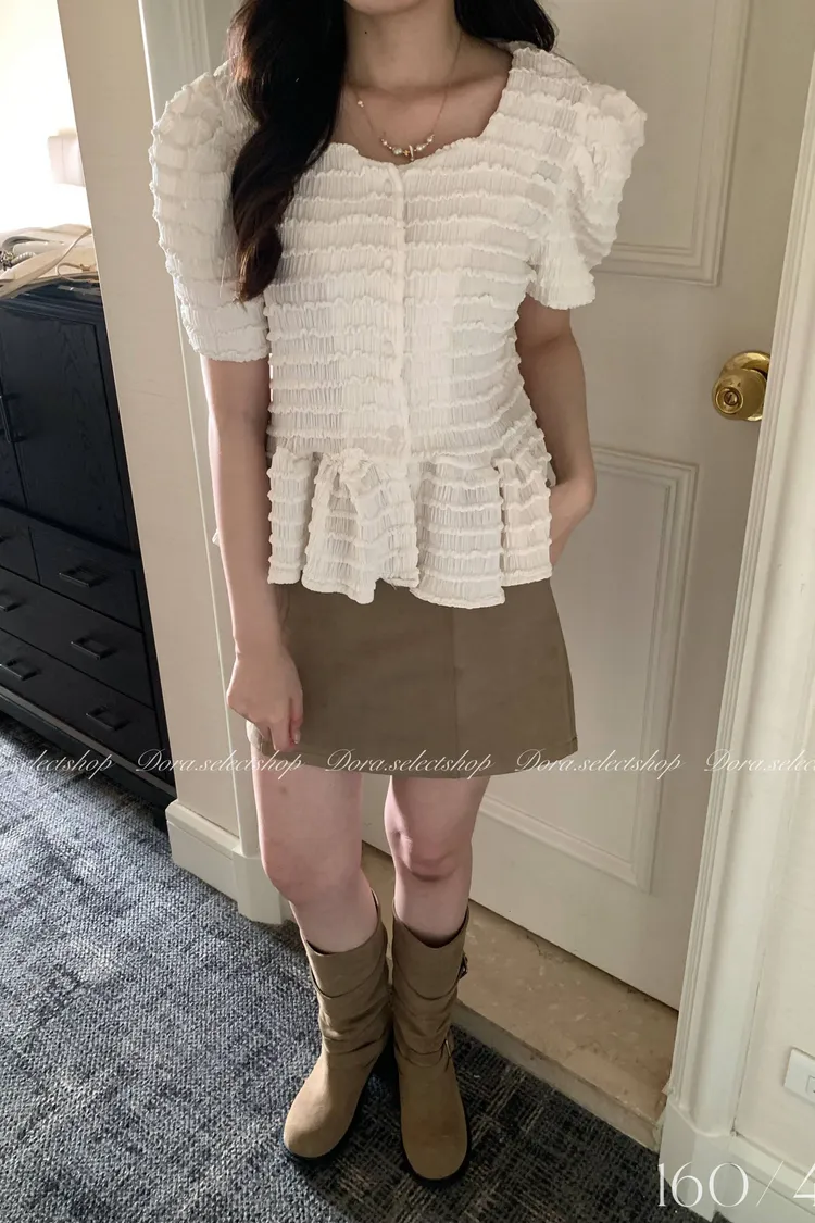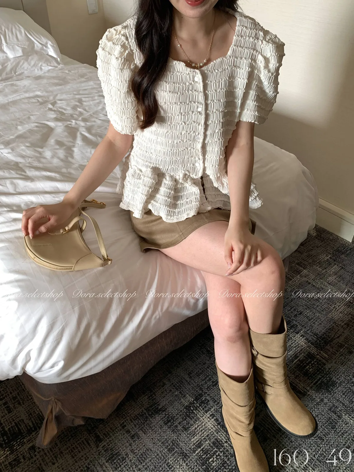 麂皮率性修身短裙(附安全褲、皮帶小腰包)---淺卡其