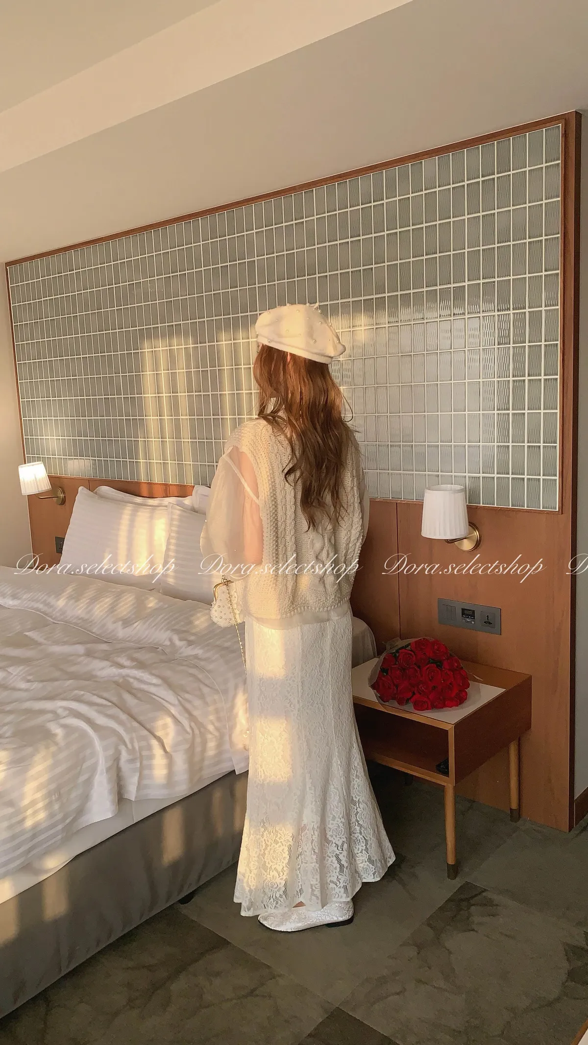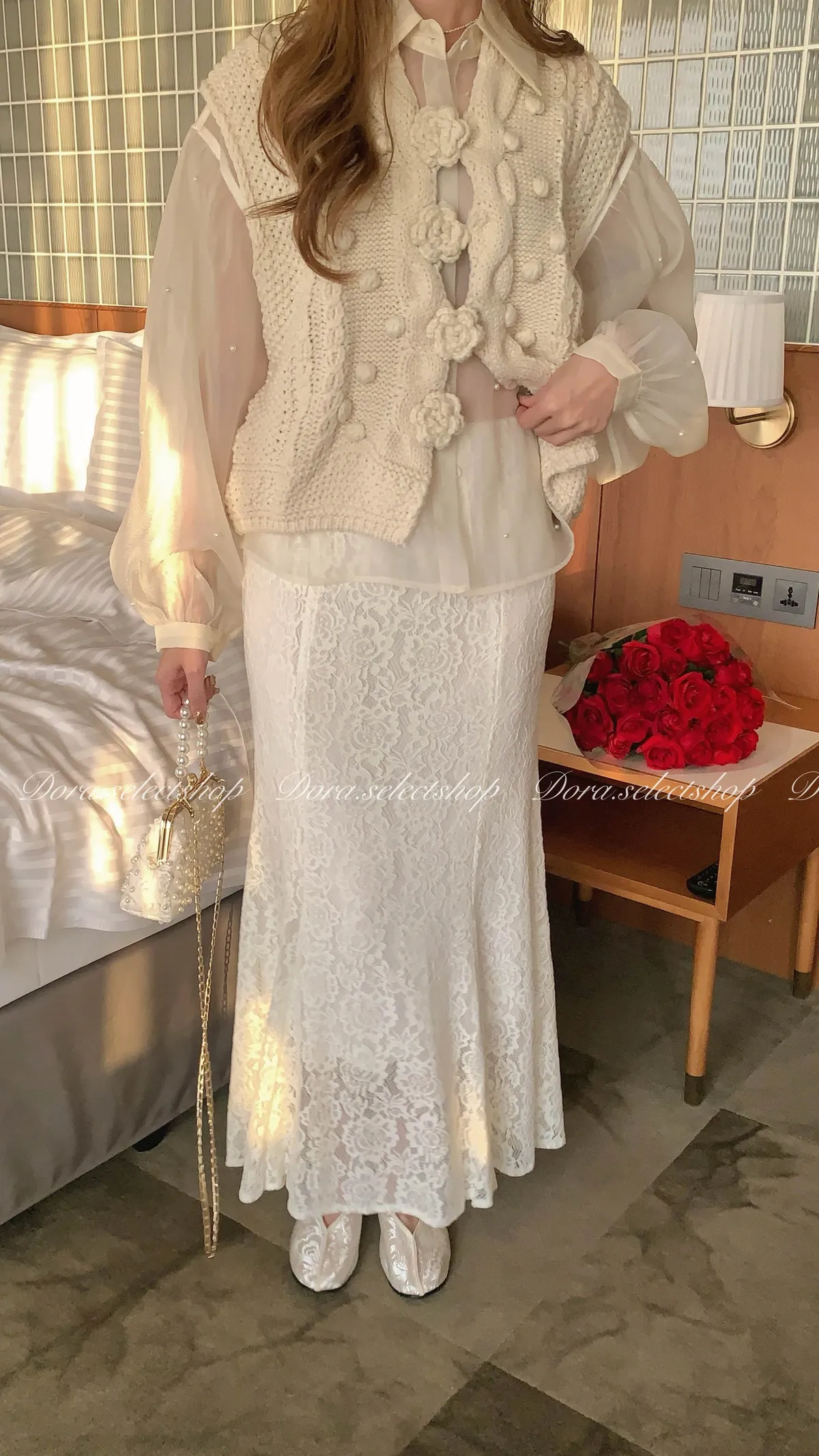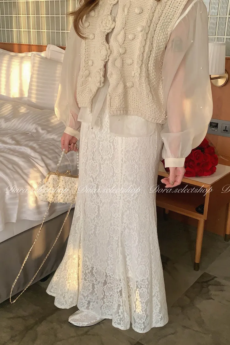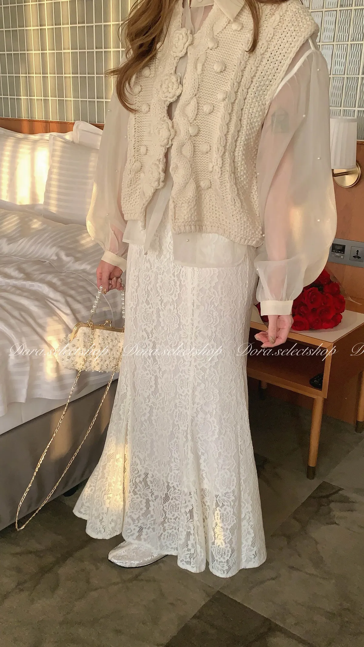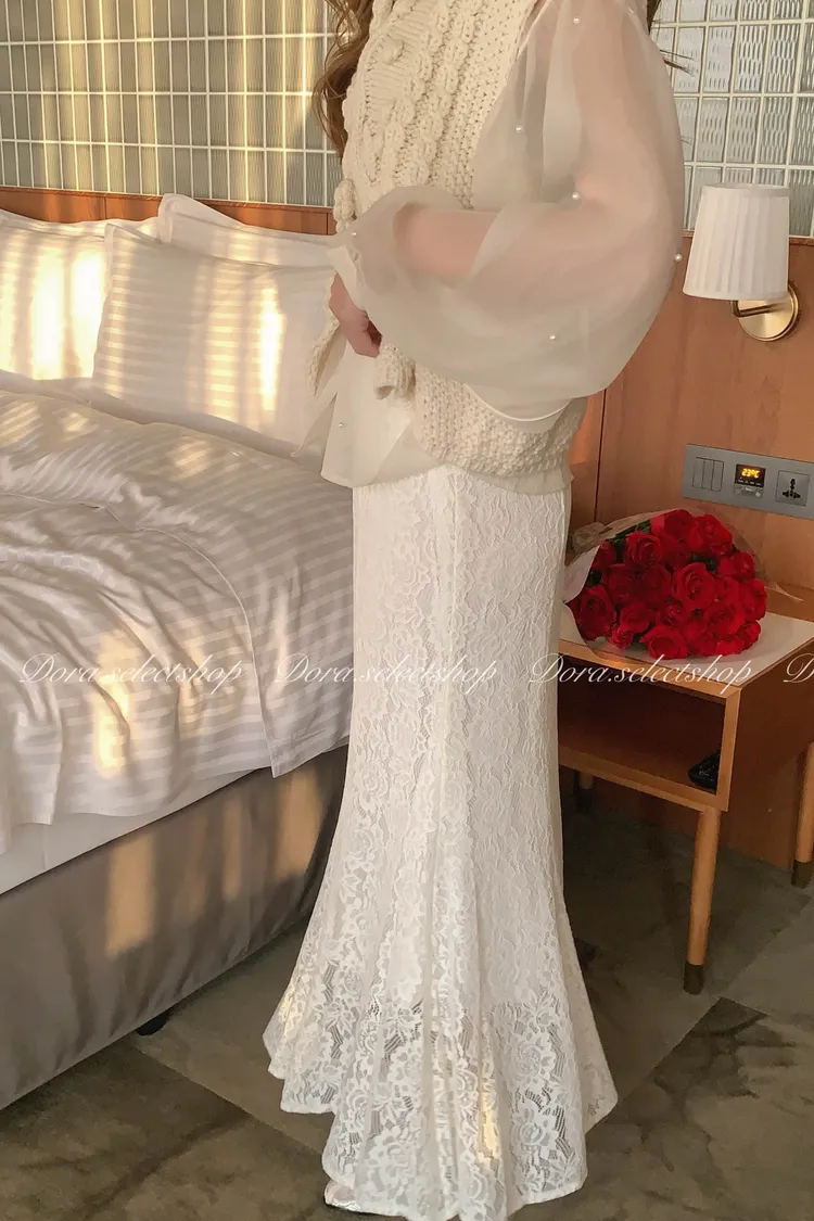 氣質爆棚🦢彈性軟蕾絲小魚尾長裙---白
