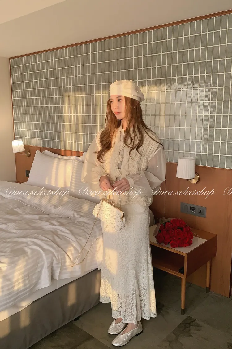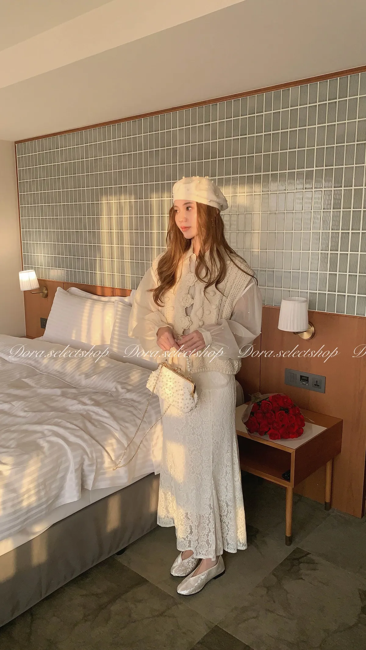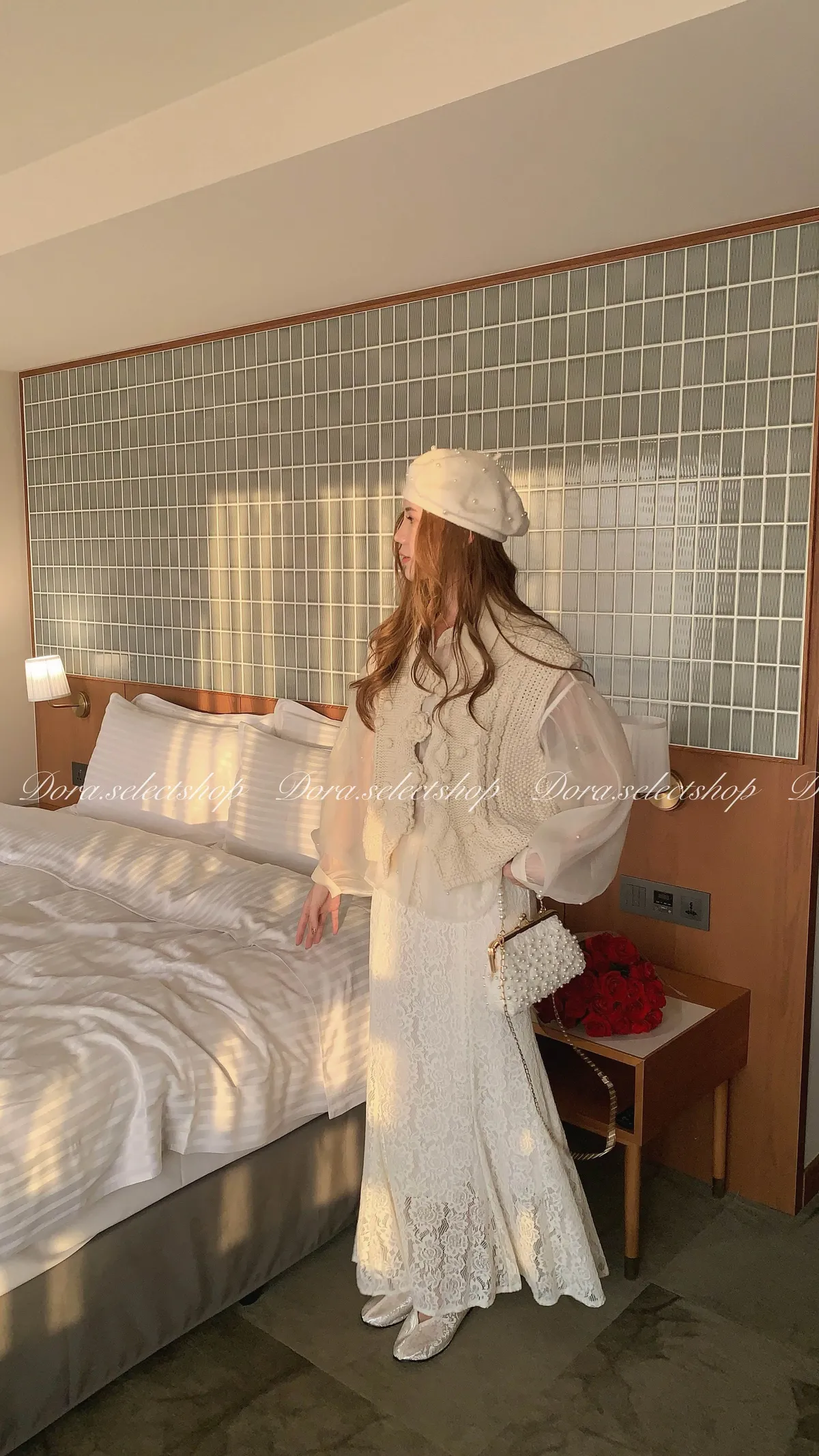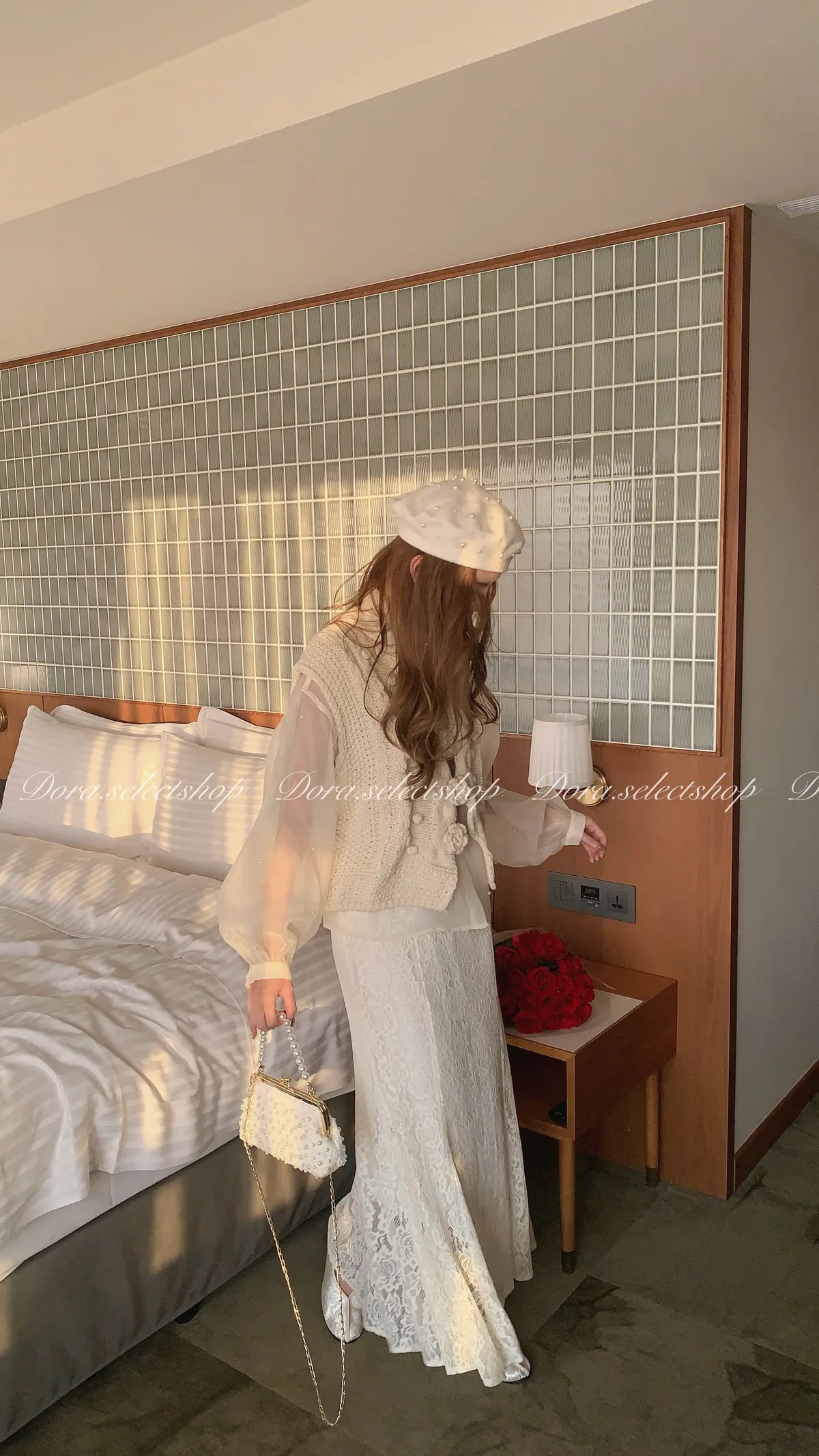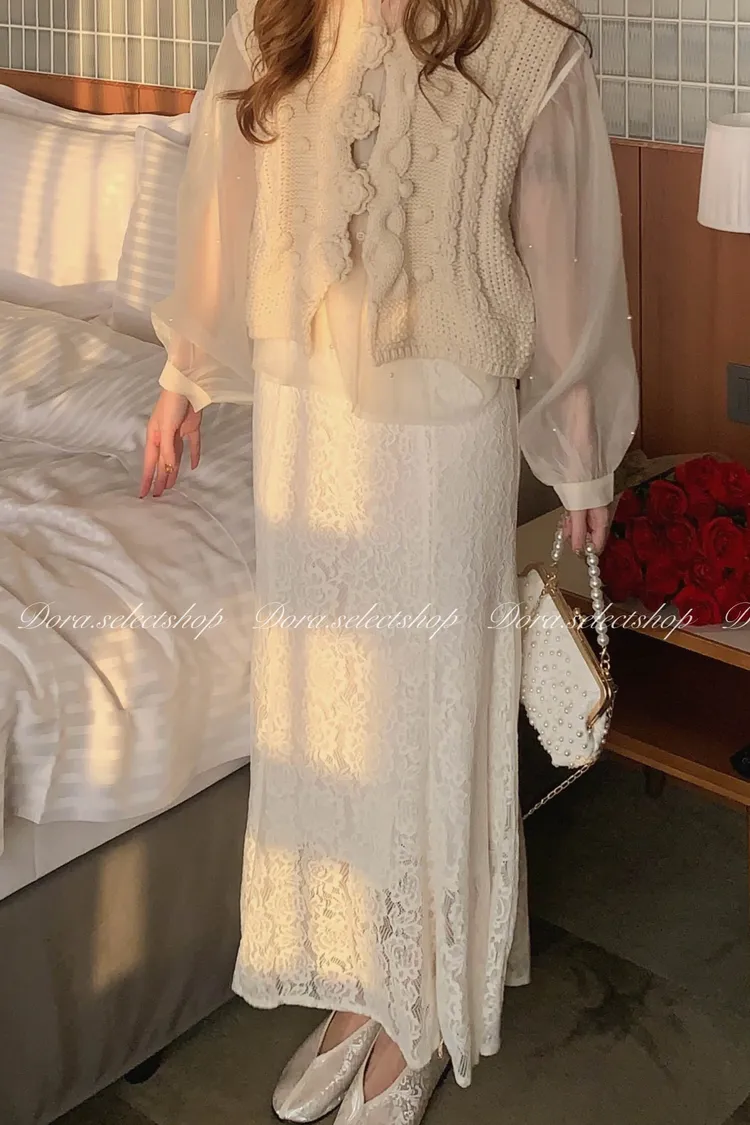 氣質爆棚🦢彈性軟蕾絲小魚尾長裙---白