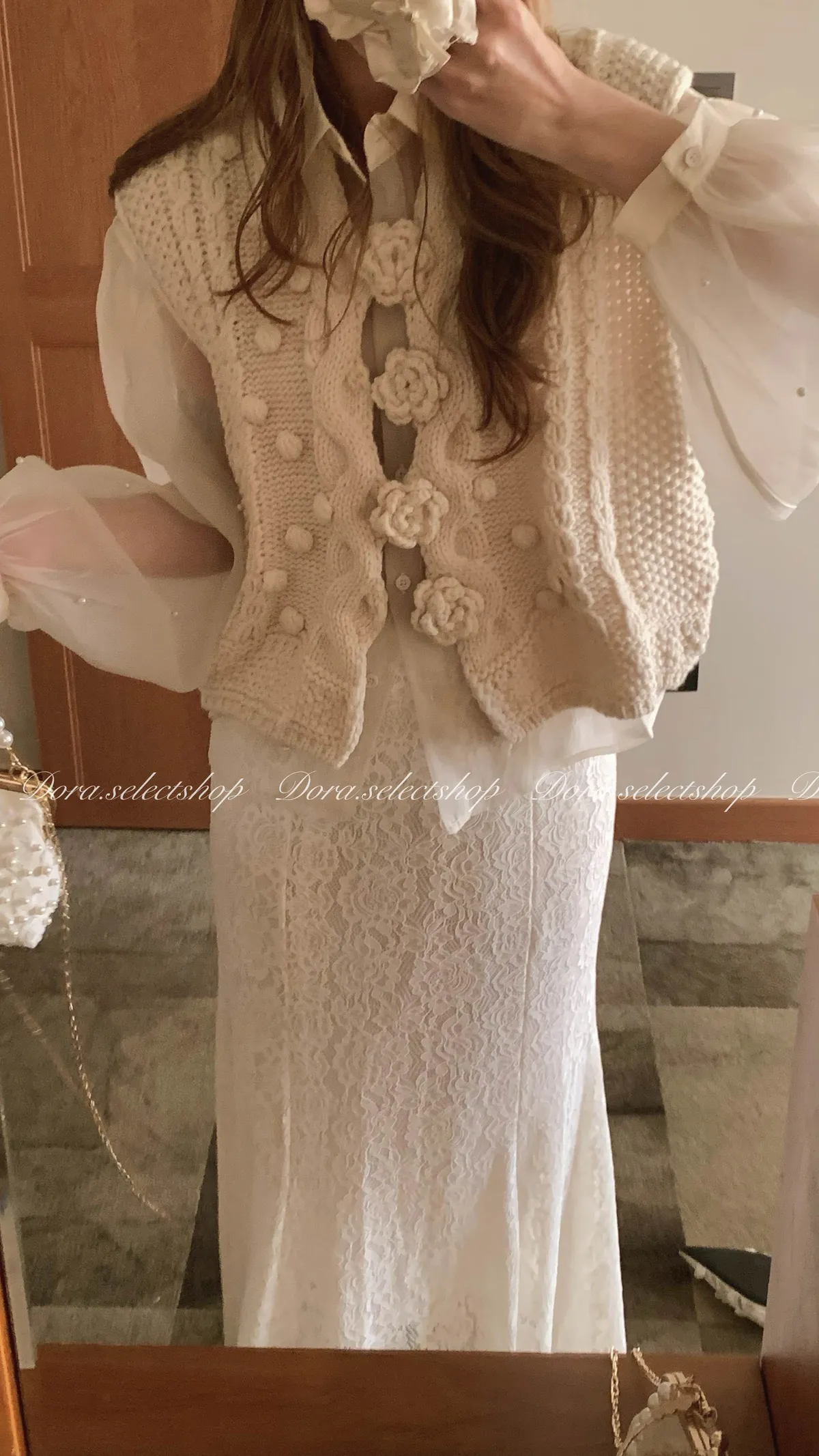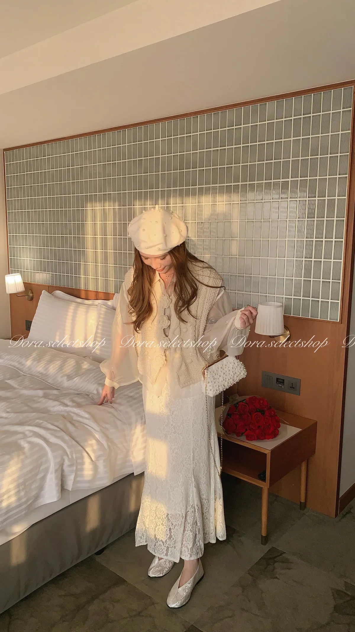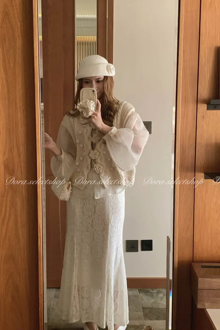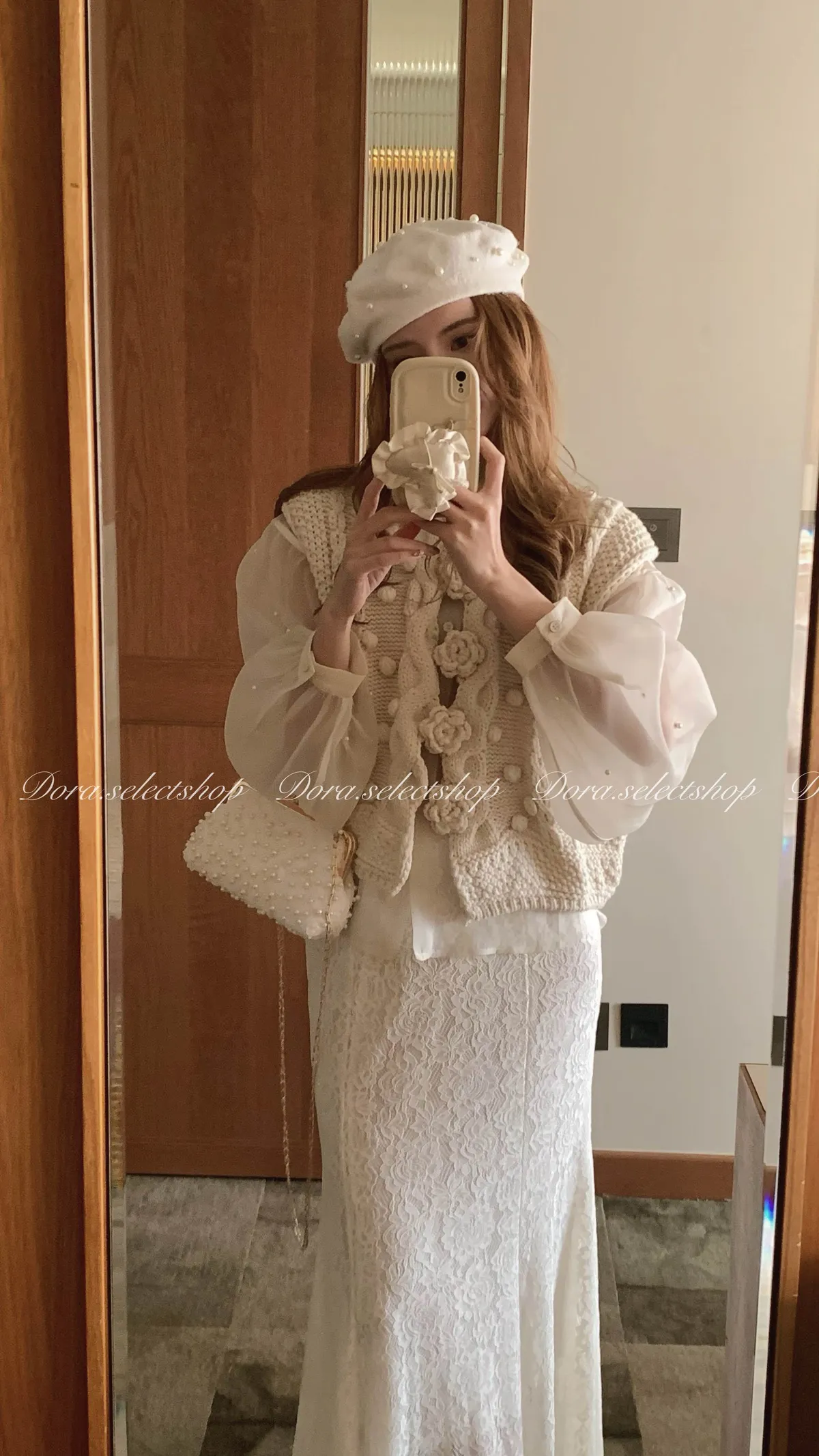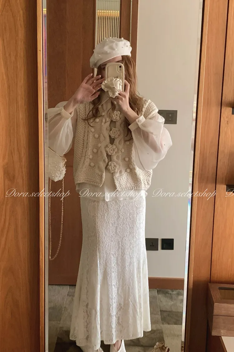 氣質爆棚🦢彈性軟蕾絲小魚尾長裙---白