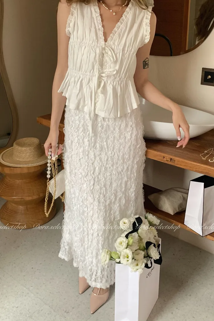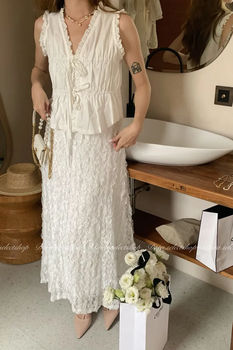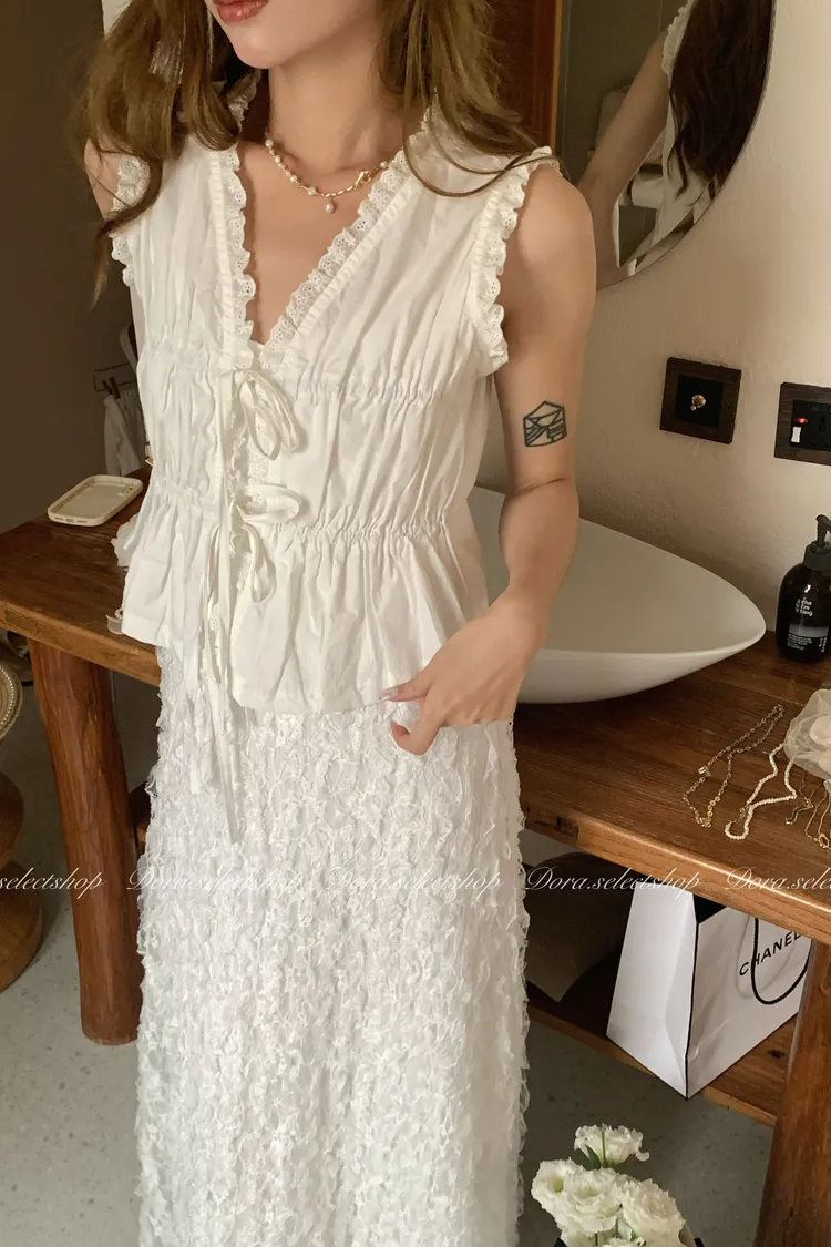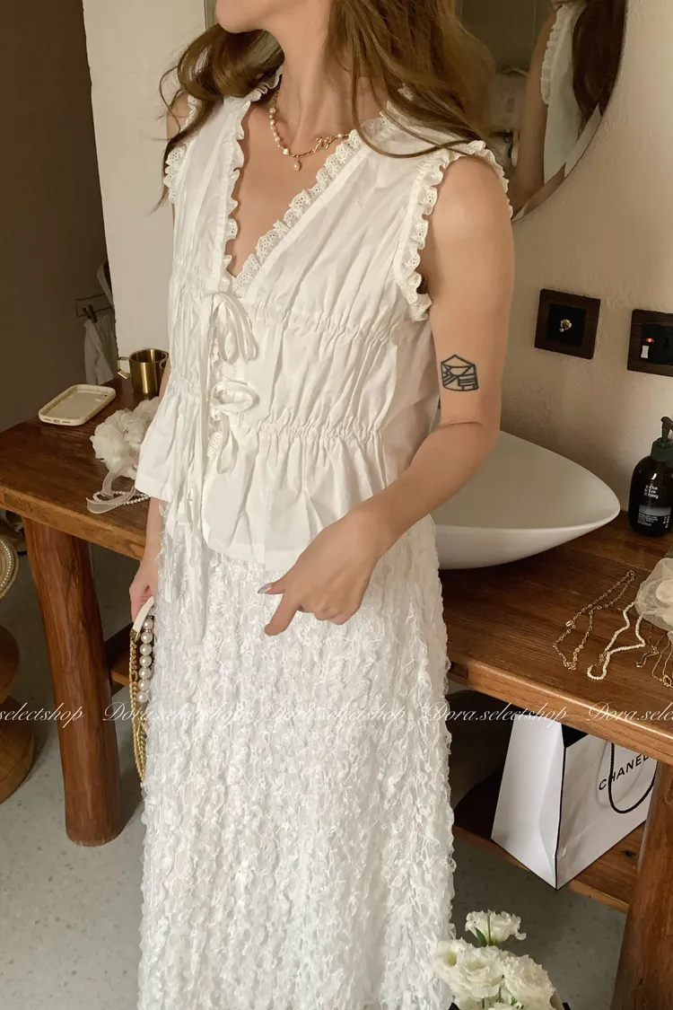 木耳邊綁帶蛋糕造型背心---白