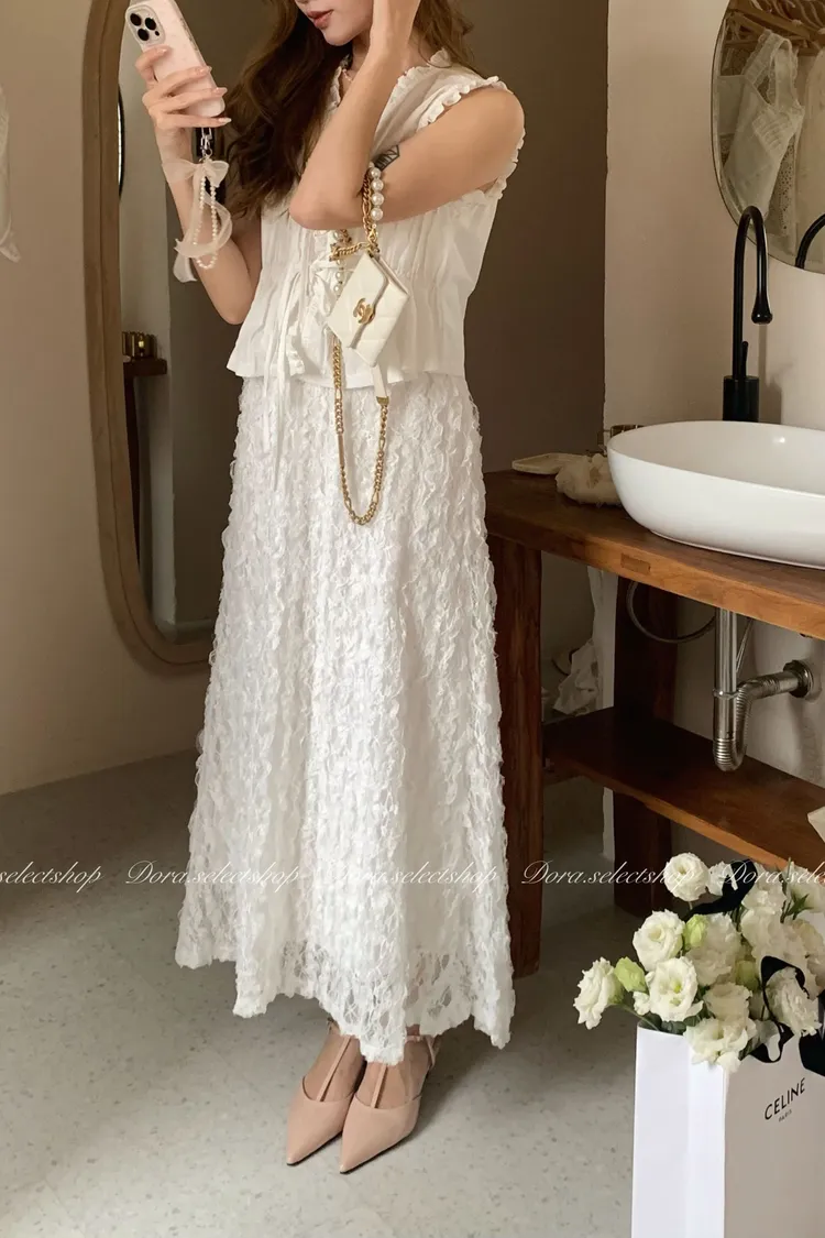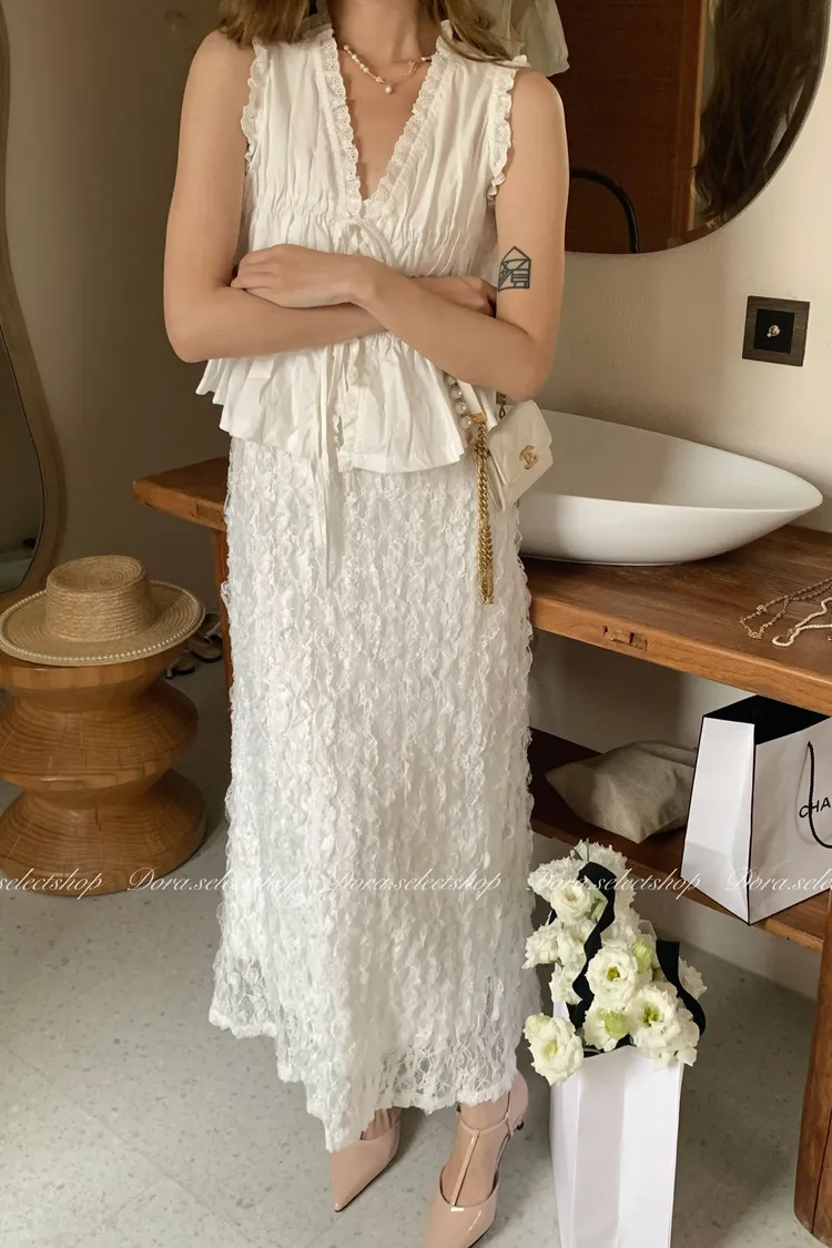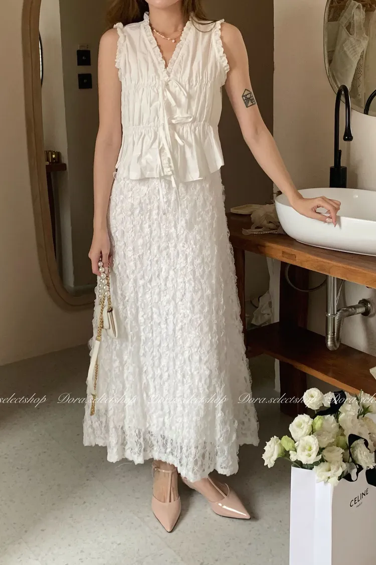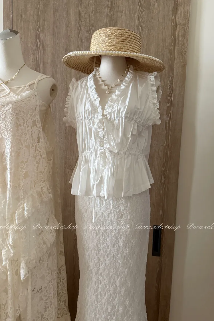 木耳邊綁帶蛋糕造型背心---白