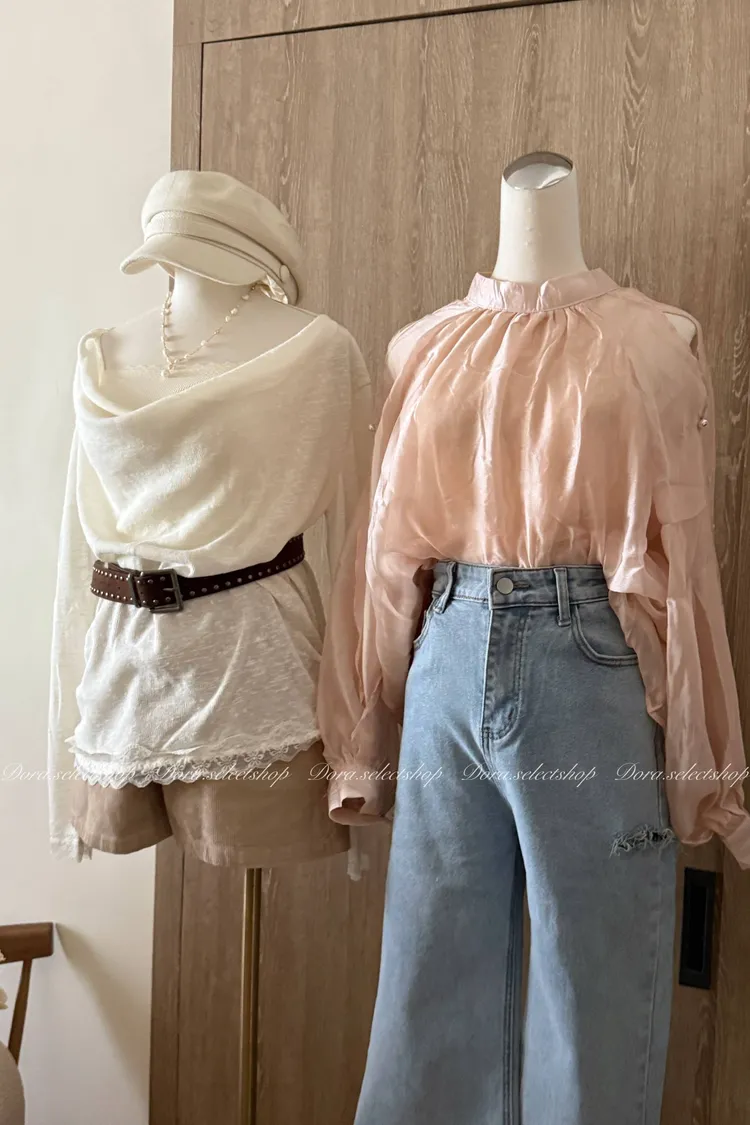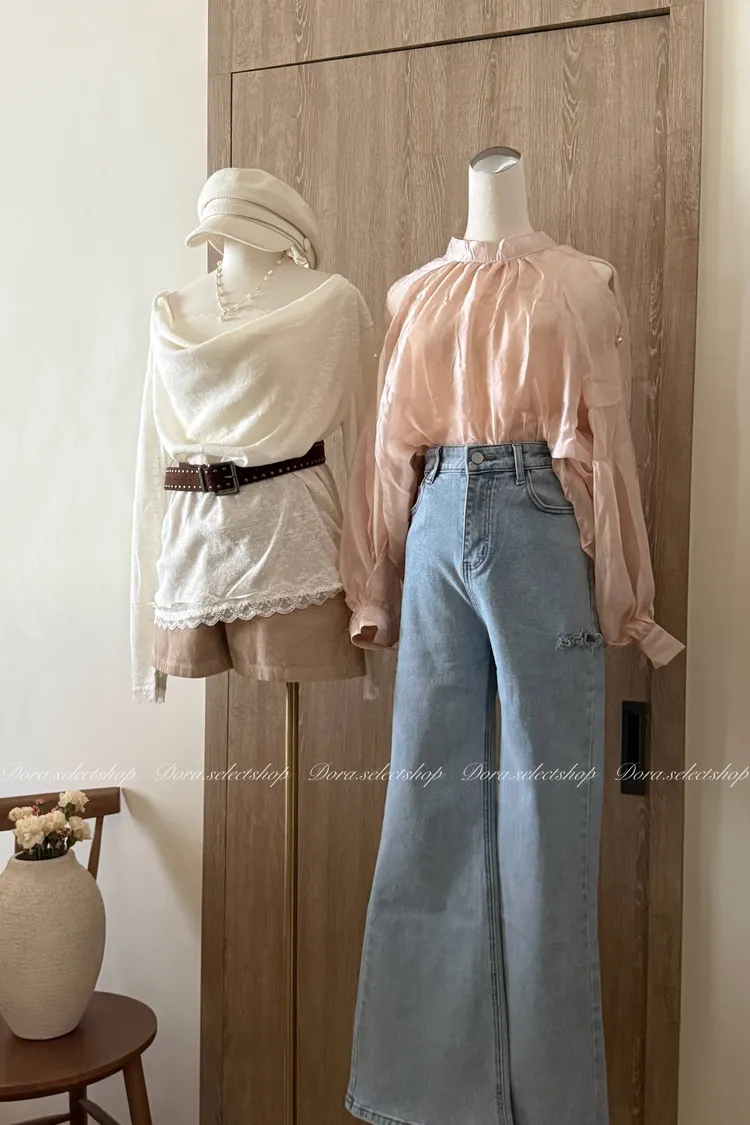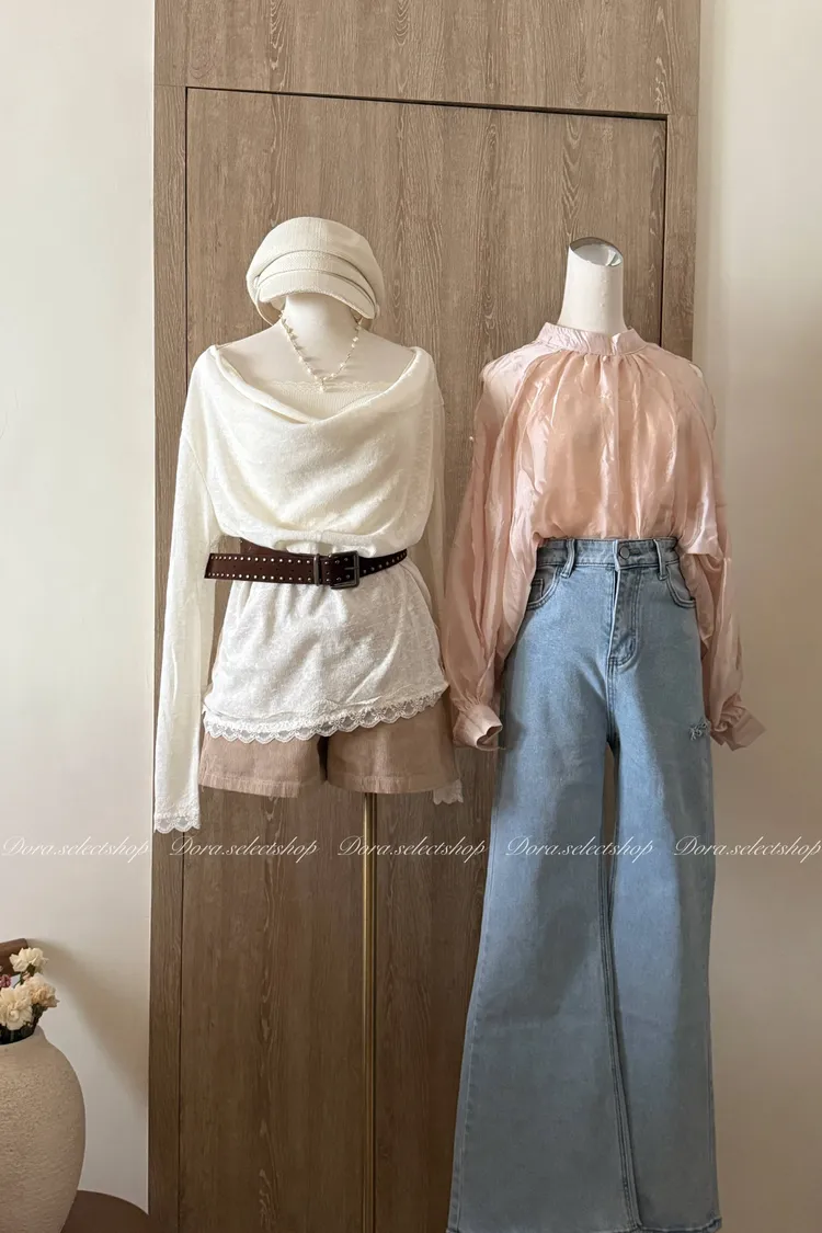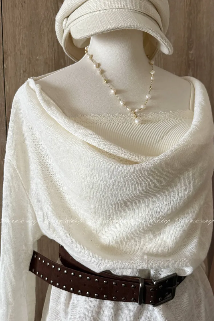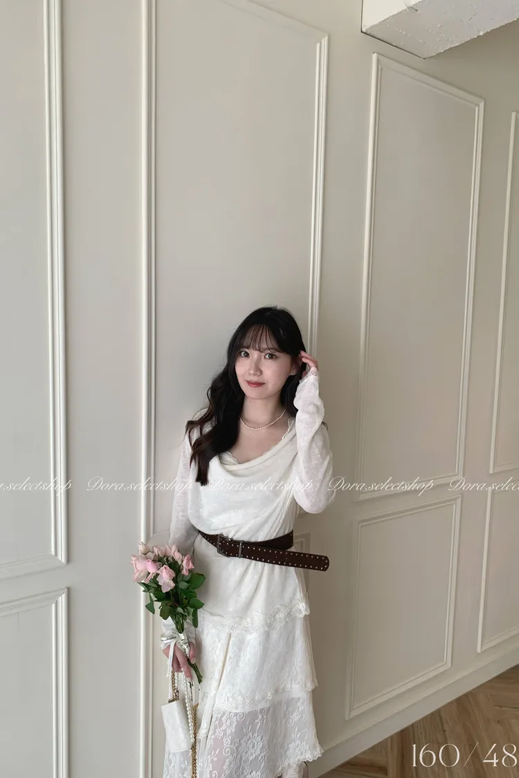 (限量預購!!!)慵懶性感垂領蕾絲滾邊針織衣(附腰帶)---米白
