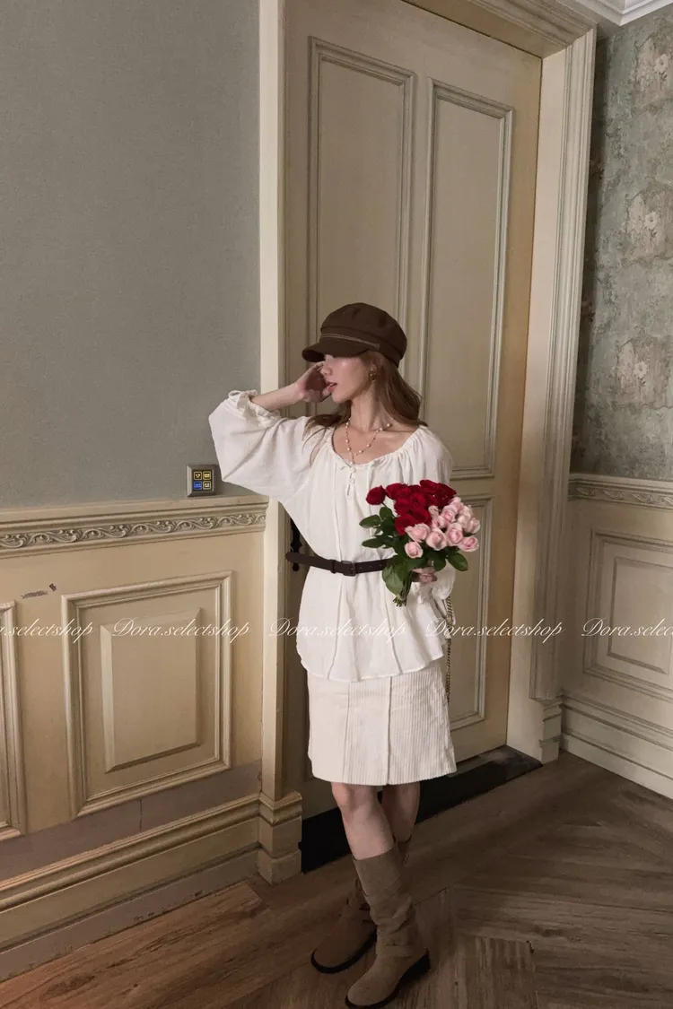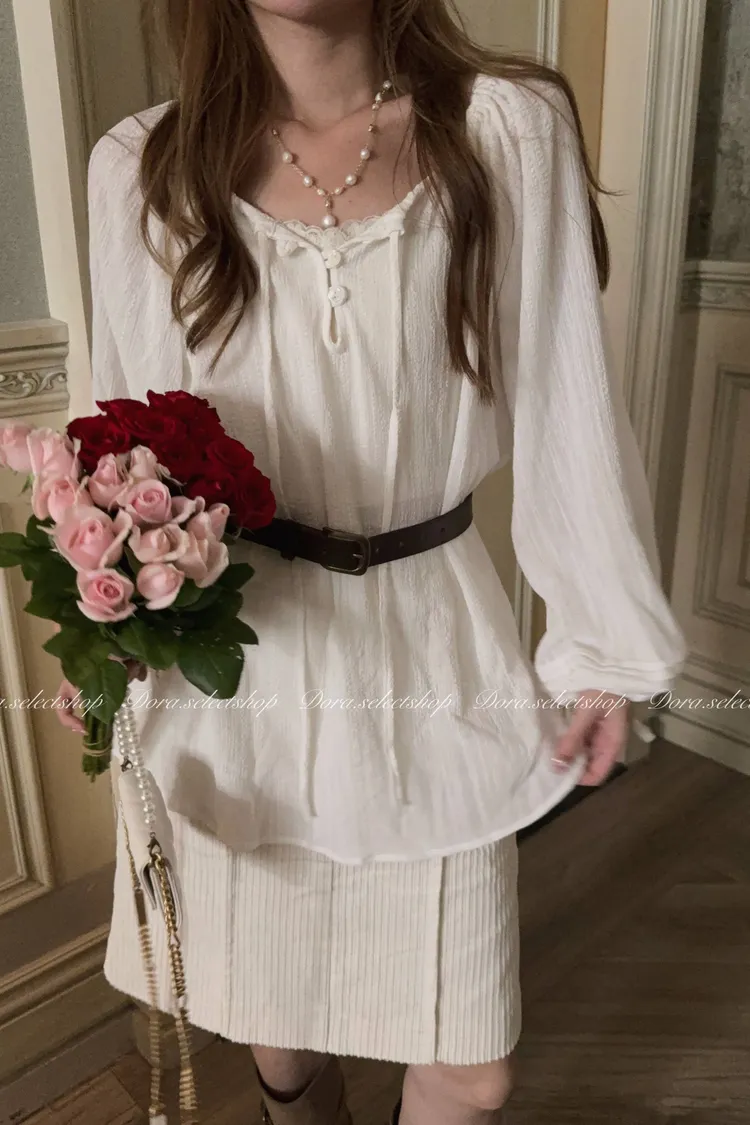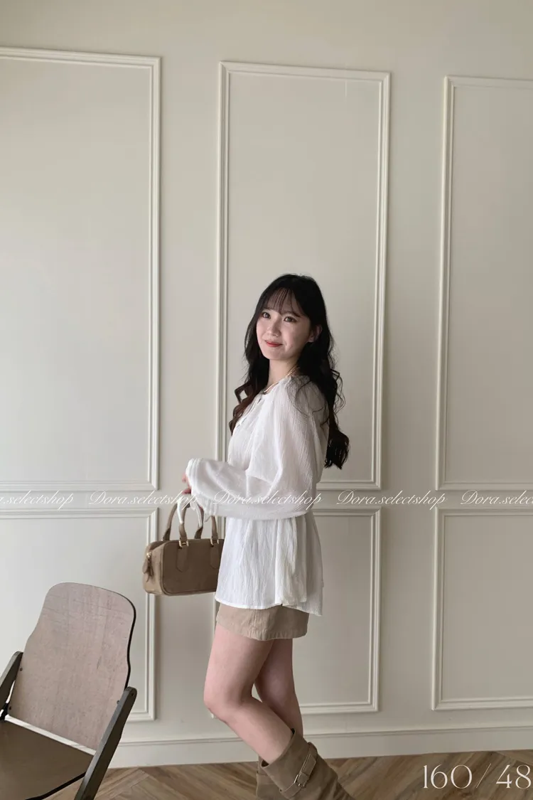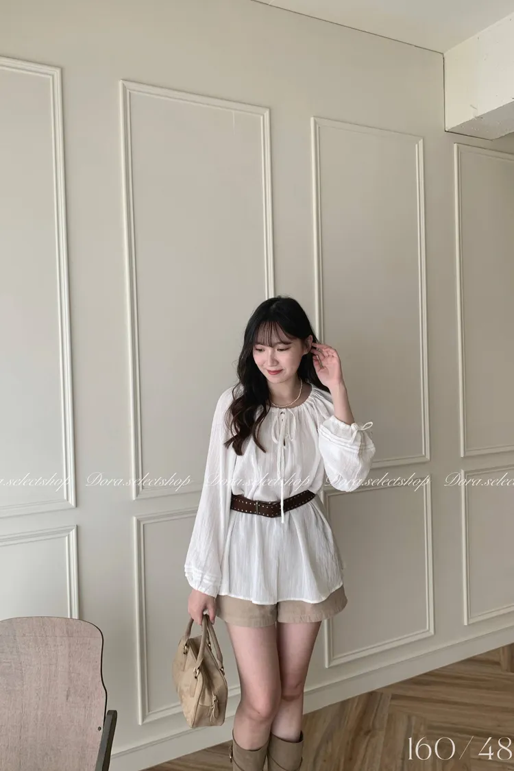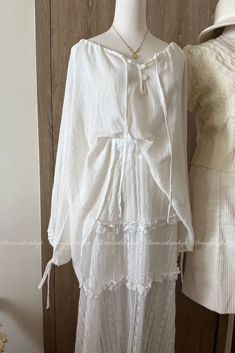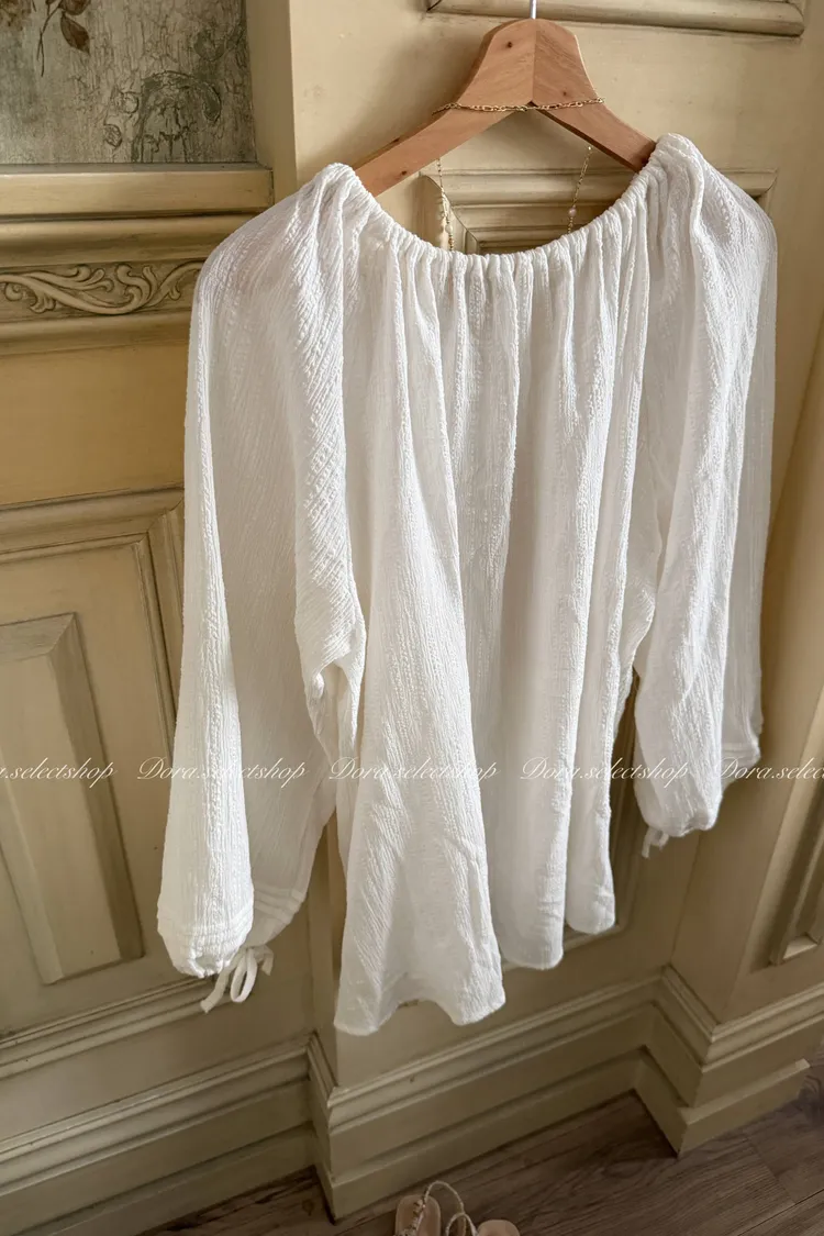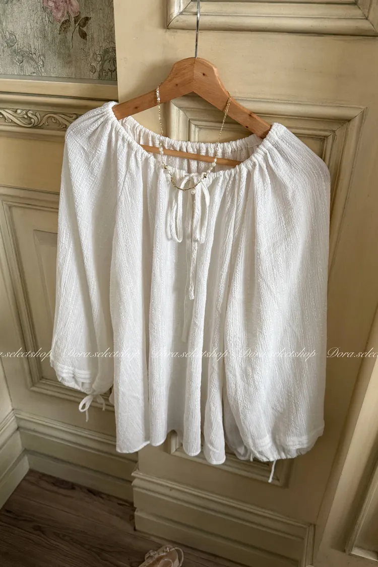 棉麻浪漫垂墜仙氣飄逸上衣---白