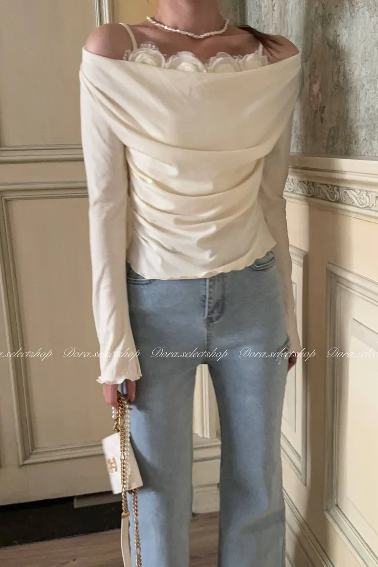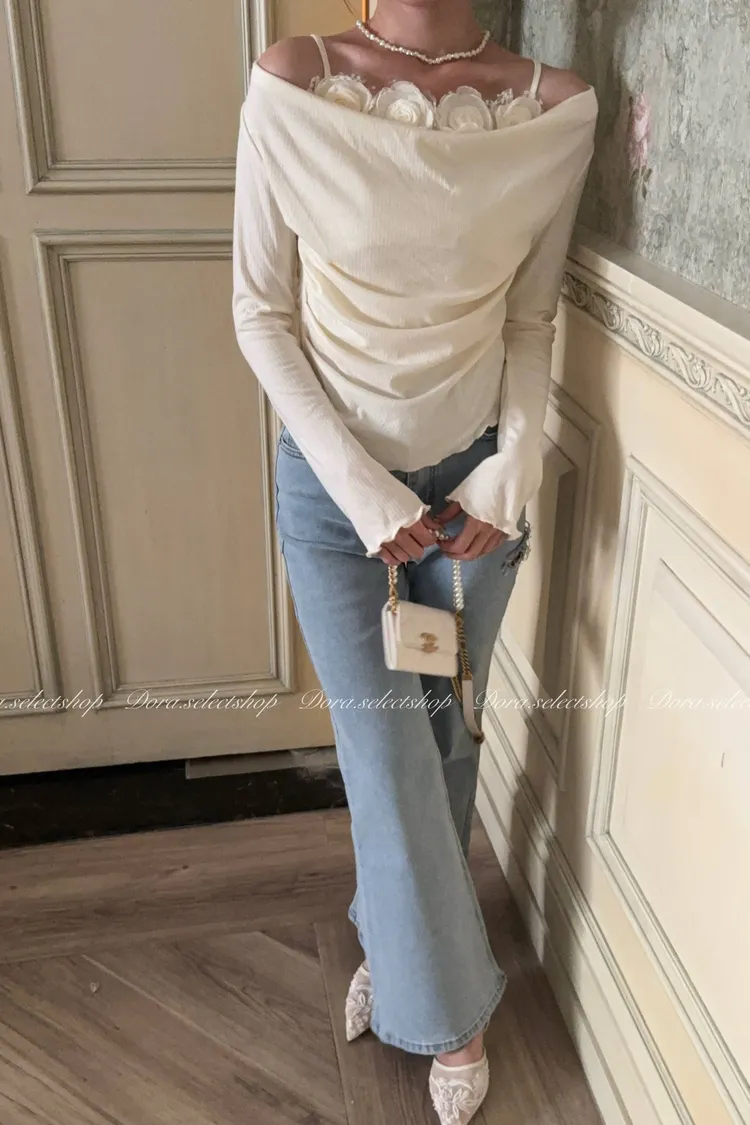 自帶浪漫小性感 領口玫瑰花很精緻特別