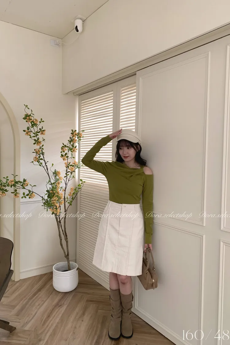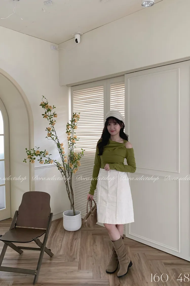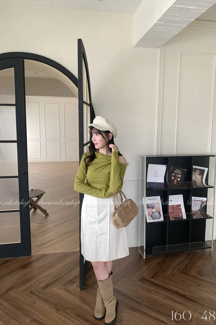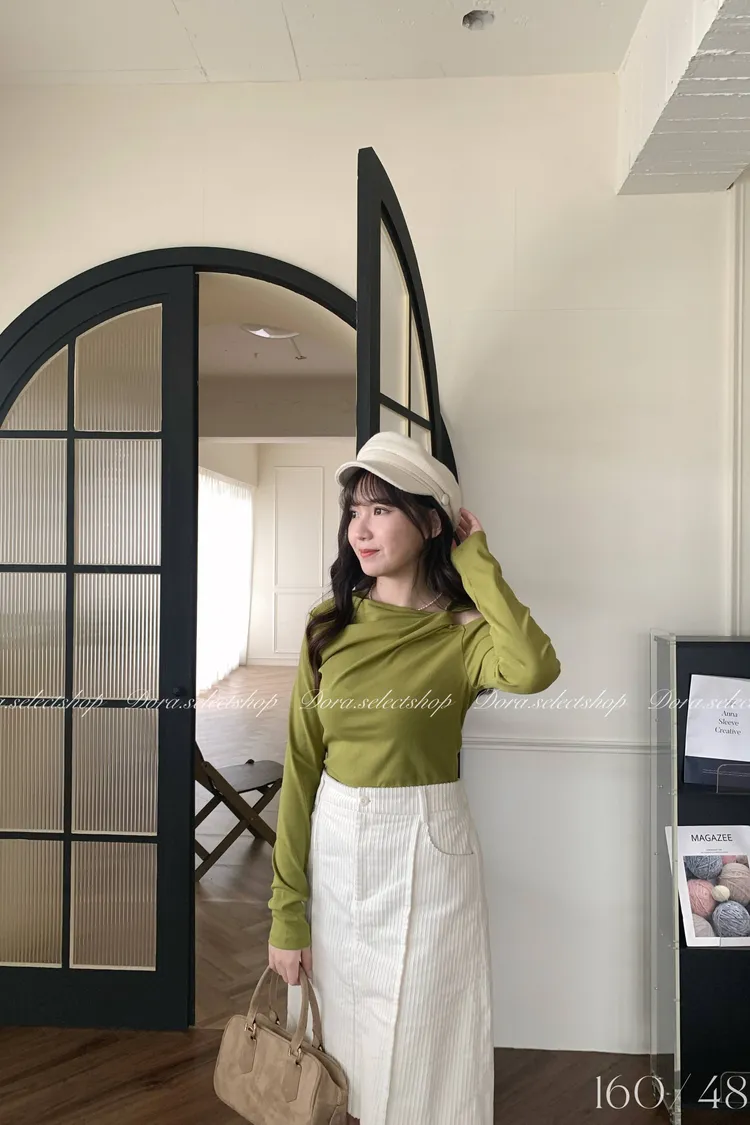 挖肩露出一邊鎖骨很顯瘦! 另一邊也可以拉成斜肩
