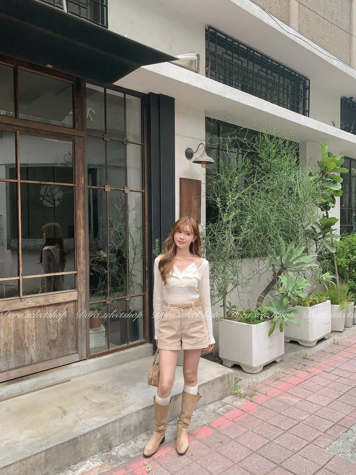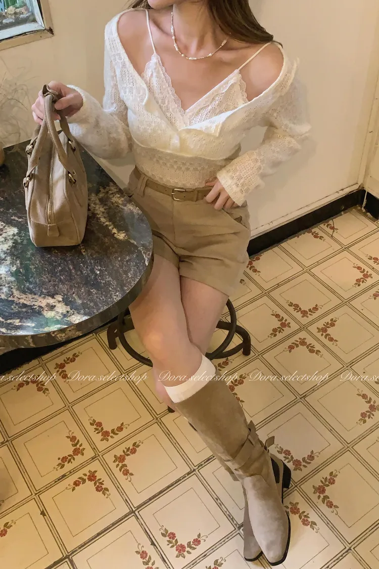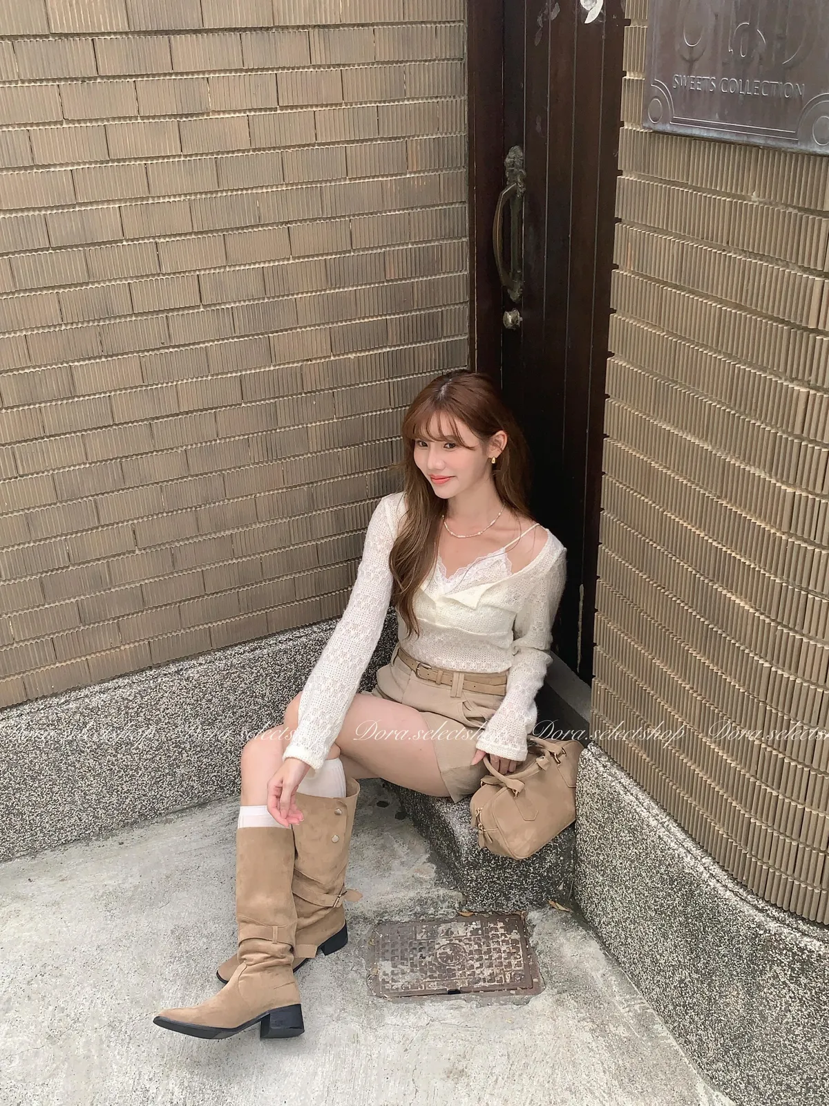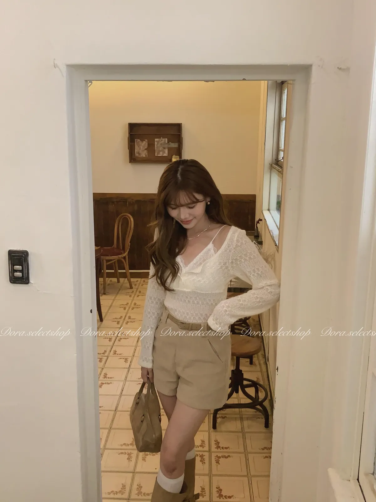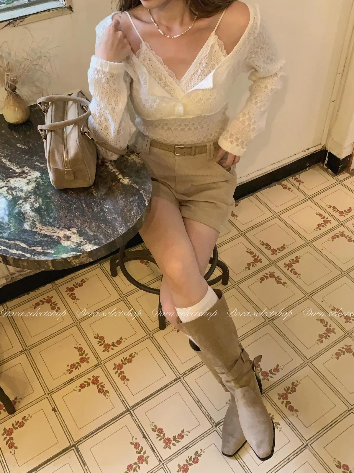 🇰🇷性感浪漫兼具假兩件蕾絲針織上衣---米白