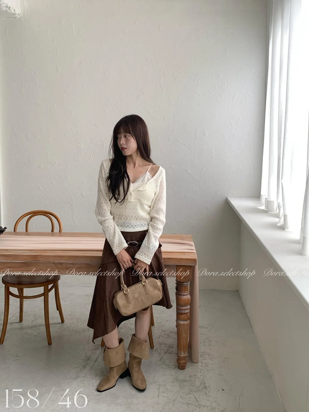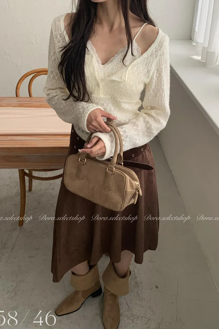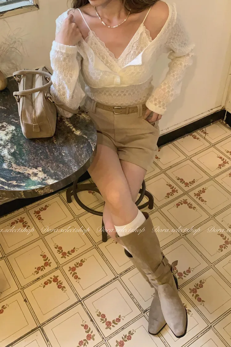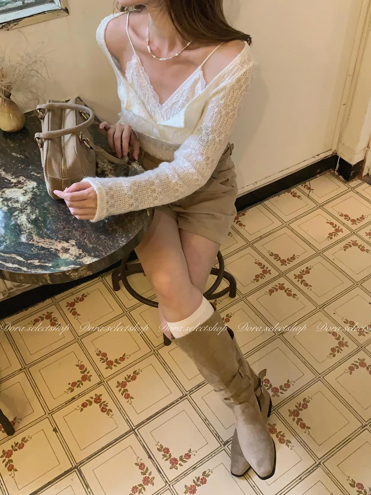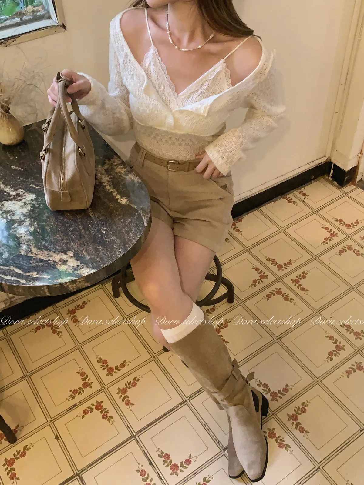 🇰🇷性感浪漫兼具假兩件蕾絲針織上衣---米白