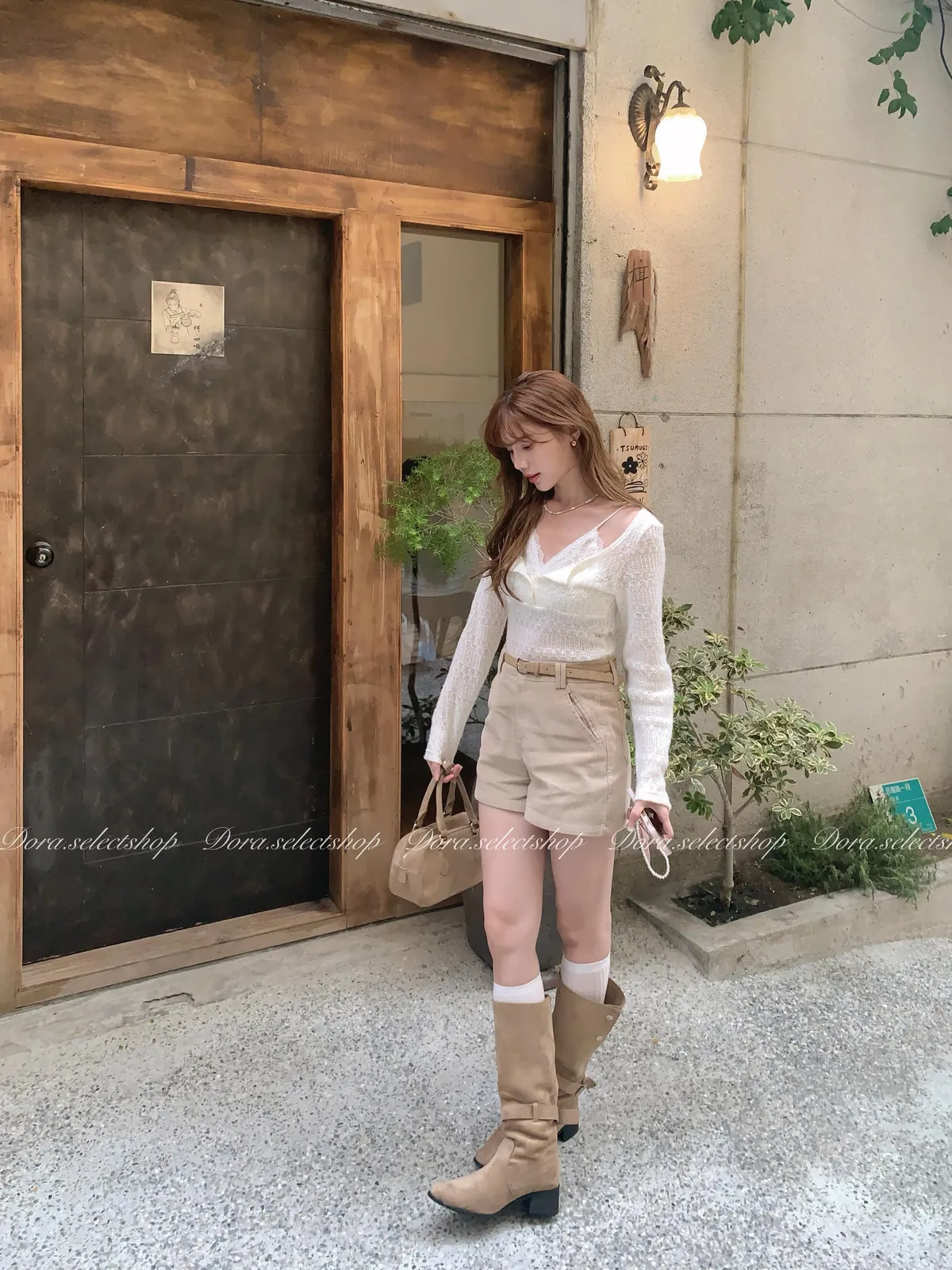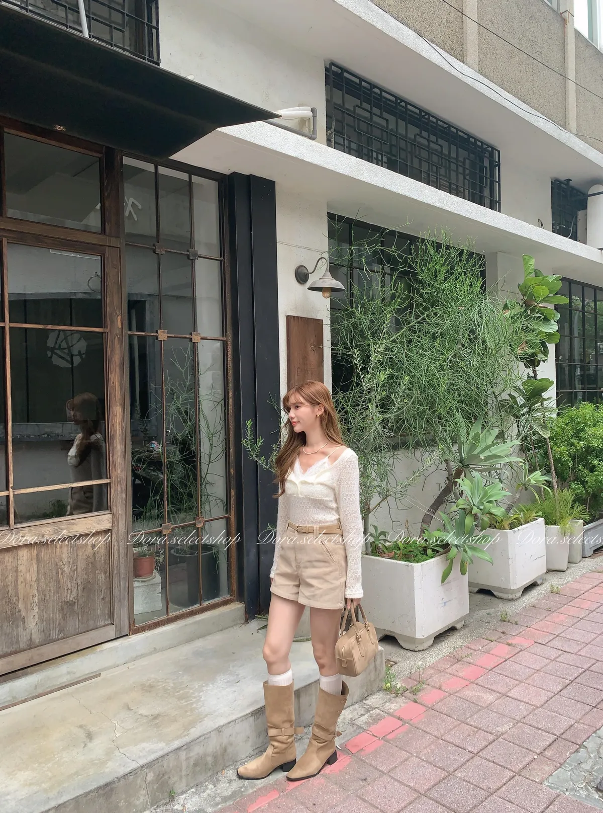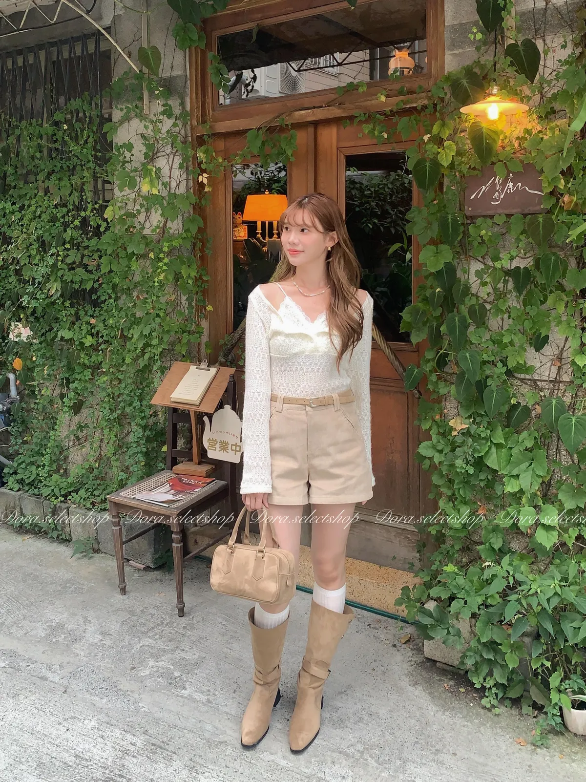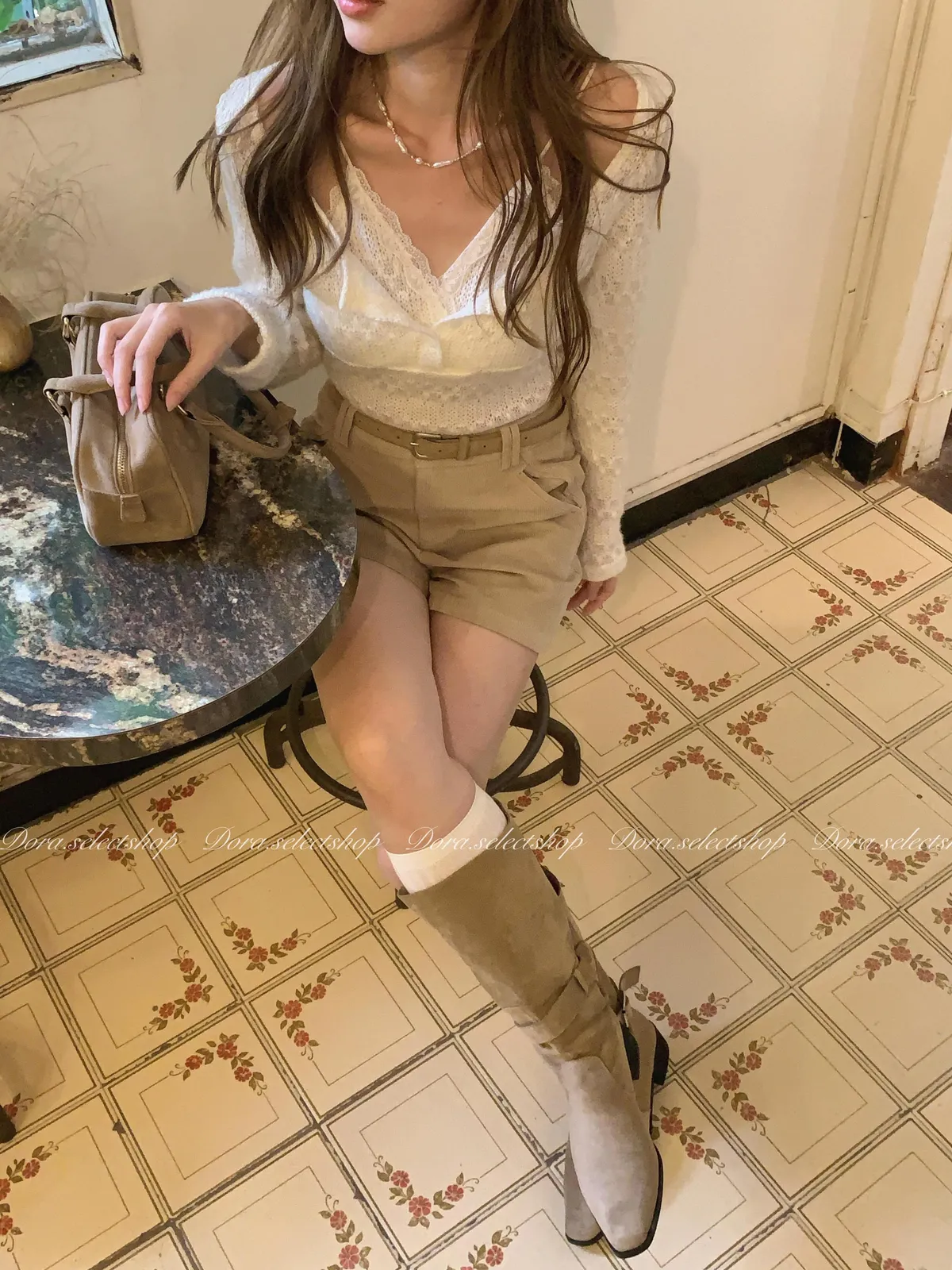 🇰🇷性感浪漫兼具假兩件蕾絲針織上衣---米白