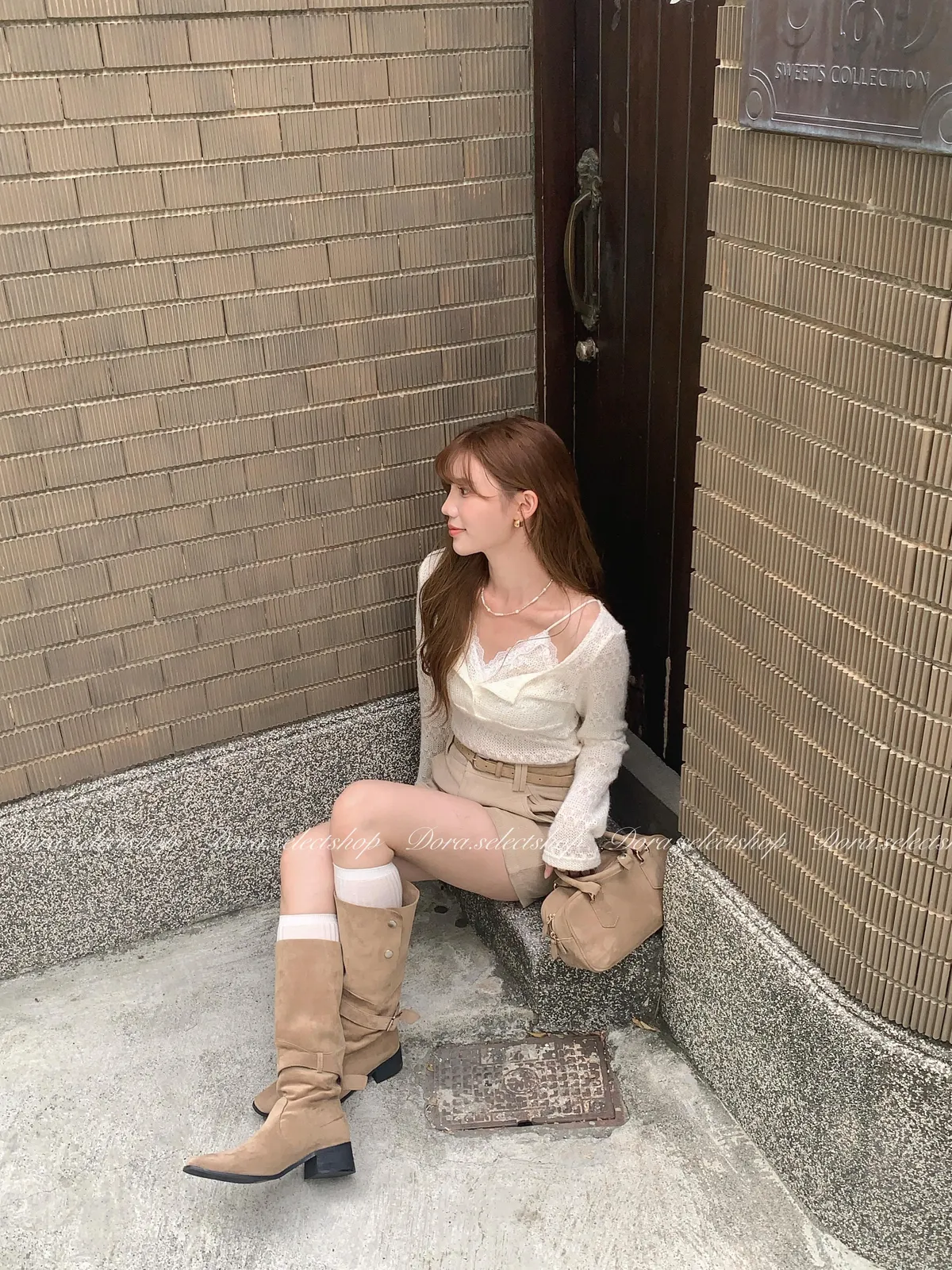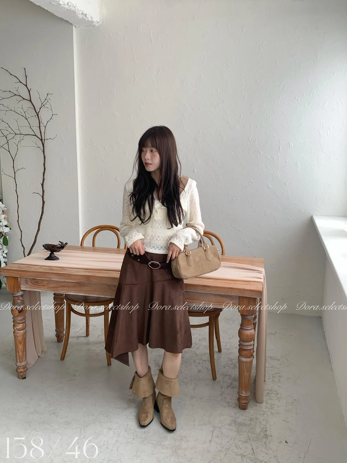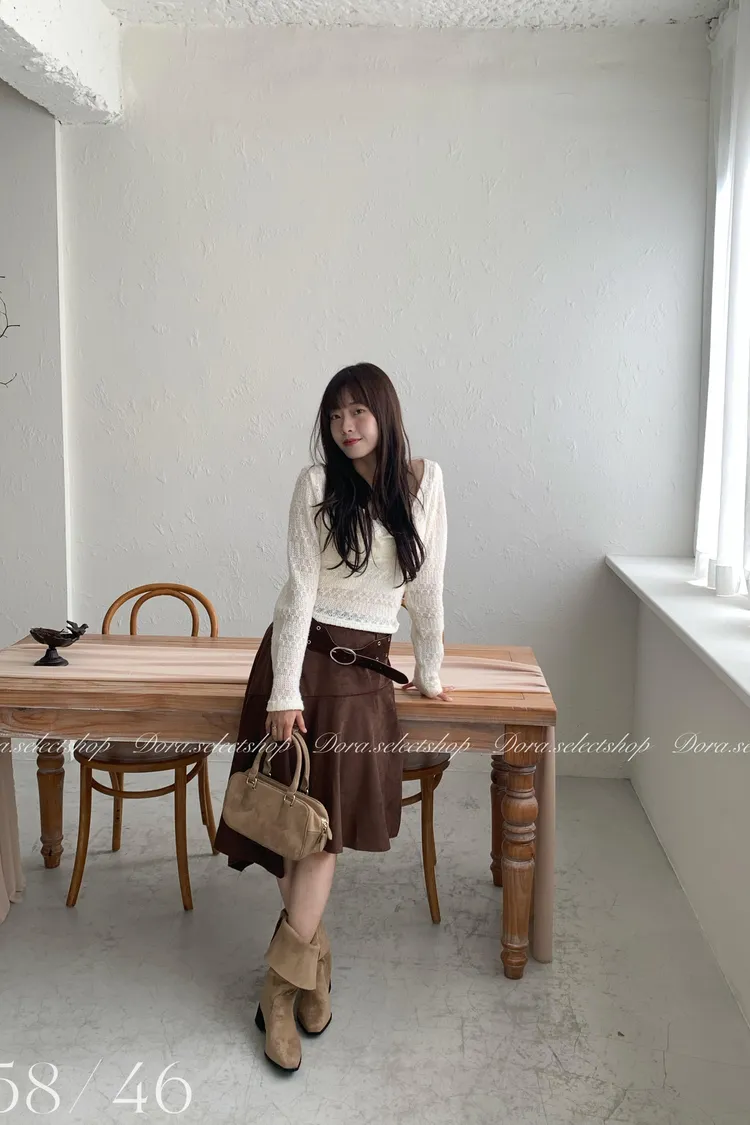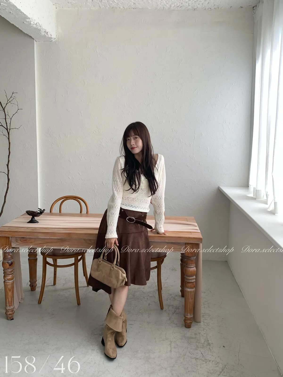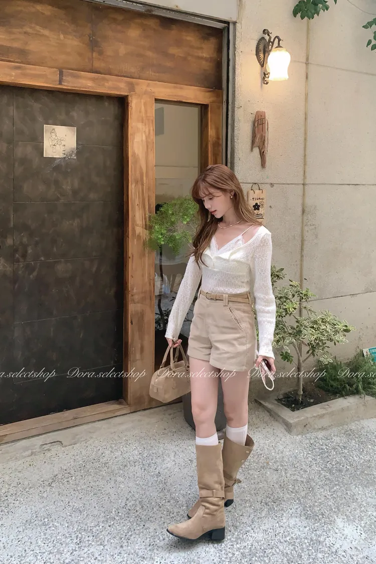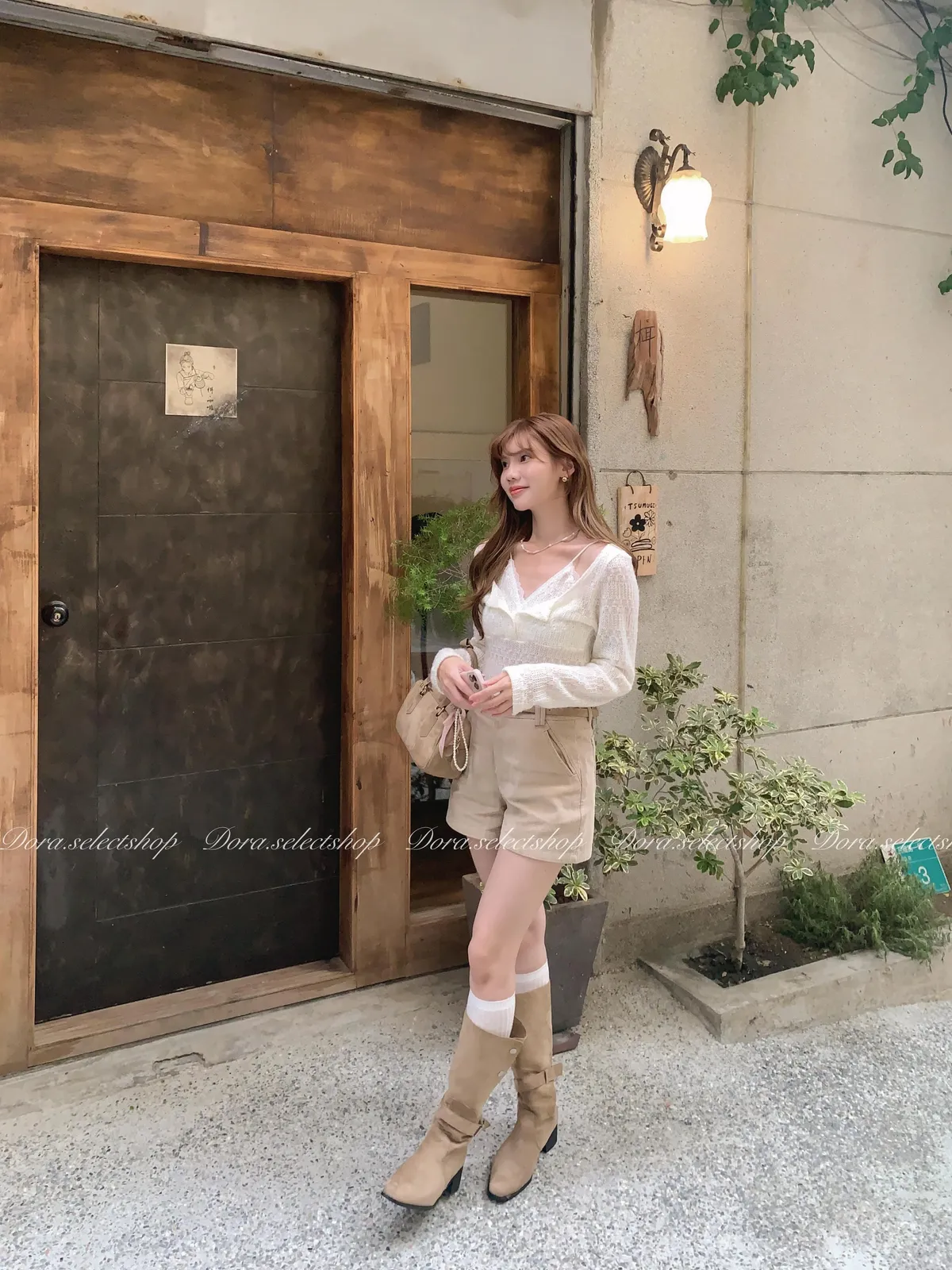 🇰🇷性感浪漫兼具假兩件蕾絲針織上衣---米白