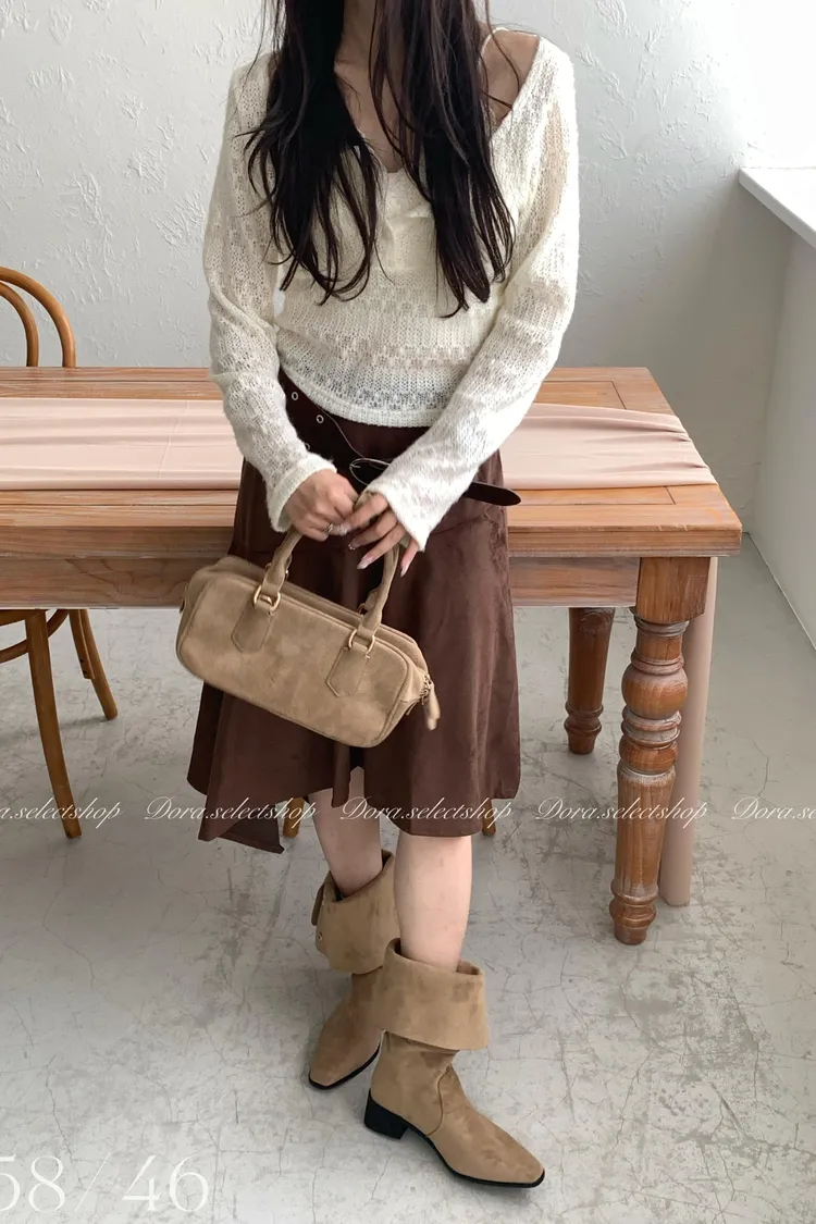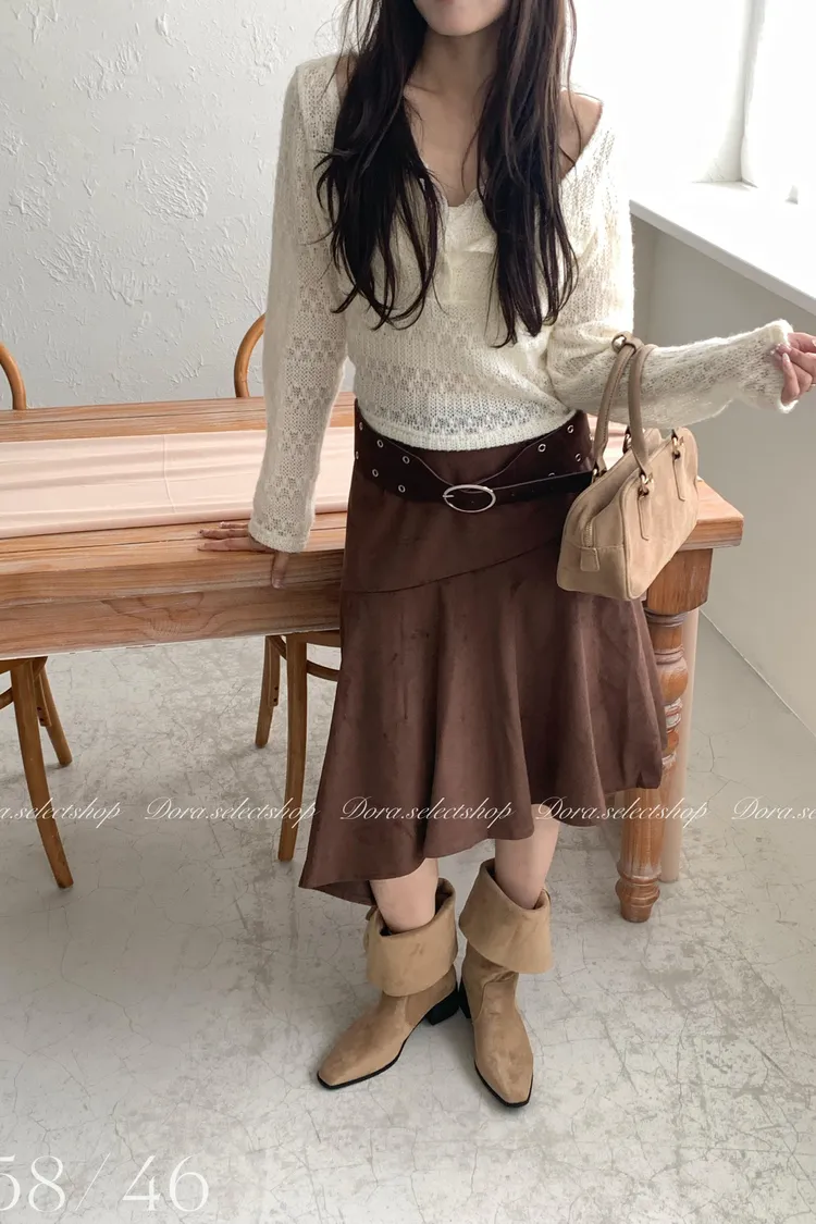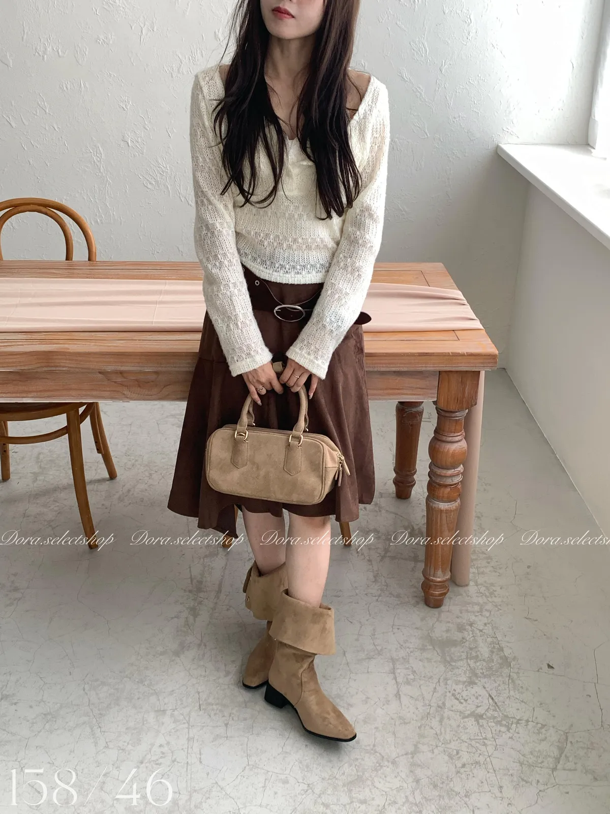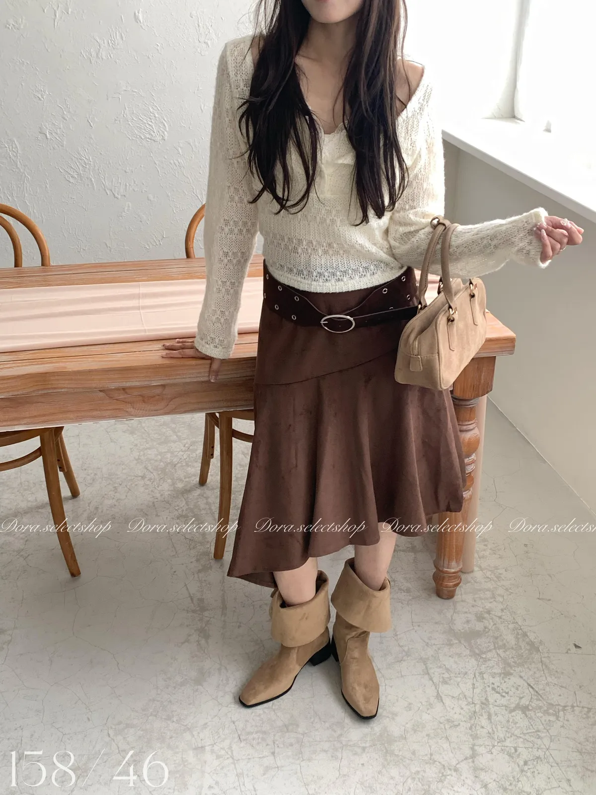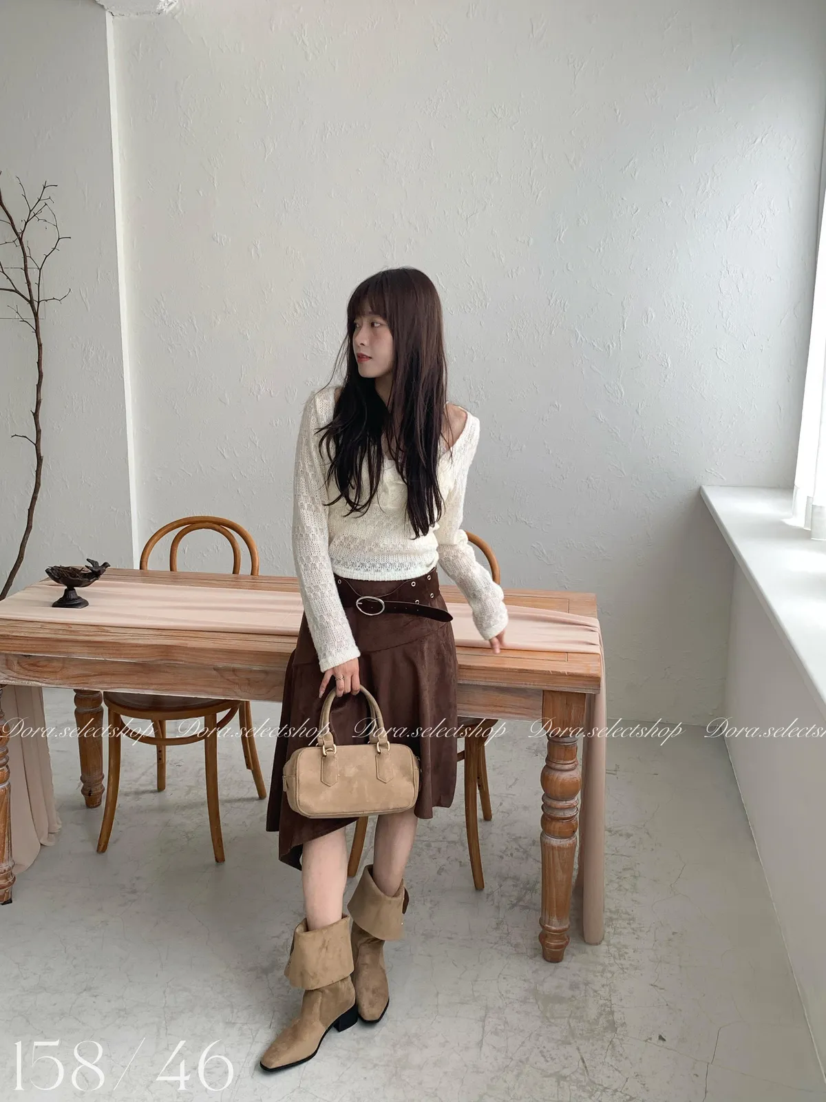 🇰🇷性感浪漫兼具假兩件蕾絲針織上衣---米白