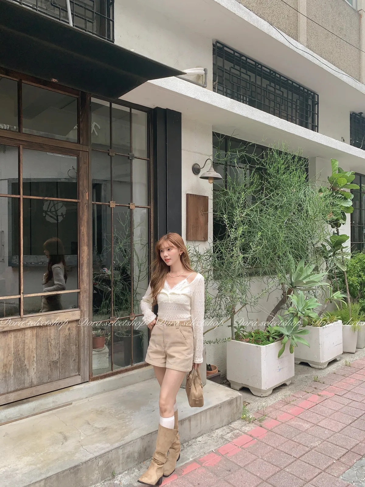 扣子可開 露出一點蕾絲內搭或打開都可以~