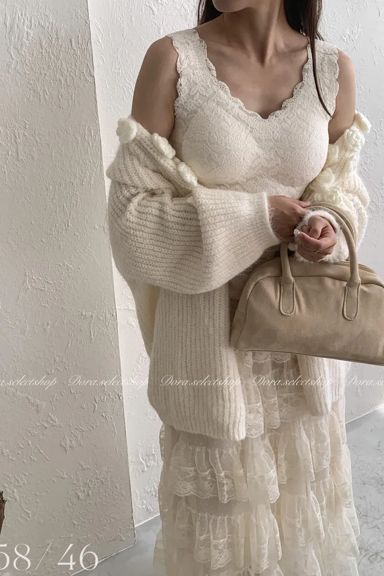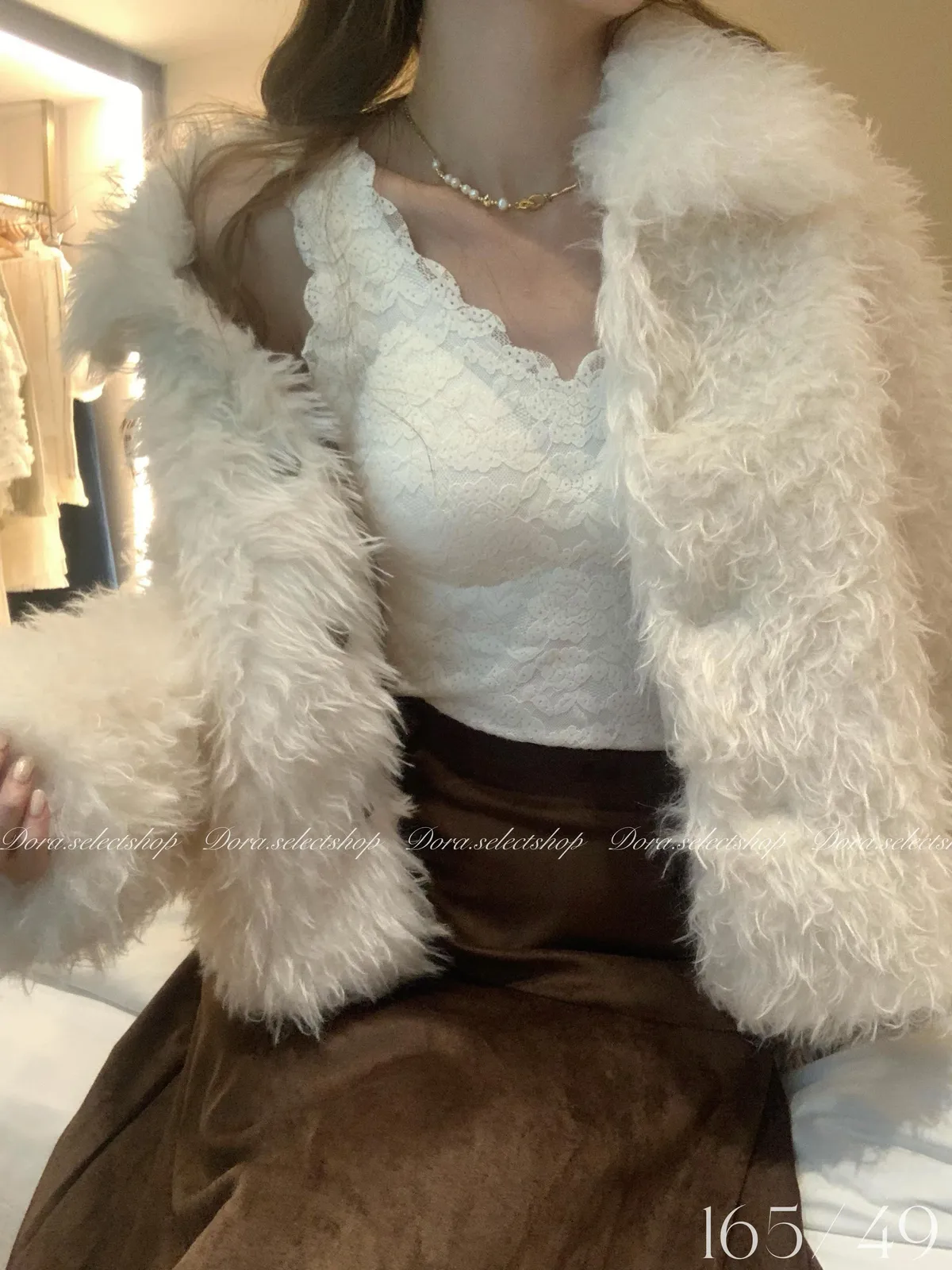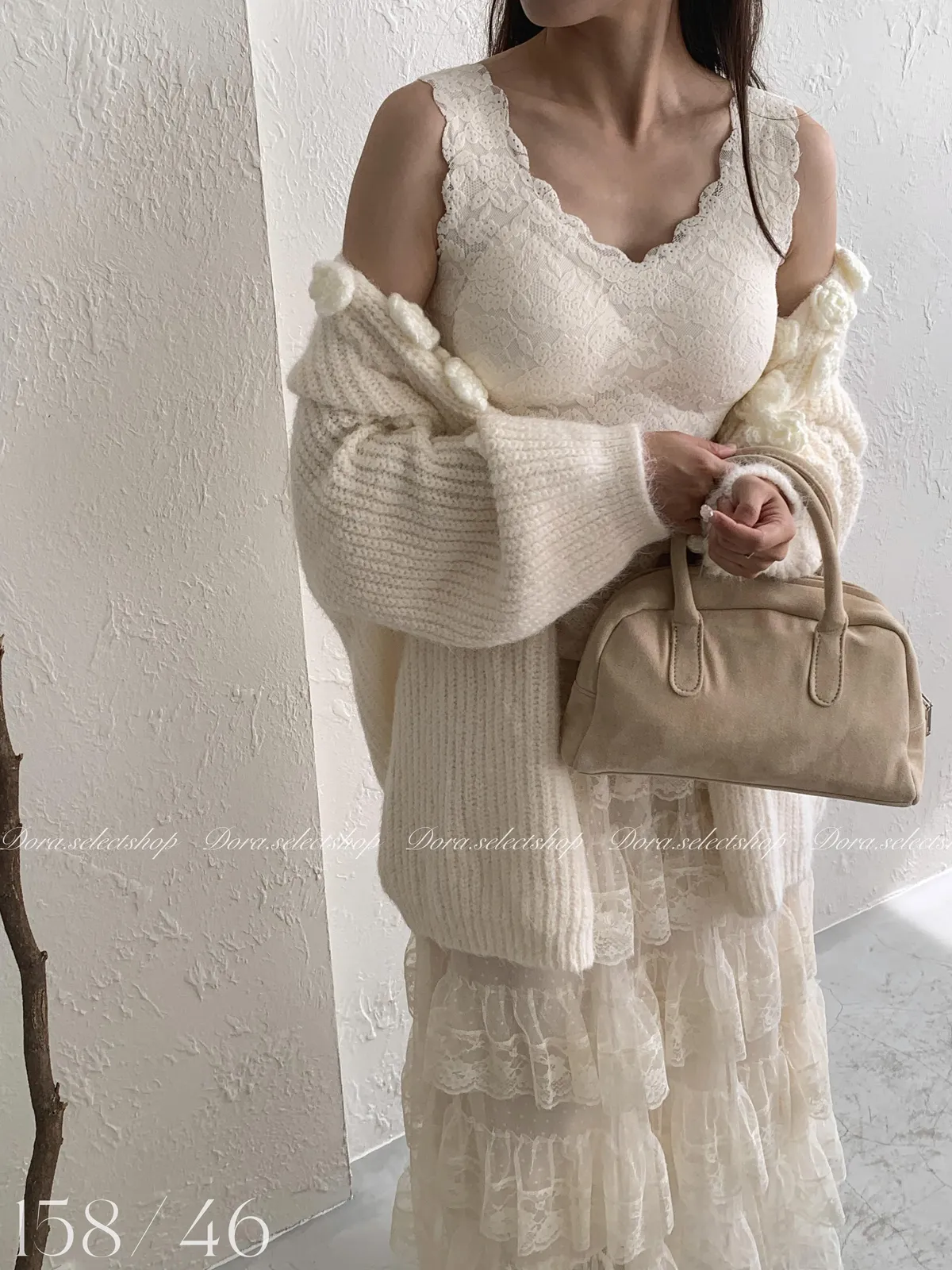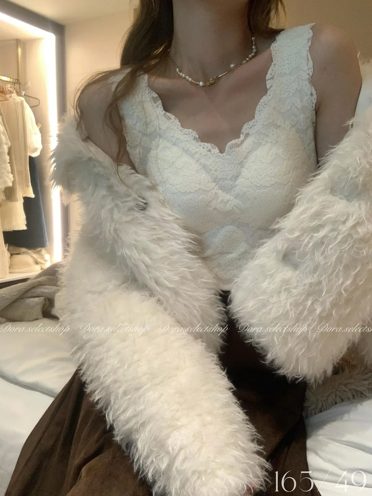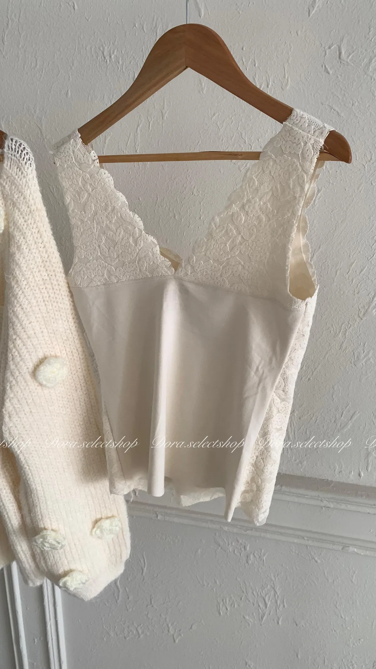 優雅內在美微磨毛彈性布蕾絲背心(附罩杯)---米白