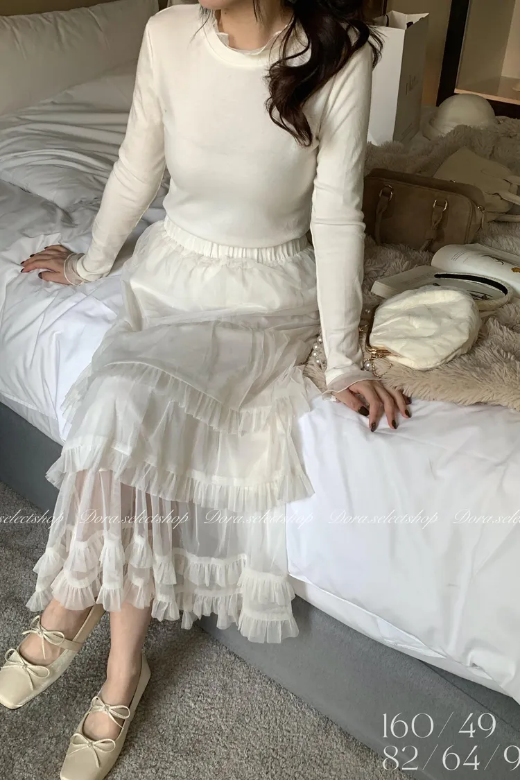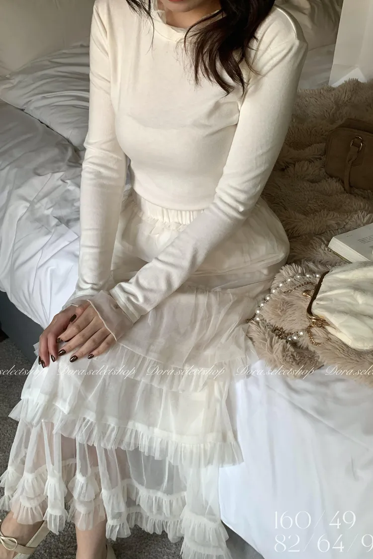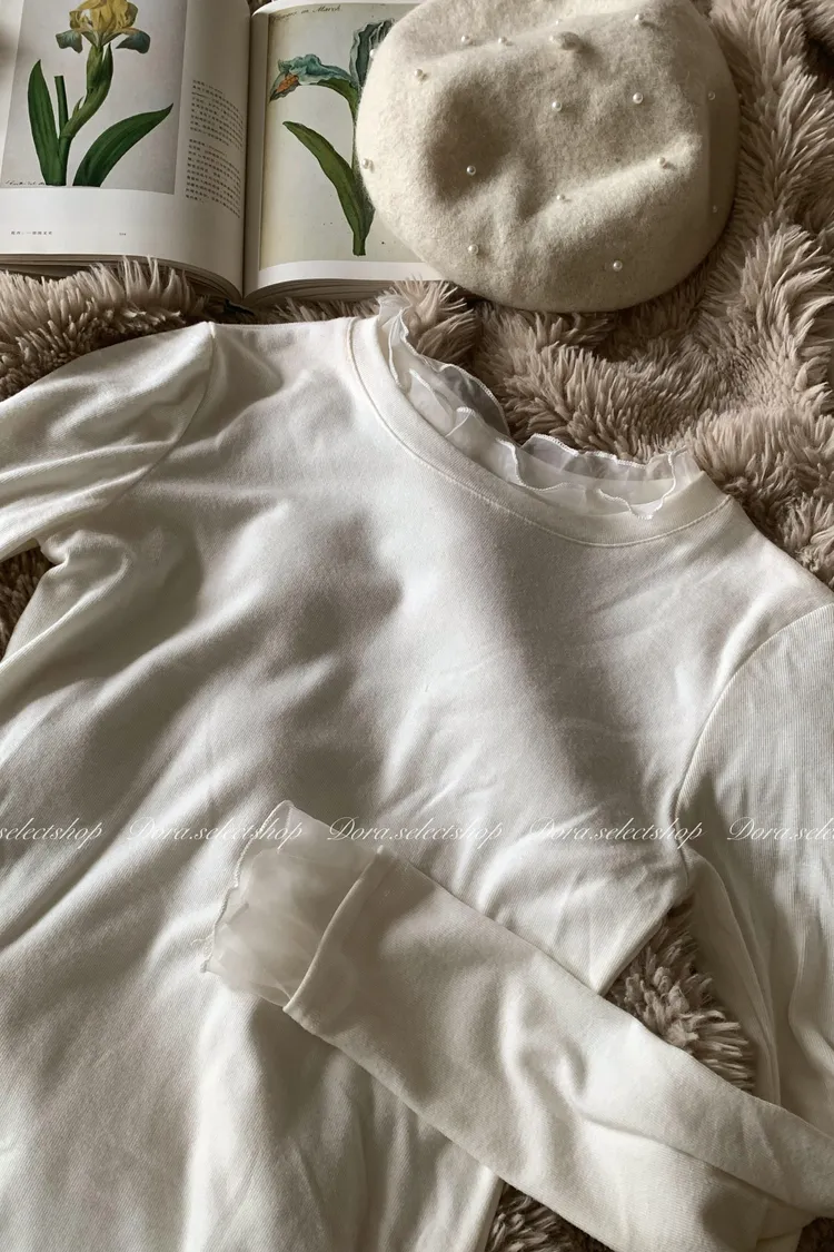超親膚浪漫蕾絲紗花邊長袖內搭---白