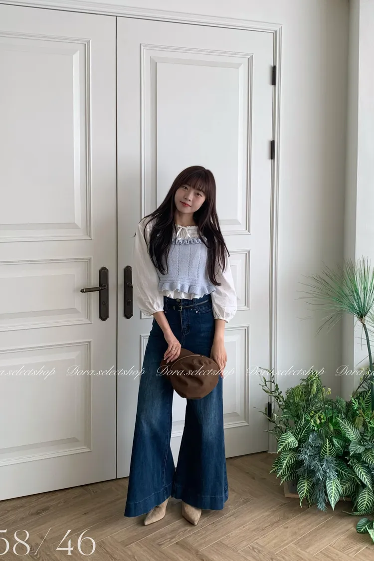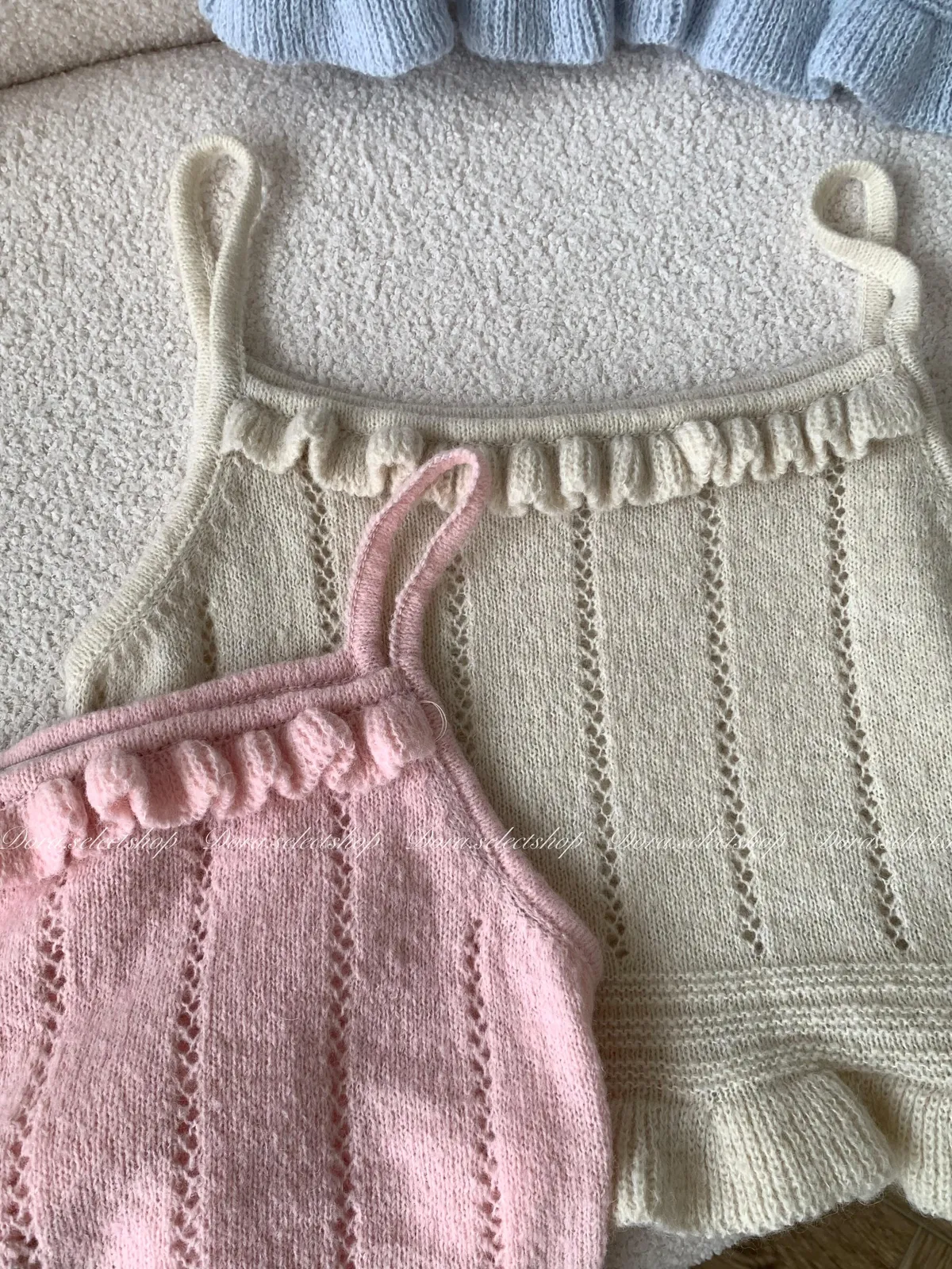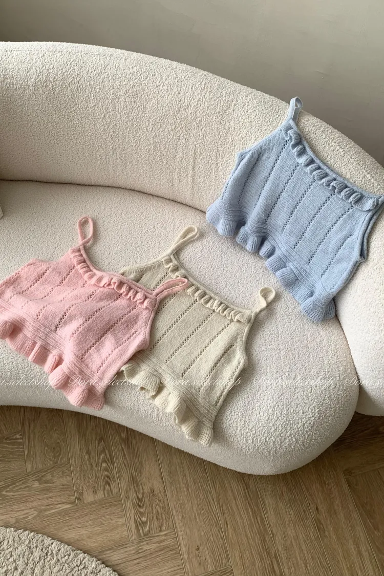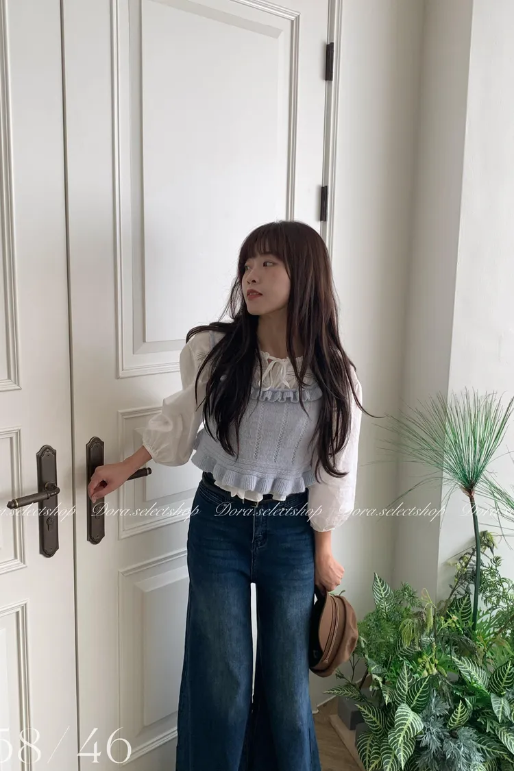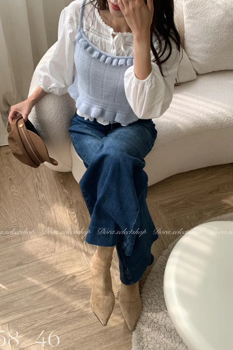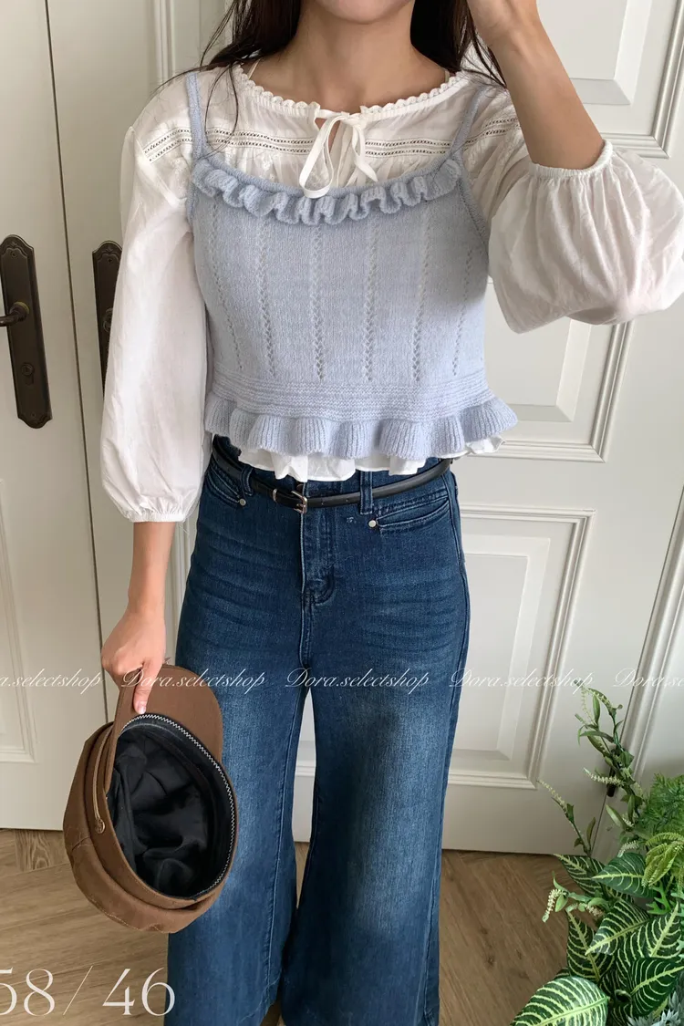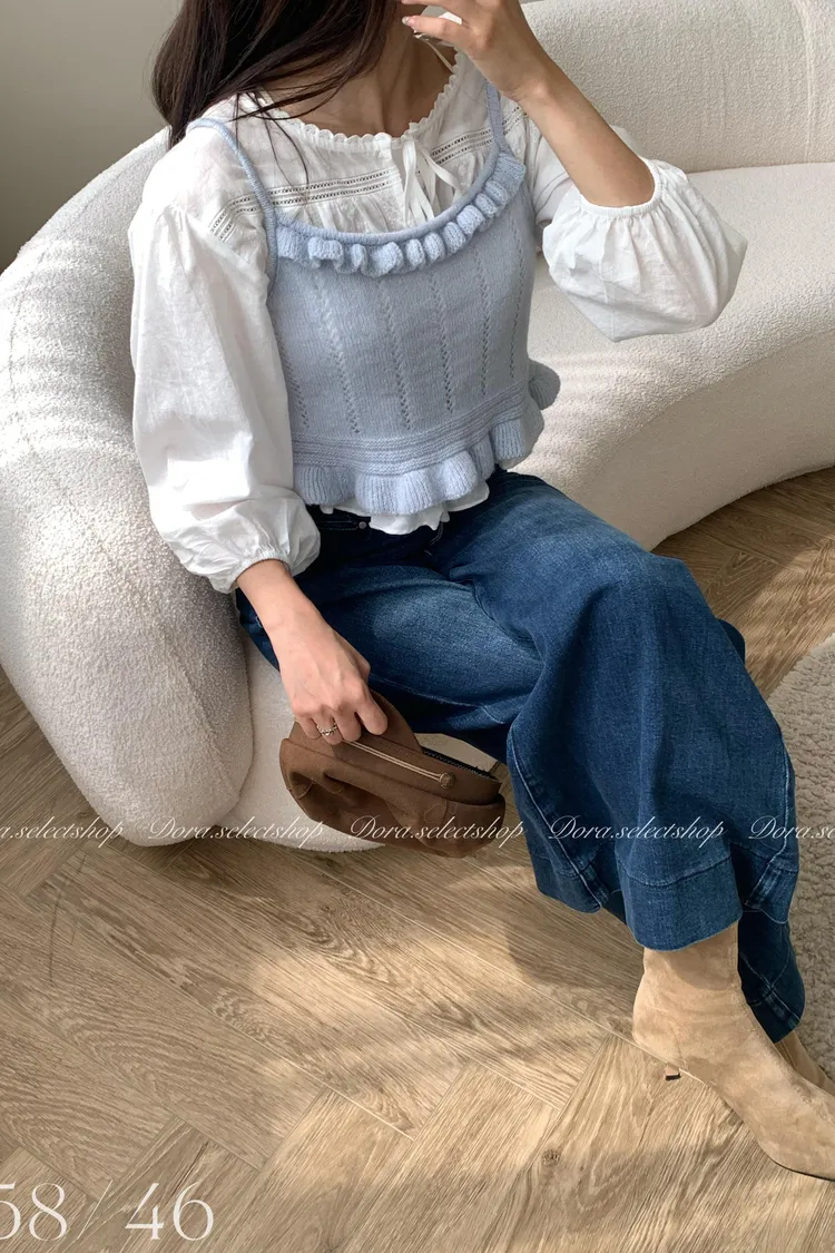 🇰🇷復古荷葉邊羊毛針織背心---baby blue